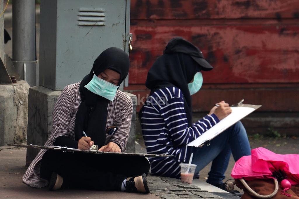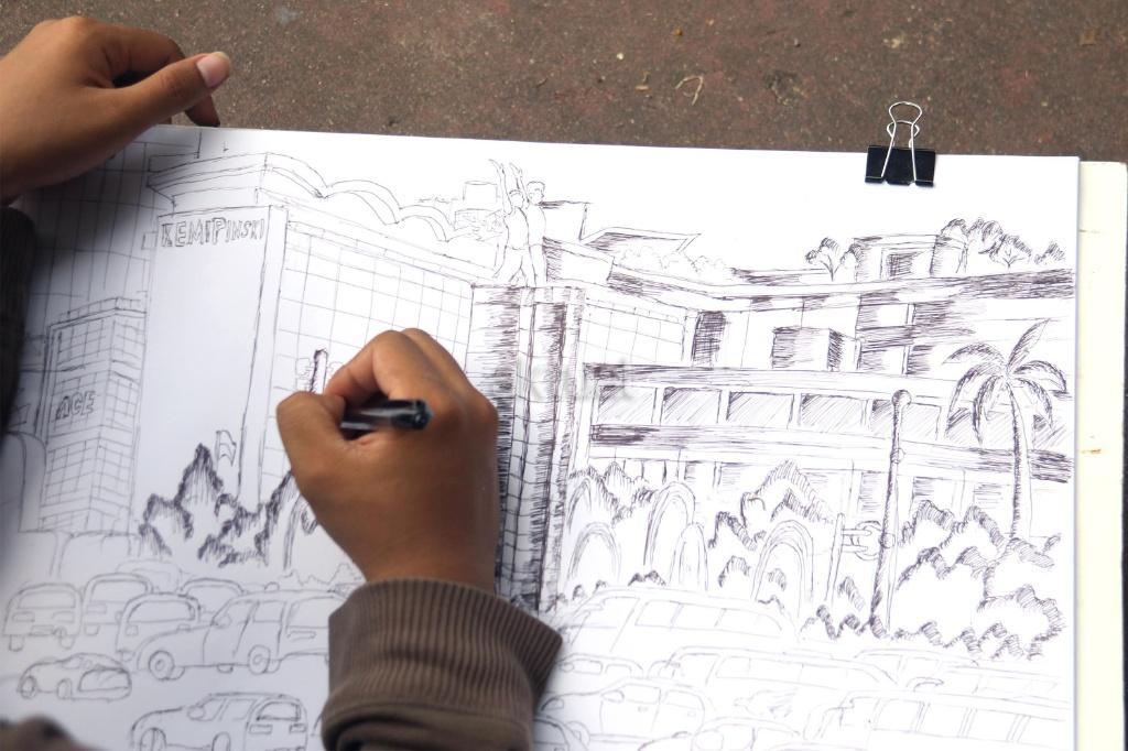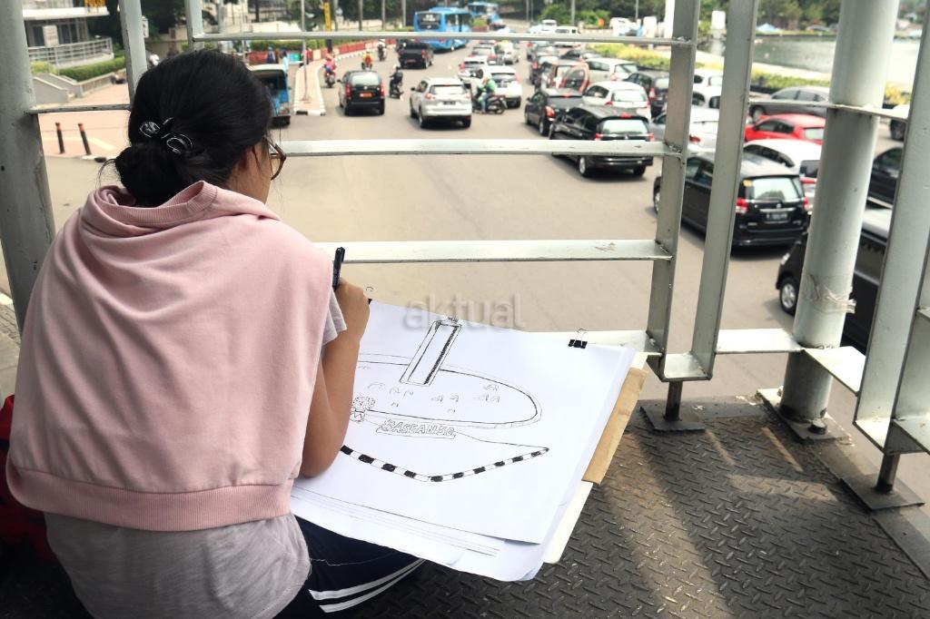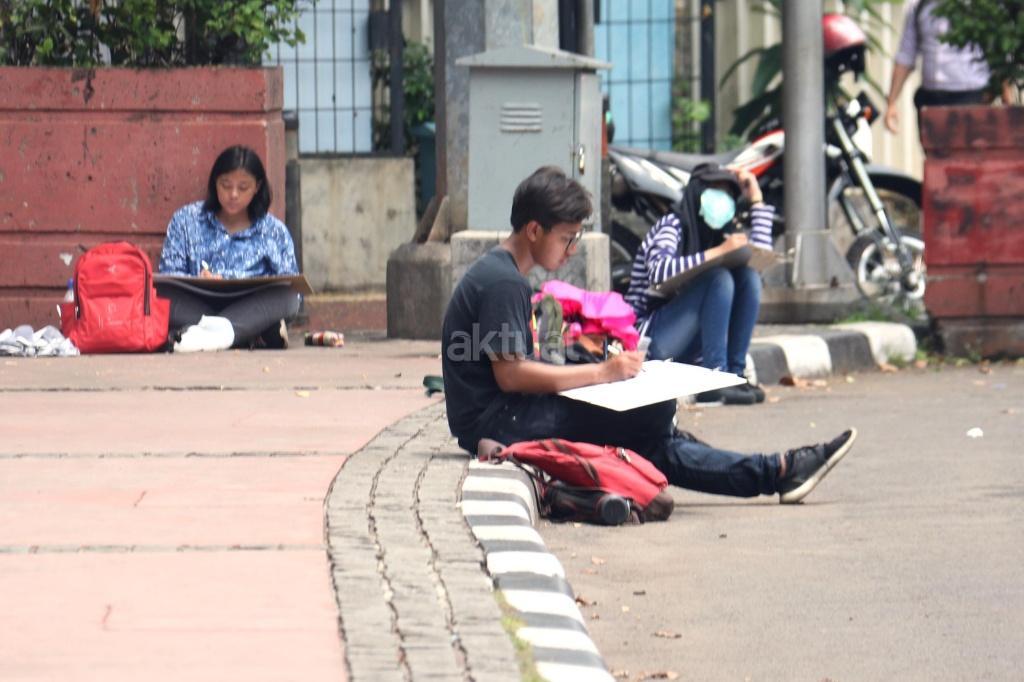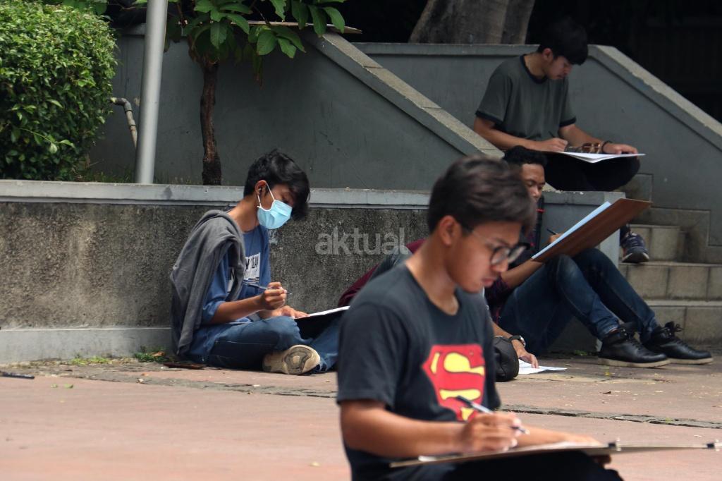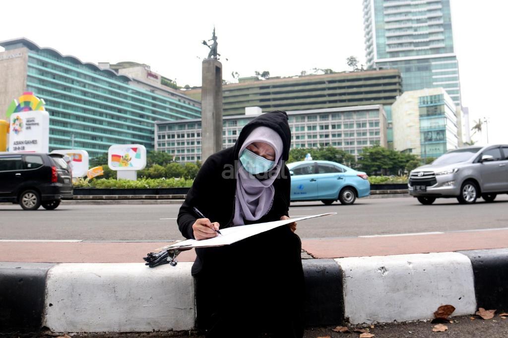Mahasiswa Belajar Melukis Bunderan HI dari Berbagai Sudut