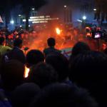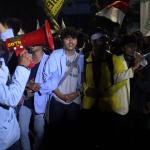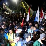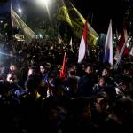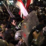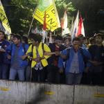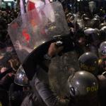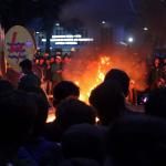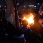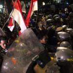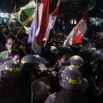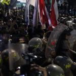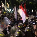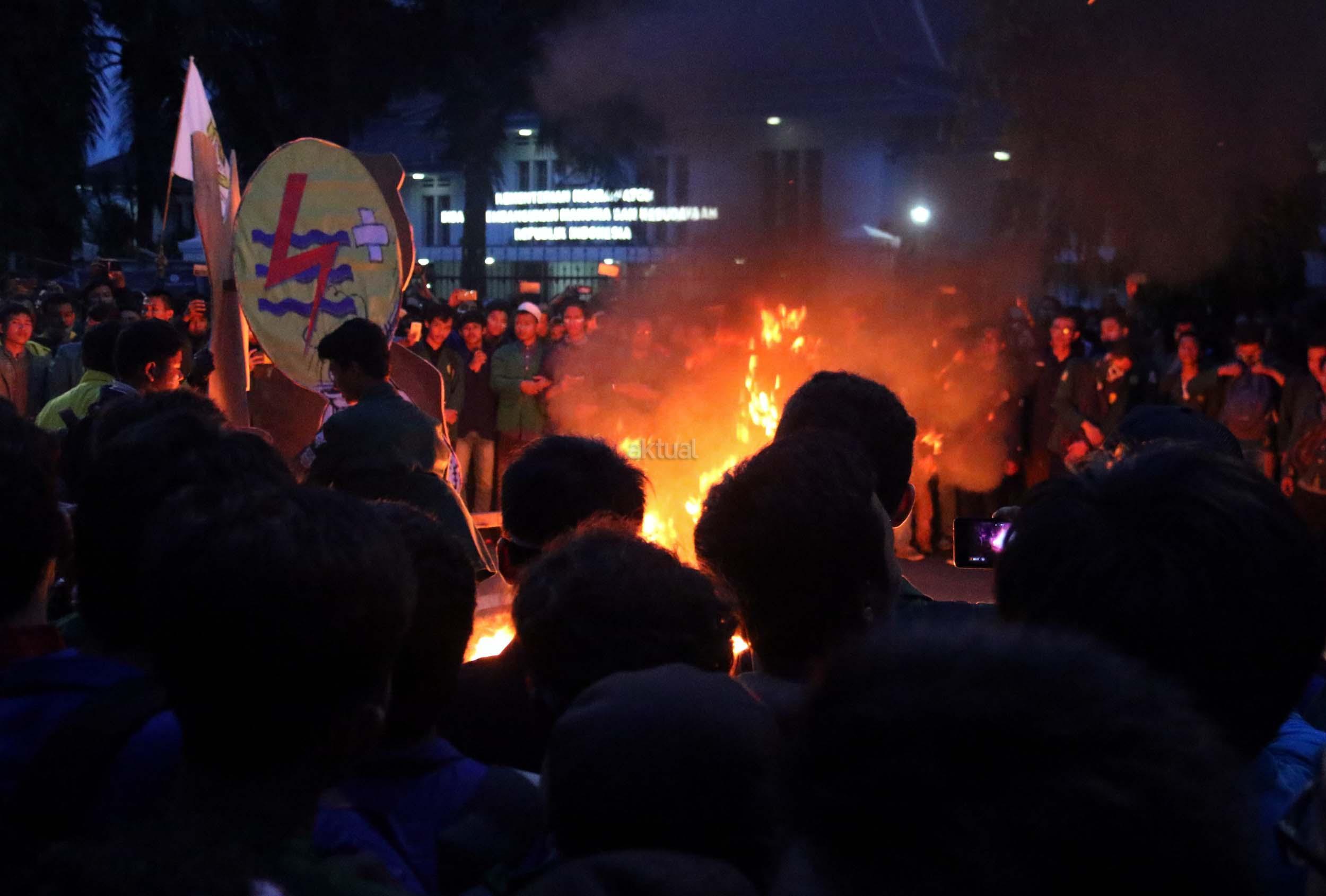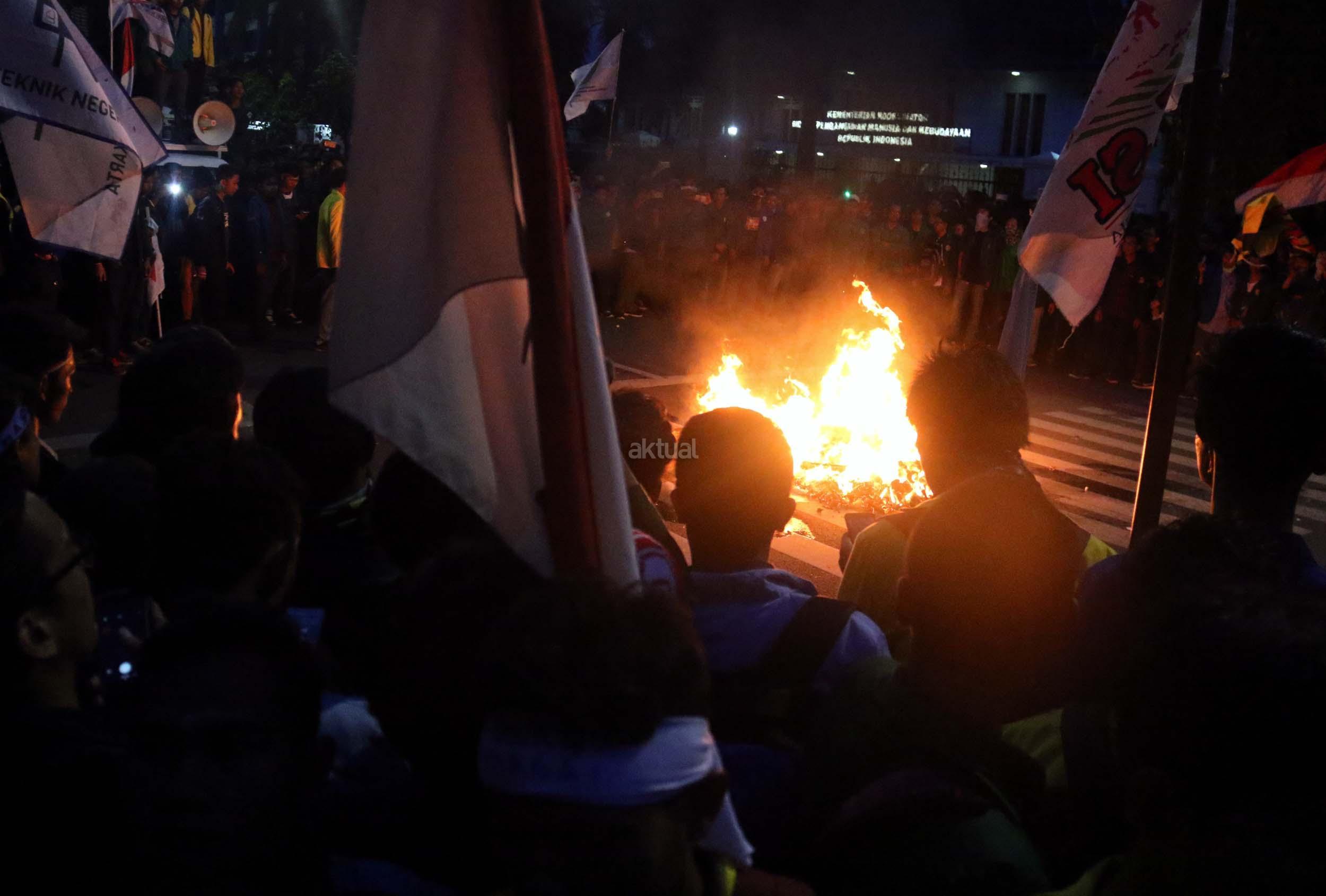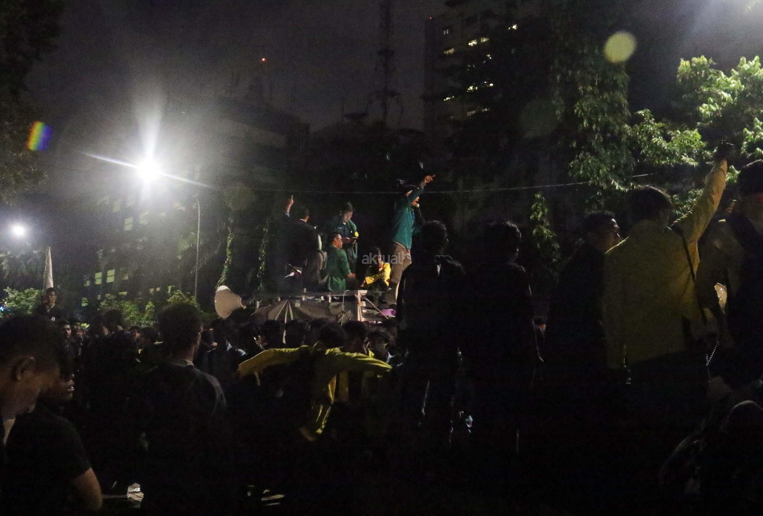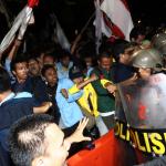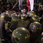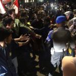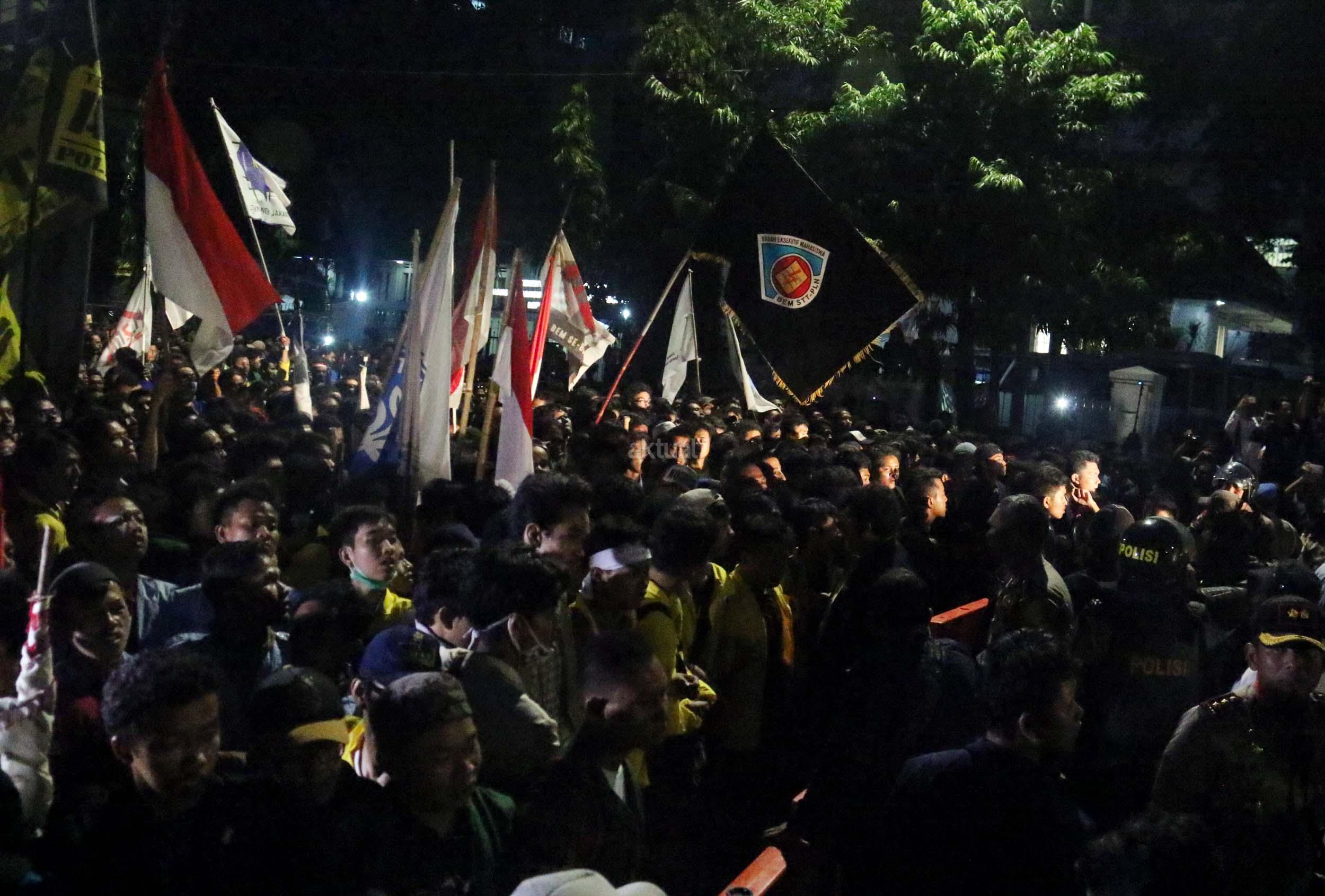 Ratusan mahasiswa dari berbagai Universitas terlibat aksi dorong-dorongan dengan pihak Kepolisian untuk bisa masuk ke Istana Merdeka, Jakarta, Kamis (12/1/2017) malam. Dalam aksinya para mahasiswa kecewa tidak bisa bertemu langsung dengan Presiden Jokowi dan mendapatkan jawaban yang mengecewakan dari pihak pemerintah.