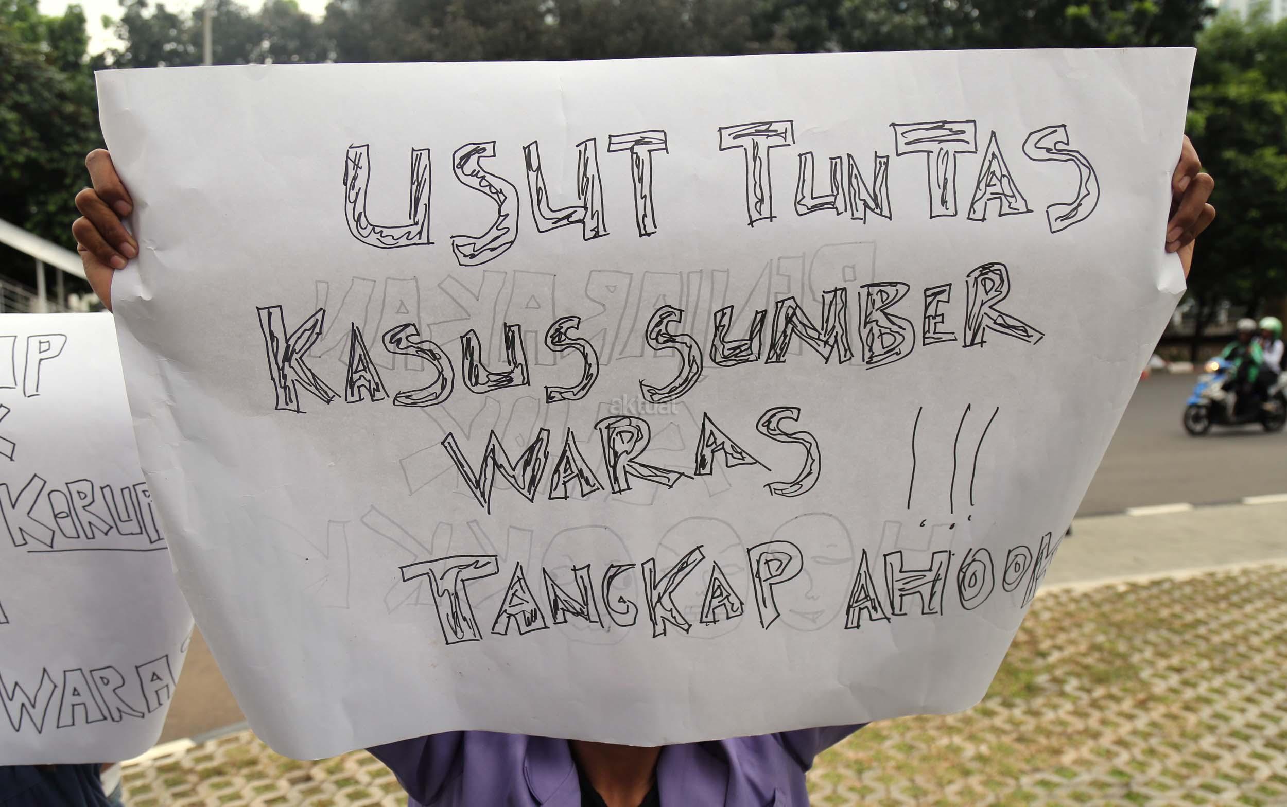 Dalam aksinya para mahasiswa menagih janji pimpinan KPK untuk tidak menutup kasus korupsi Gubenur Penista Agama Basuki Tjahja Purnama (Ahok) dalam pembelian lahan RS Sumber Waras dan kasus Reklamasi Teluk Jakarta dan segera tangkap Gubenur Penista Agama Basuki Tjahja Purnama (Ahok). AKTUAL/Munzir