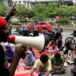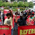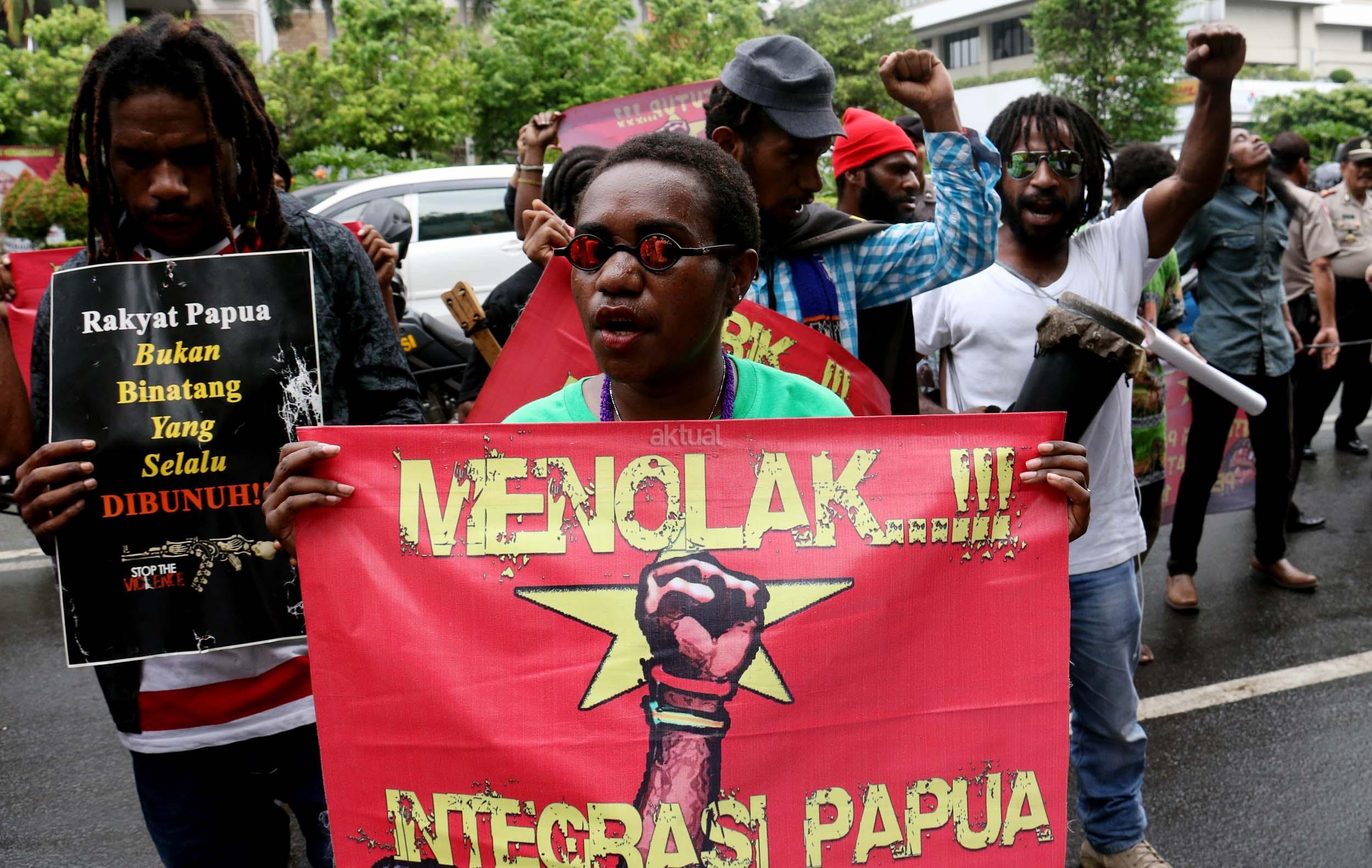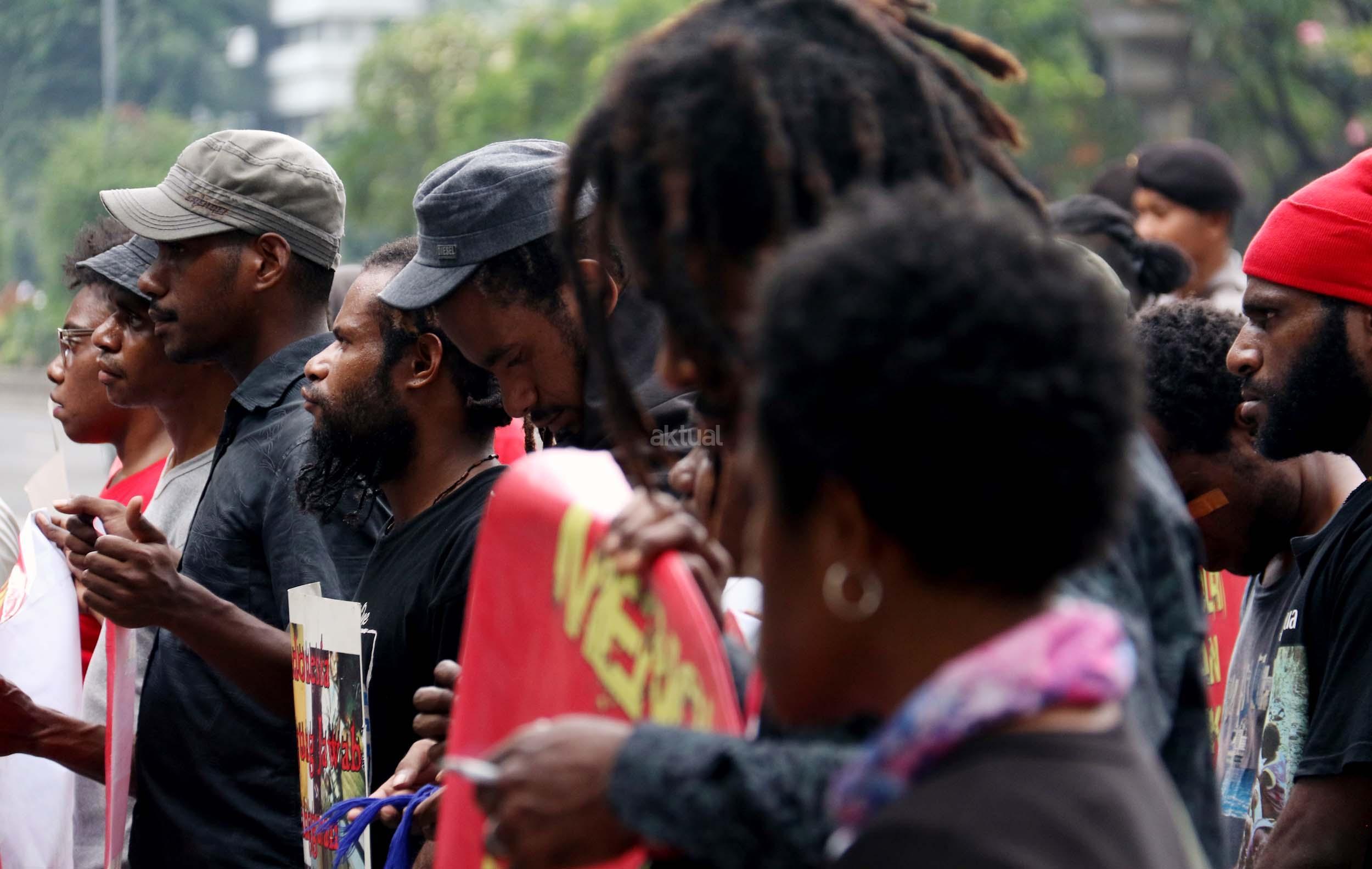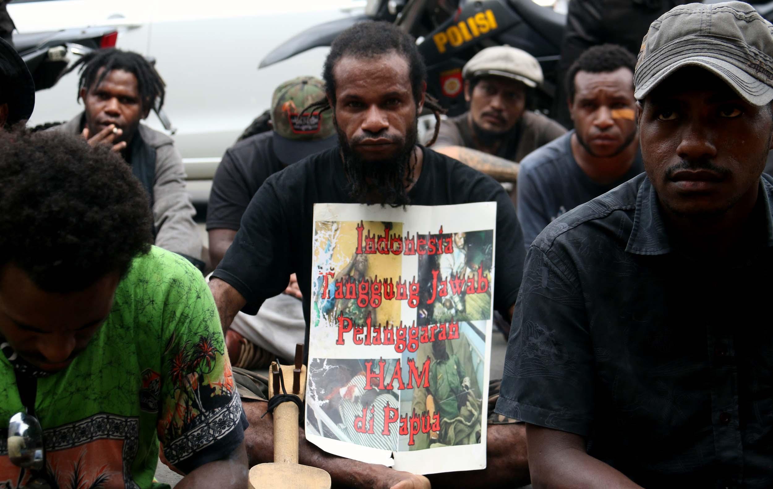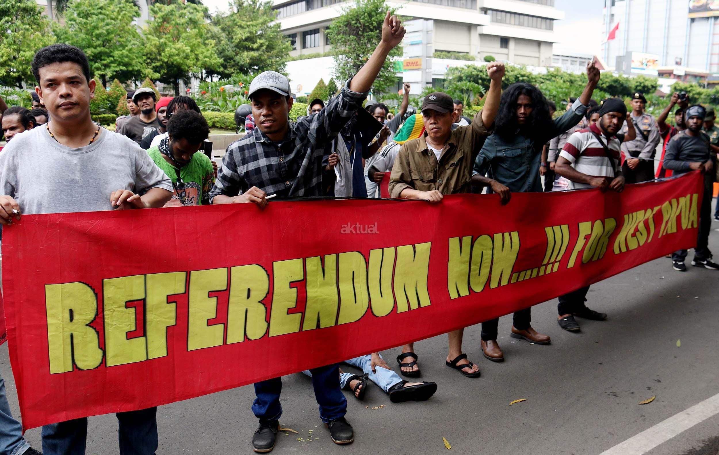 Sejumlah massa yang tergabung dalam FRI-West Papua dan Aliansi Mahasiswa Papua (AMP) melakukan aksi di depan gedung perwakilan PBB Jalan.MH.Thamrin, Jakarta Pusat, Senin (19/12/2016). Dalam aksinya FRI-West Papua dan Aliansi Mahasiswa Papua (AMP) mendesak PBB beserta rezim Jokowi – JK untuk segera menuntaskan pelanggaran HAM yang terjadi di Papua dan memberikan kebebesan, Hak menentukan nasib sendiri rakyat Papua.