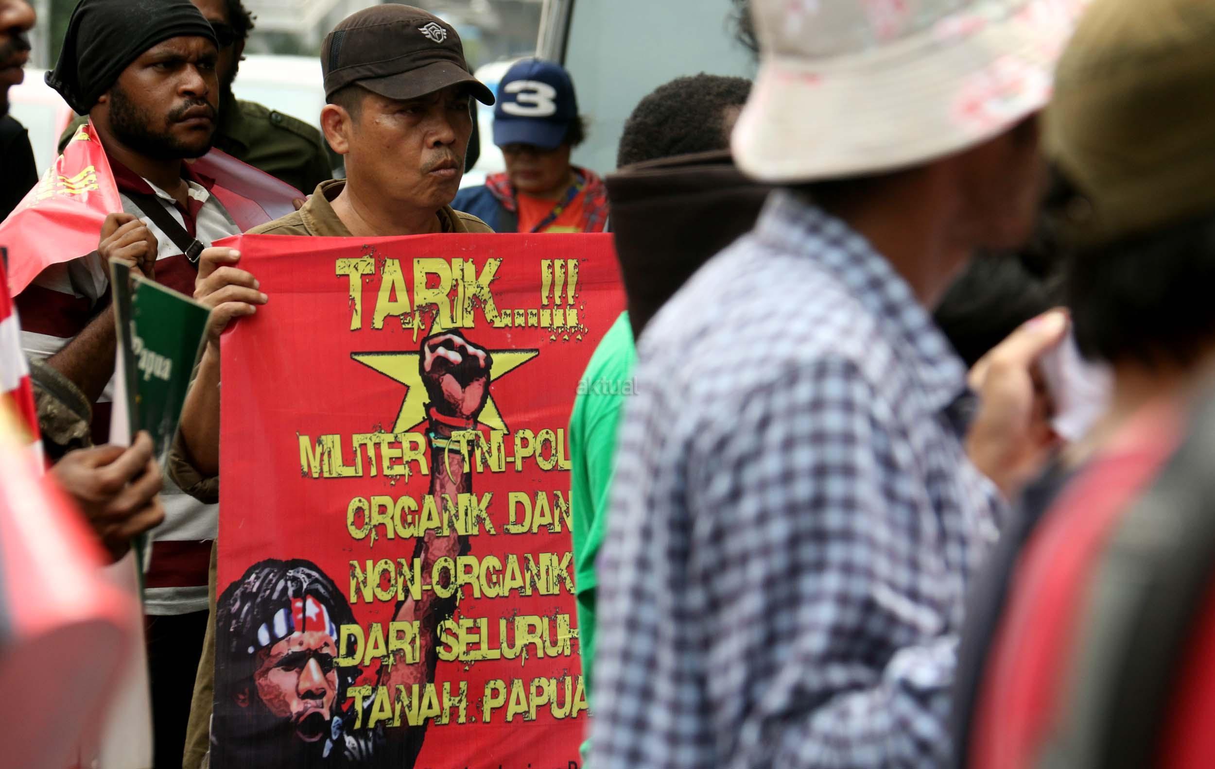Dalam aksinya FRI-West Papua dan Aliansi Mahasiswa Papua (AMP) mendesak PBB beserta rezim Jokowi - JK untuk segera menuntaskan pelanggaran HAM yang terjadi di Papua dan memberikan kebebesan, Hak menentukan nasib sendiri rakyat Papua. AKTUAL/Munzir