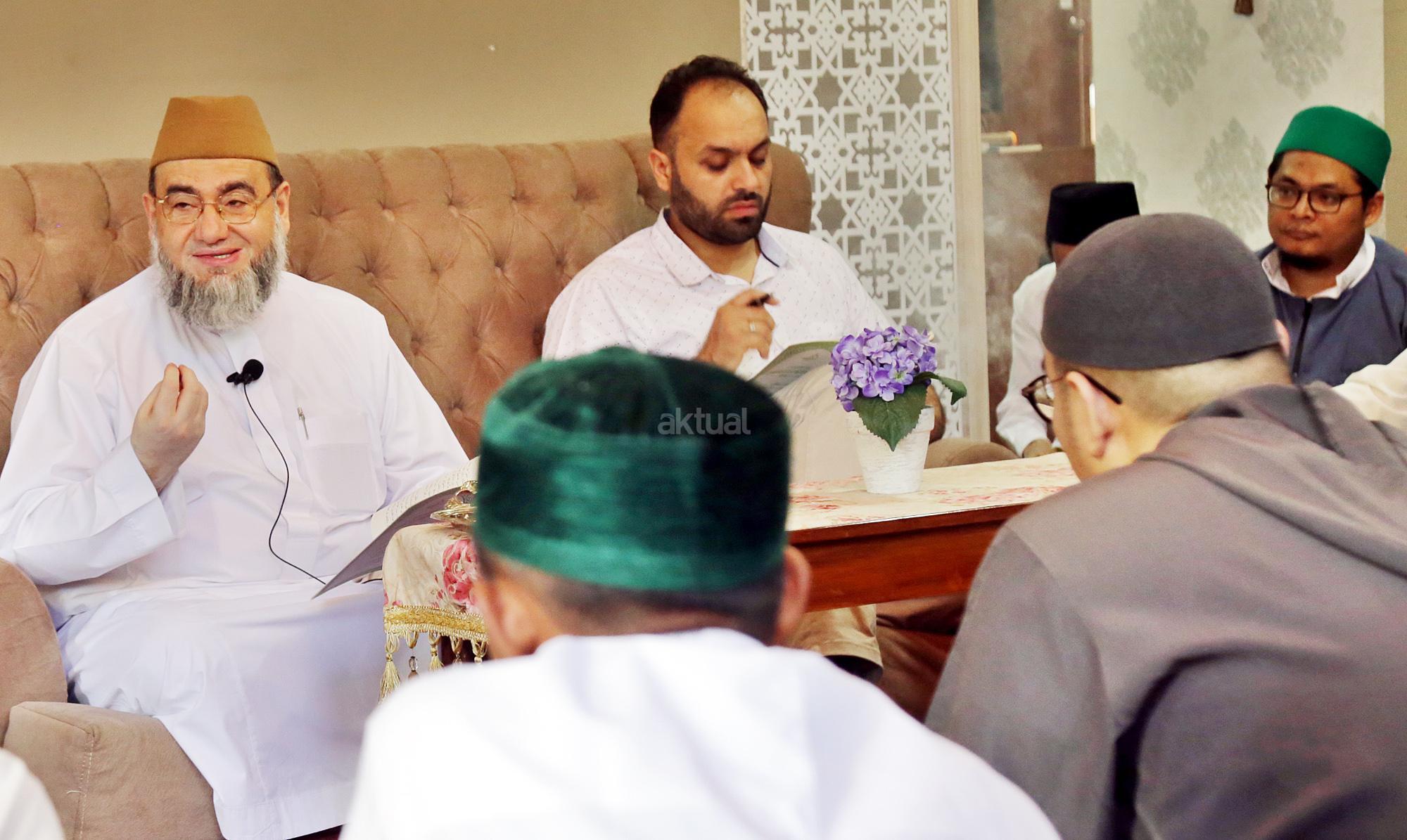 Syaikh Dr. Yahya bin Abdulrazak Gothani, MA. saat mengisi "Majelis Ilmu Bulan Sya'ban" pembacaa kitab “al-Arba’un al-Buldaniya” Karya : Syaikh Muhammad Yasin bin Muhammad Isa al-Fadanii Zawiyah Arraudhah, Tebet, Jakarta Selatan, Sabtu (28/4/18). Majelis Nishfu Sya'ban 1439 H Zawiyah Arraudhah berlangsung hingga Senin (30/4/18). Dengan agenda Pembacaan Hadis Musalsal, Majelis Dzikir & Doa Nishfu Sya’ban. AKTUAL/Tino Oktaviano