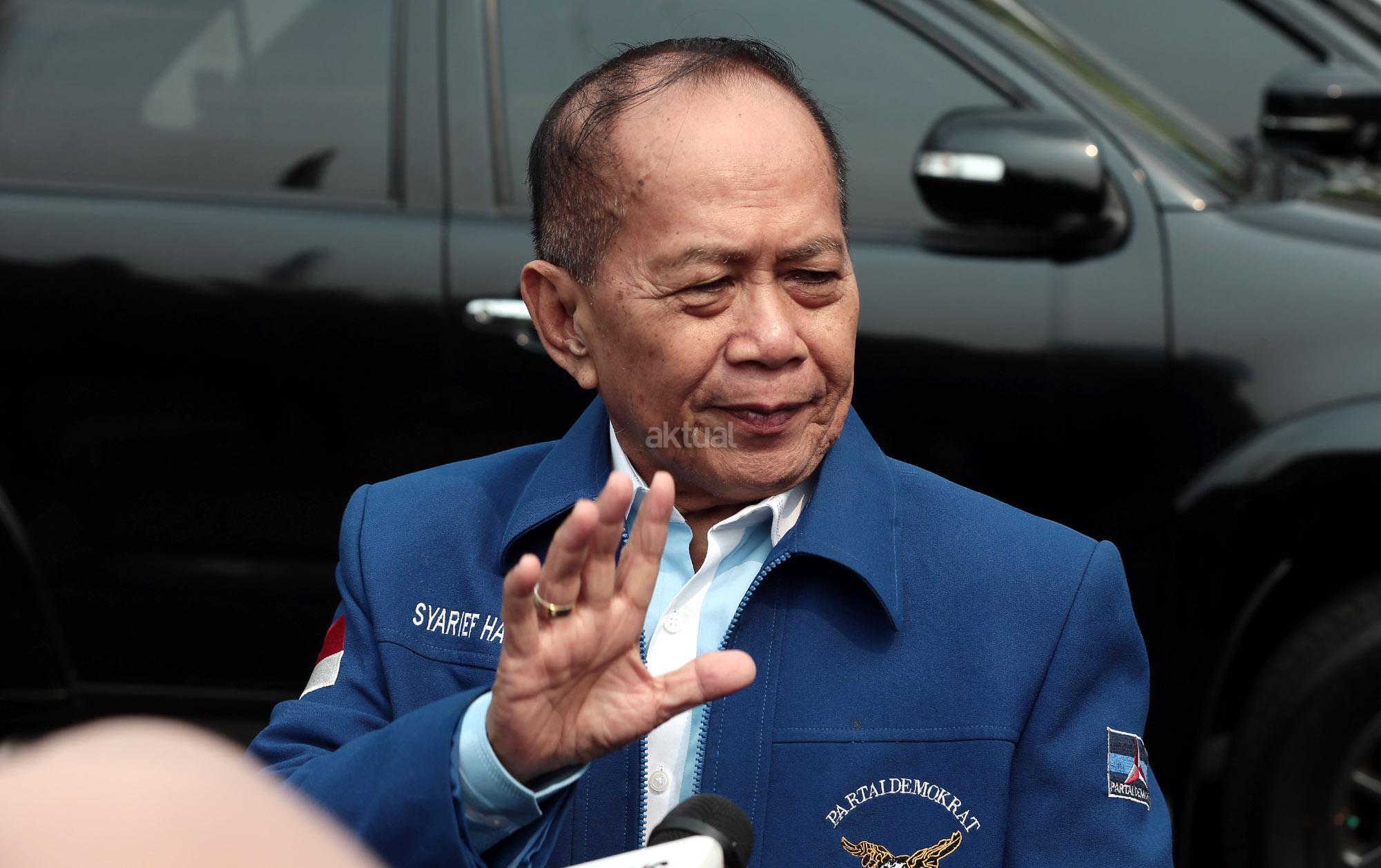 Wakil Ketua Umum Partai Demokrat Syarief Hasan saat akan melakukan rapat pimpinan majelis tinggi Partai Demokrat di Kediaman Ketua Umum DPP Susilo Bambang Yudhoyono, di Mega Kuningan, Jakarta, Senin (9/7/2018). Pertemuan tersebut membahas tiga agenda, pertama bahas DPR RI, kedua gubernur wakil gubernur dan ketiga capres dan cawapres. AKTUAL/Tino Oktaviano