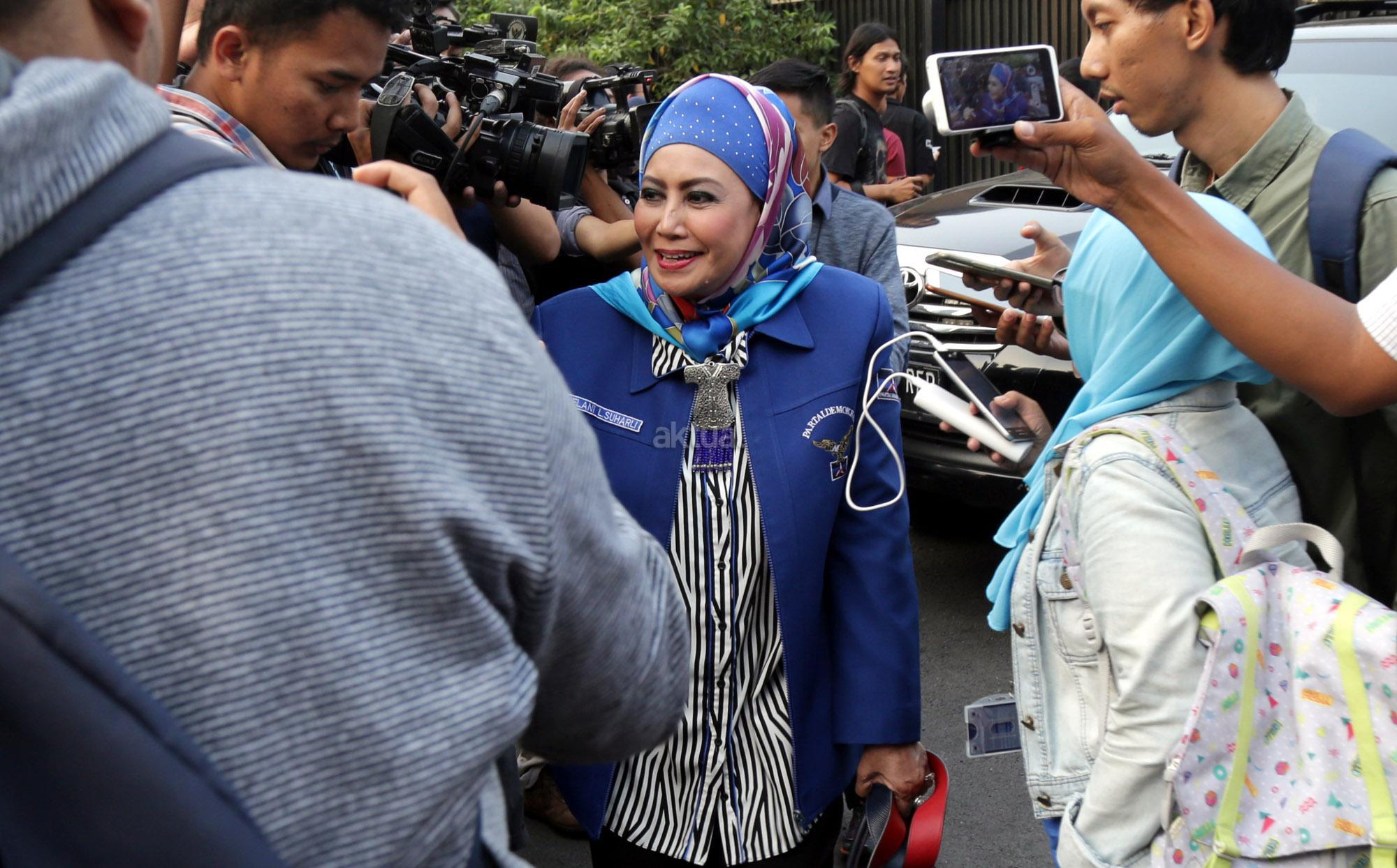 Anggota Majelis Tinggi Partai Demokrat Melani Leimena Suharli usai melakukan rapat pimpinan majelis tinggi Partai Demokrat di Kediaman Ketua Umum DPP Susilo Bambang Yudhoyono, di Mega Kuningan, Jakarta, Senin (9/7/2018). Pertemuan tersebut membahas tiga agenda, pertama bahas DPR RI, kedua gubernur wakil gubernur dan ketiga capres dan cawapres. AKTUAL/Tino Oktaviano