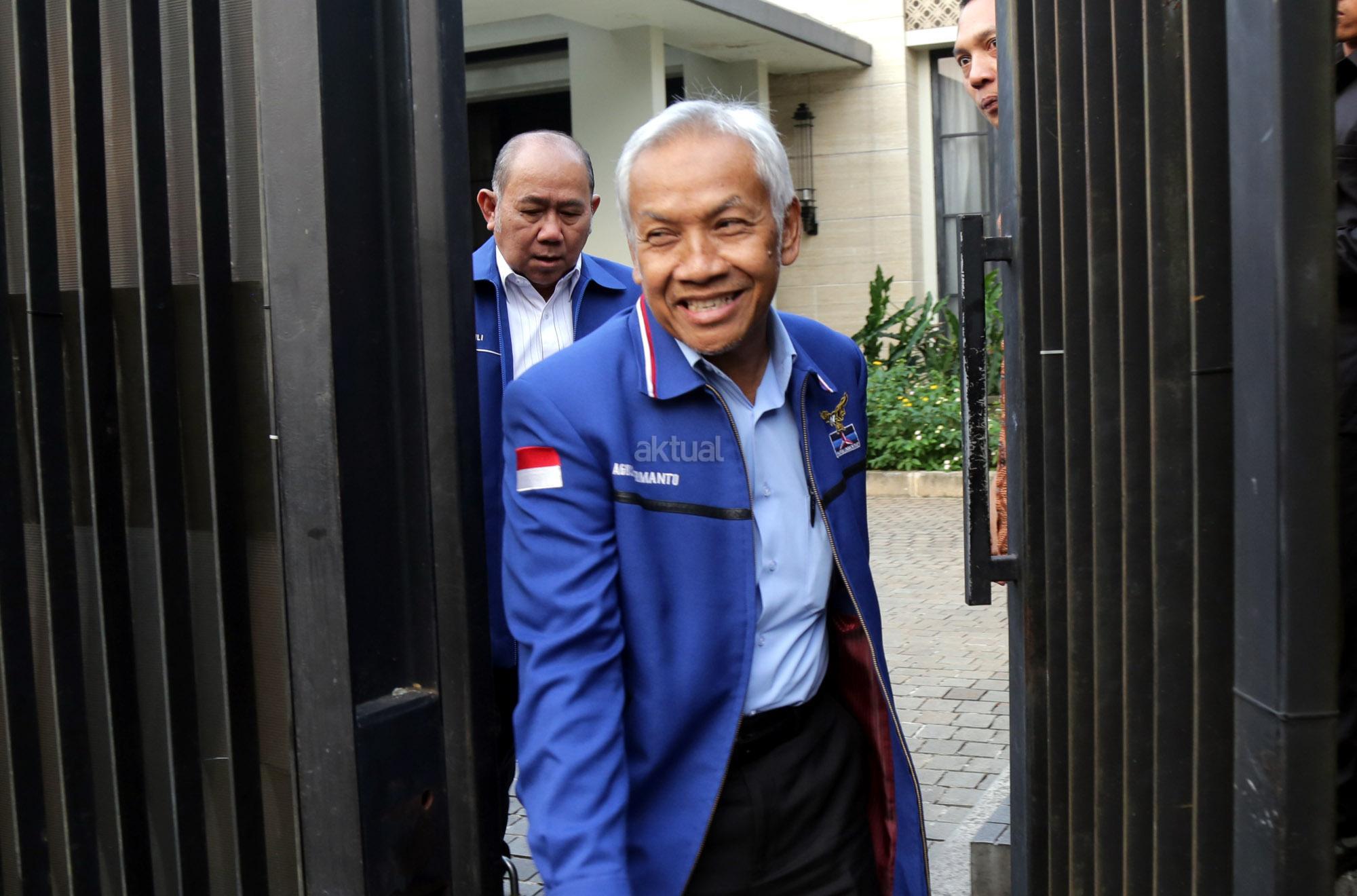 Wakil Ketua Dewan Kehormatan Partai Demokrat Agus Hermanto bersama Ketua DPD Partai Demokrat DKI Jakarta Nachrowi Ramli usai melakukan rapat pimpinan majelis tinggi Partai Demokrat di Kediaman Ketua Umum DPP Susilo Bambang Yudhoyono, di Mega Kuningan, Jakarta, Senin (9/7/2018). Pertemuan tersebut membahas tiga agenda, pertama bahas DPR RI, kedua gubernur wakil gubernur dan ketiga capres dan cawapres. AKTUAL/Tino Oktaviano