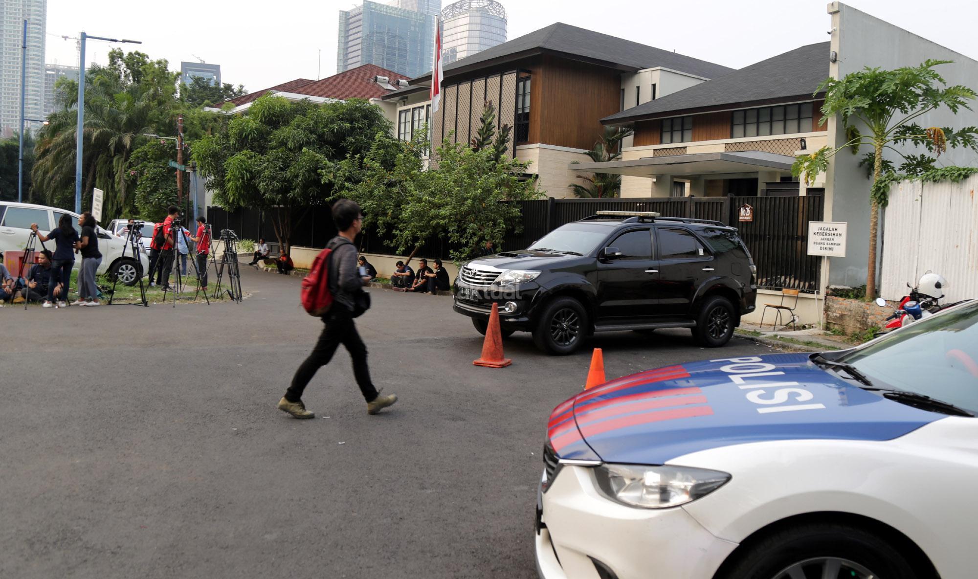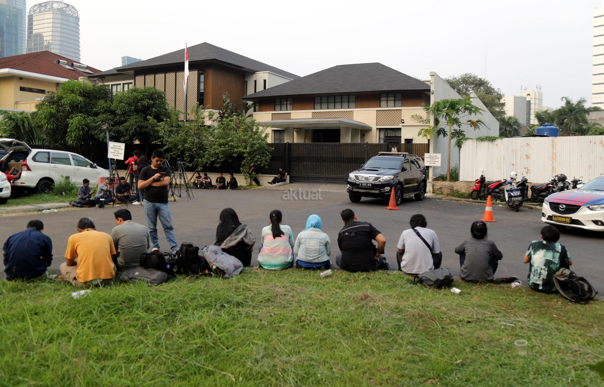 Suasana pewarta saat akanmmeliput pertemuan rapat pimpinan majelis tinggi Partai Demokrat di Kediaman Ketua Umum DPP Susilo Bambang Yudhoyono, di Mega Kuningan, Jakarta, Senin (9/7/2018). Pertemuan tersebut membahas tiga agenda, pertama bahas DPR RI, kedua gubernur wakil gubernur dan ketiga capres dan cawapres. AKTUAL/Tino Oktaviano