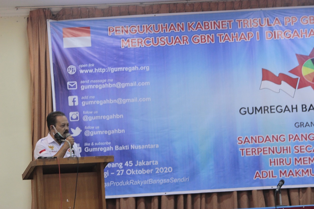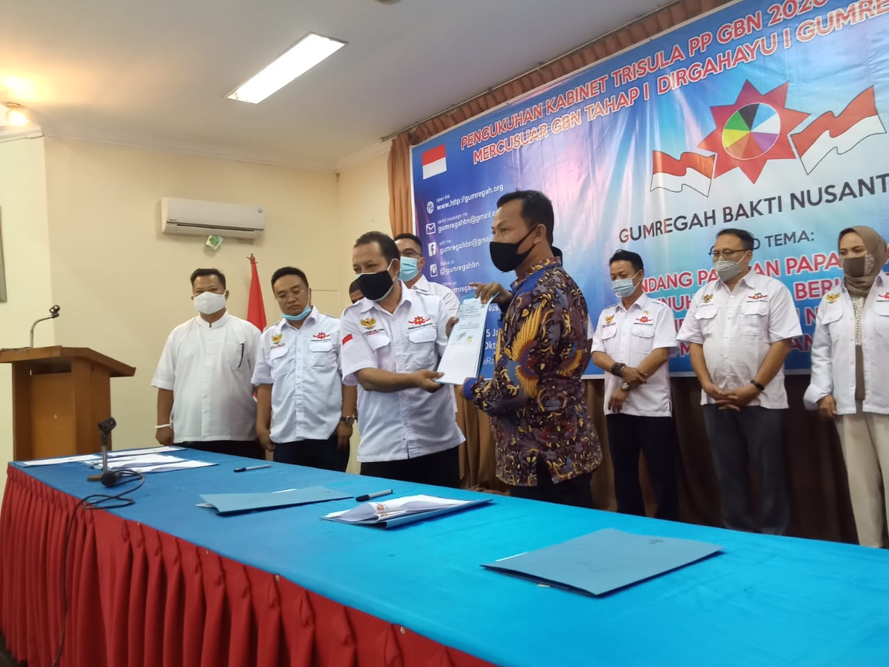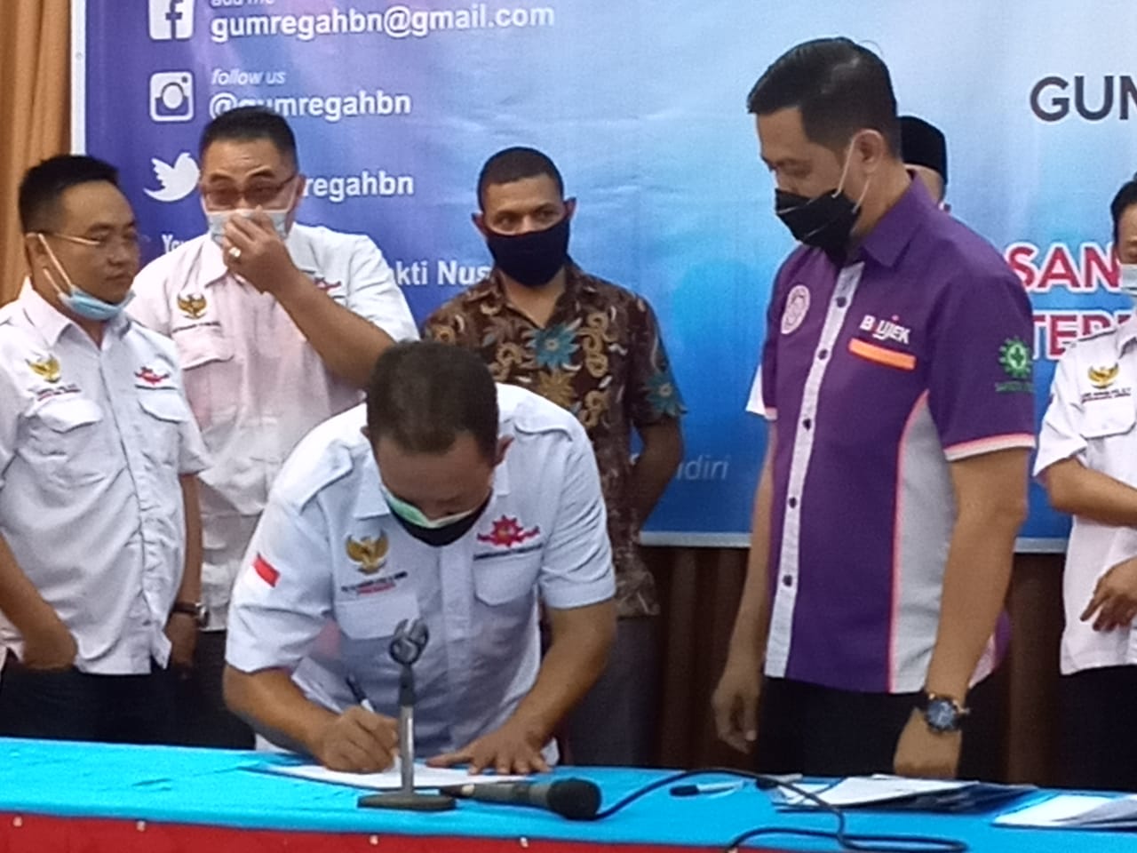 Gumregah Bakti Nusantara (GBN) sepakati kerjasama guna memajukan ekonomi rakyat agar lebih berkembang dan unggul. Kerjasama tersebut ditandangani oleh Presiden GBN, dr. Ali Mahsun ATMO, M.Biomed. dengan (1) Ketua Umum Kadin Indonesia, Eddy Ganefo, (2) Ketua Umum Koperasi Beu Abadi Nusantara (KOPBAN) Eka Maulana, (3) Ketua Umum Asosiasi Pengembang dan Pemasar Rumah Nasional M. Syawali Pratna, SE., MM. (4) Ketua Umum Perempuan Peduli Pembangunan Daerah Indonesia (P3DI) DR Sri Sundari, SH., MM, (5) Pelaksana Harian Ketua Umum Asosiasi Pedagang Kaki Lima Indonesia (APKLI), Abdul Aziz, SH., (6) Direktur Utama PT. Bio Sentra Indonesia (Owellness) Ibu Sumarni, dan (7) Direktur Utama PT Amara Manunggal Persada (Air Sehat Gumregah) Taripan. Presiden GBN didampingi jajaran Kabinet Trisula PP GBN 2020-2025, Satria GBN Prov. DKI Jakarta, Hairul Hidayat, Satria GBN Prov. Maluku, Pdt. Elysa Lazarus Dakay, Satria GBN Prov Papua, Jonah, dan dihadapan para tamu undangan dan awak media, di Gedung Joeang Jakarta, Selasa (27/10) lalu.
