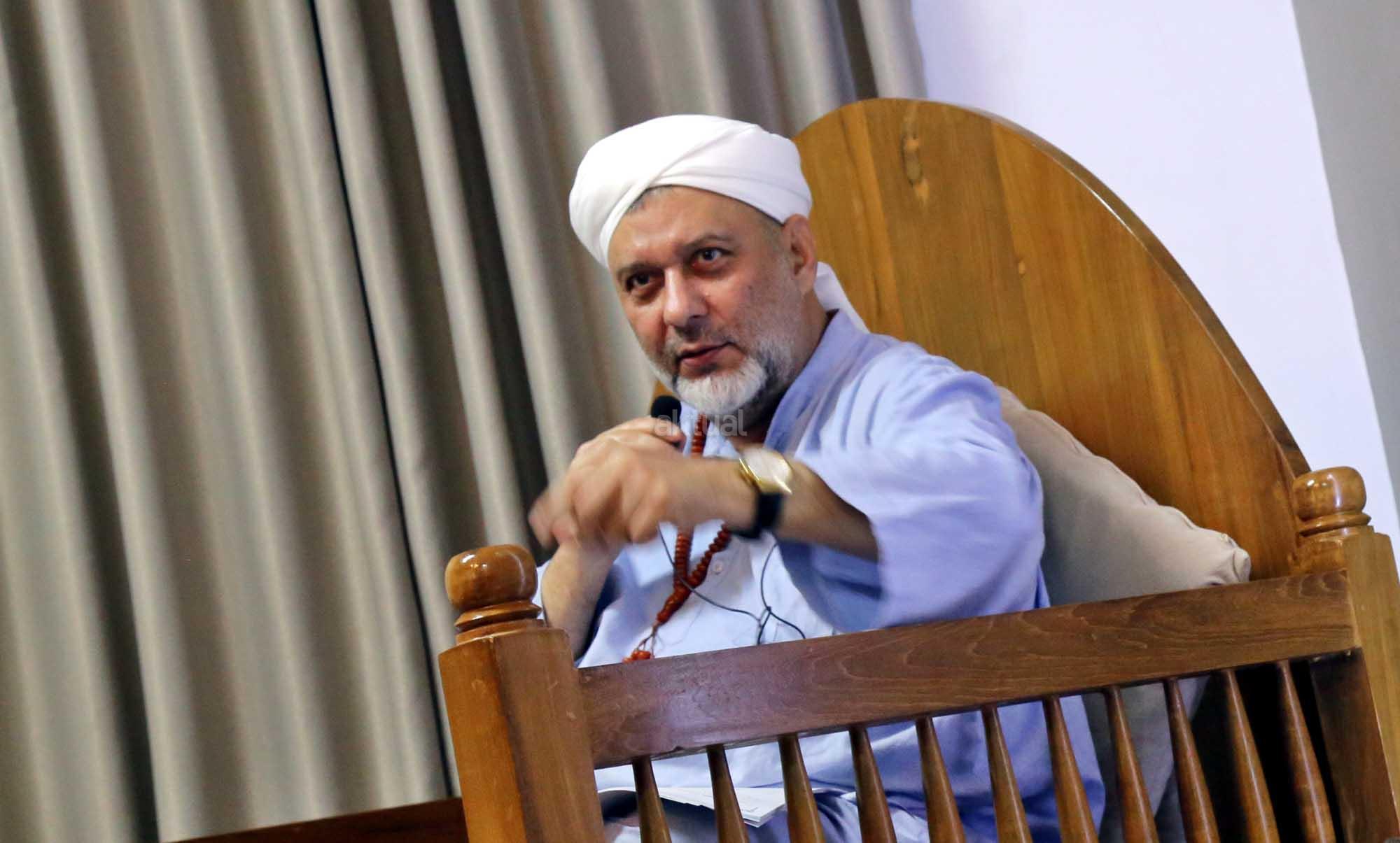 Syekh Dr. Mahmod Abu al Huda al Huseini saat mengisi Sya'rah "Hizab Bahr" Thoriqoh Syadziliyah di Zawiyah Arraudhah, Jalan Tebet Barat VIII, Jakarta Selatan, Senin (16/7/2018). Cucu Quthbul Aulia Syekh Imam Ahmad Arrifai ra Syiria - Turki, Mursyid Thoriqoh Darqowiyah Syadziliyah ini akan mengisi kajian di Zawiyah Arraudhah selama dua hari hingga 17 Juli 2018. AKTUAL/Tino Oktavino