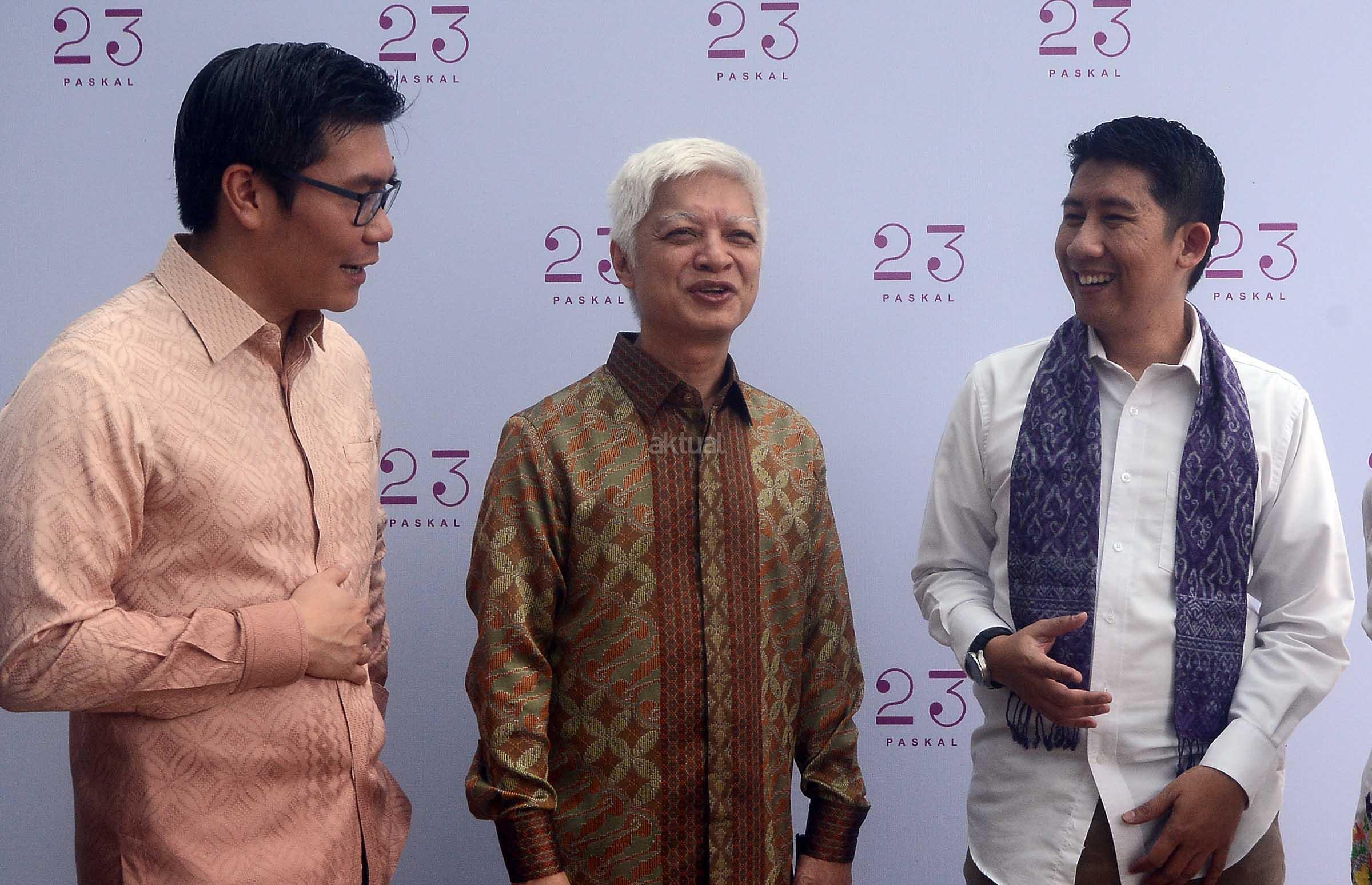 Dari kiri ke kanan, COO PT Indonesian Paradise Property Tbk Anthony Prabowo Susilo, Founder PT Indonesian Paradise Property Tbk Boyke Gozali, Centre Mall Manager 23 Paskal M.Satriawan Natsir berbincang disela pertemuan dengan para tenant dan peluncuran proyek terbaru yakni 23 Paskal Bandung di Jakarta, Rabu (23/11). Proyek ini akan menjadi destinasi gaya hidup positif dan bermitra bersama insan kreatif kota Bandung dengan tagline “Inspiringly Yours”. Mall premium yang terletak di Paskal Hypersquare Bandung menempati lahan seluas 60.000 m2 dan dengan lease area seluas 40.000 m2 dan memiliki lahan parkir 800 hingga 2000 lot parkir. 23 Paskal Bandung yang juga sebuah pusat perbelanjaan premium, hiburan, dan kreatif akan segera dibuka pada bulan April 2017 dan diikuti dengan Grand Opening pada bulan Mei 2017. AKTUAL/Eko S Hilman