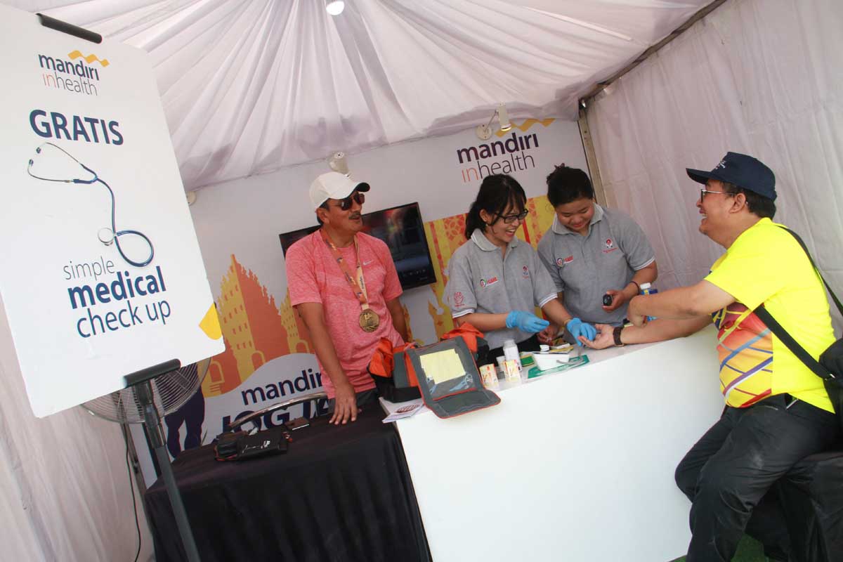 PT Asuransi Jiwa Inhealth Indonesia (Mandiri Inhealth) memberikan cek kesehatan gratis bagi para peserta lari di booth Mandiri Inhealth dalam event Mandiri Jogja Marathon, Yogyakarta, Minggu (15/4). Mandiri Inhealth giat menyelenggarakan cek kesehatan gratis sejalan dengan semangatnya dalam menyehatkan negeri. Hingga Maret 2018, Mandiri Inhealth telah memberikan perlindungan asuransi kesehatan kepada lebih dari 1.200 Badan Usaha dan lebih dari 1,5 Juta peserta. AKTUAL/HO