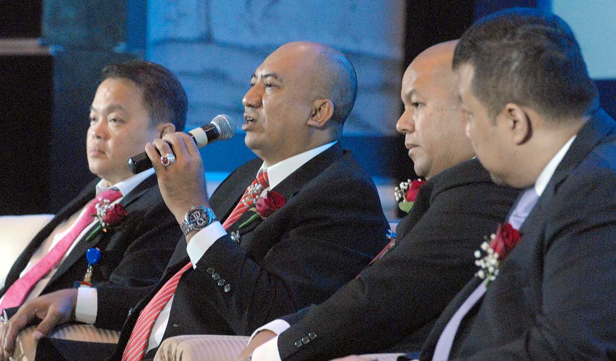Direktur Utama PT Mandiri Tunas Finace, Ignatius Susatyo Wijoyo (kedua dari kiri) bersama jajaran direksi lainnya saat jumpa pers usai penawaran Obligasi Berkelanjutan III Mandiri Tunas Finance Tahap I Tahun 2016 dengan nilai sebanyak banyaknya sebesar Rp 500 Miliar di Jakarta, Senin (5/9). Obligasi tersebut merupakan bagian dari rencana Penawaran Umum Berkelanjutan (PUB) Obligasi Berkelanjutan III senilai total Rp 3 Triliun.Saat ini, 51% saham Mandiri Tunas Finance dimiliki oleh Bank Mandiri dan sisanya sebesar 49% saham dipegang oleh Tunas Ridean. Sementara itu, pada kuartal I 2016, new lending perseroan naik 31,9% menjadi Rp 4,87 triliun dibandingkan periode yang sama tahun 2015 sebesar Rp 3,69 triliun.