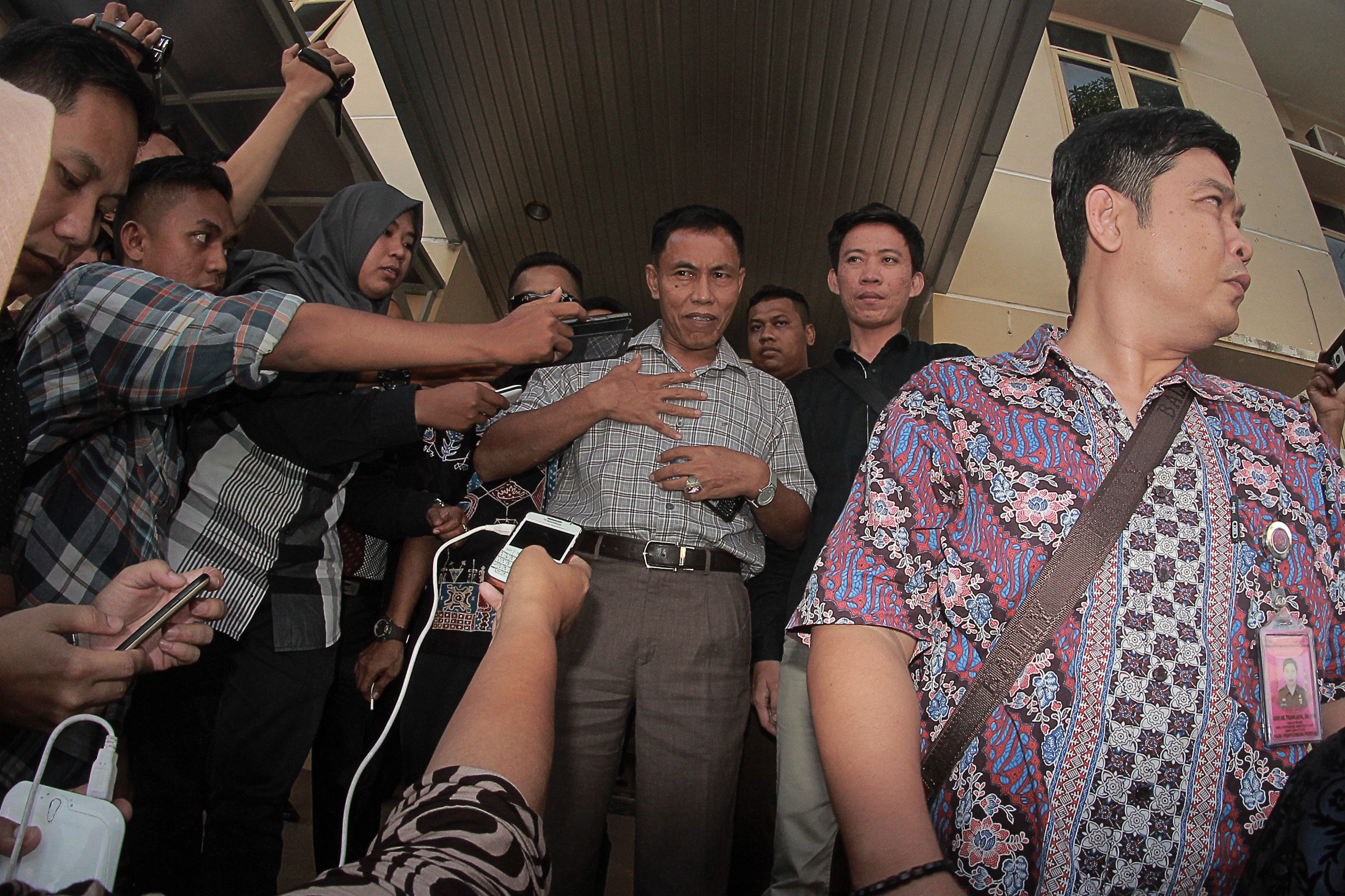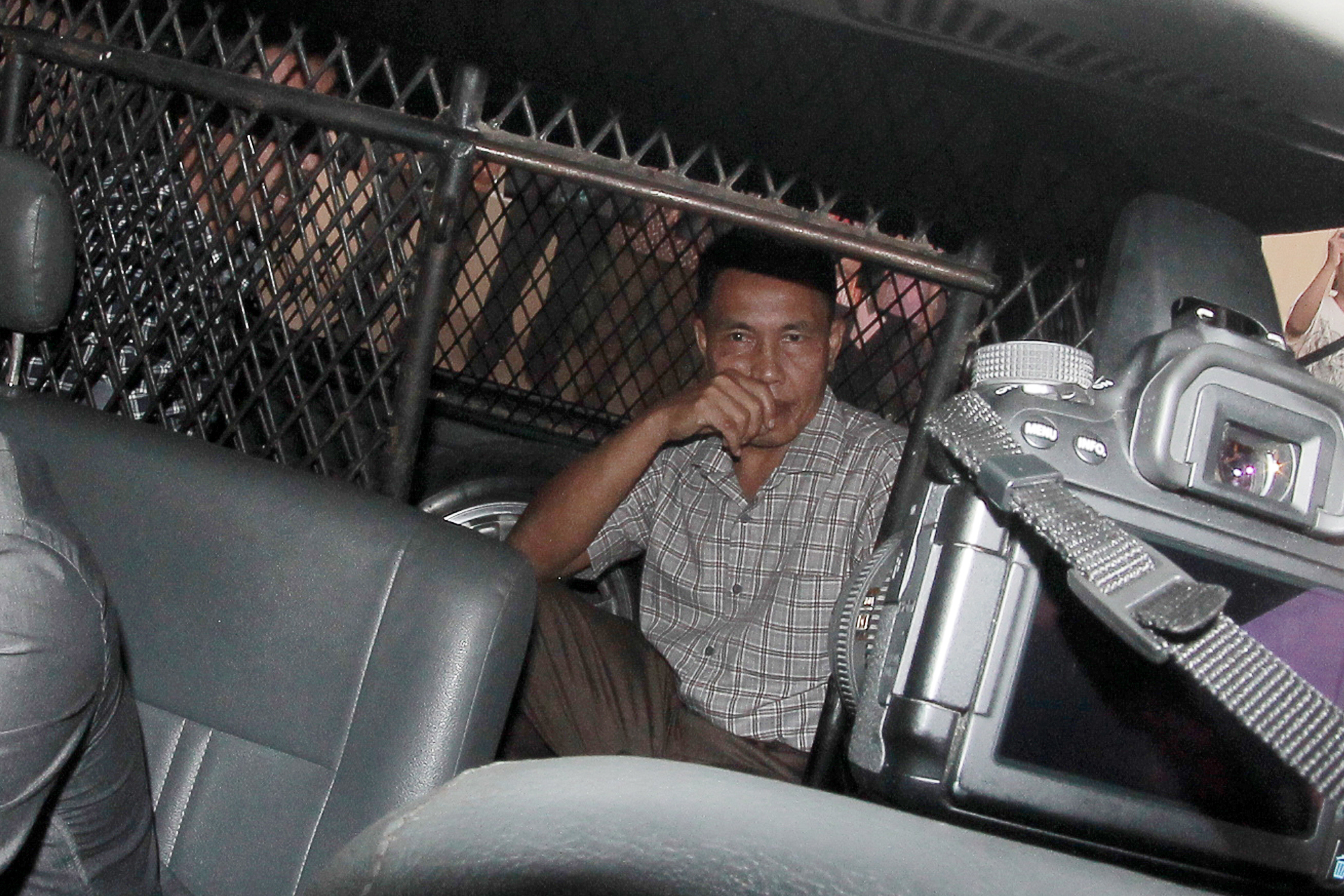 Mantan PJ Bupati Way Kanan Albar Hasan duduk dimobil tahanan Kejari untuk selanjutnya dibawa ke Rumah Tahanan (Rutan) Way Hui selama 20 hari kedepan sebelum mengikuti proses persidangan di Lampung, Selasa (17/5). Albar ditetapkan sebagai tersangka setelah terbukti korupsi dalam proyek pekerjaan land clearing Bandara Raden Inten II tahun 2013 senilai Rp8 miliar sewaktu dirinya menjabat sebagai Kepala Dinas Perhubungan di 2013.ANTARA FOTO/Tommy Saputra/pd/16.