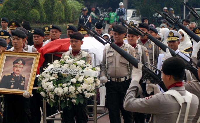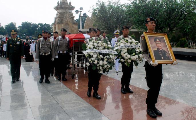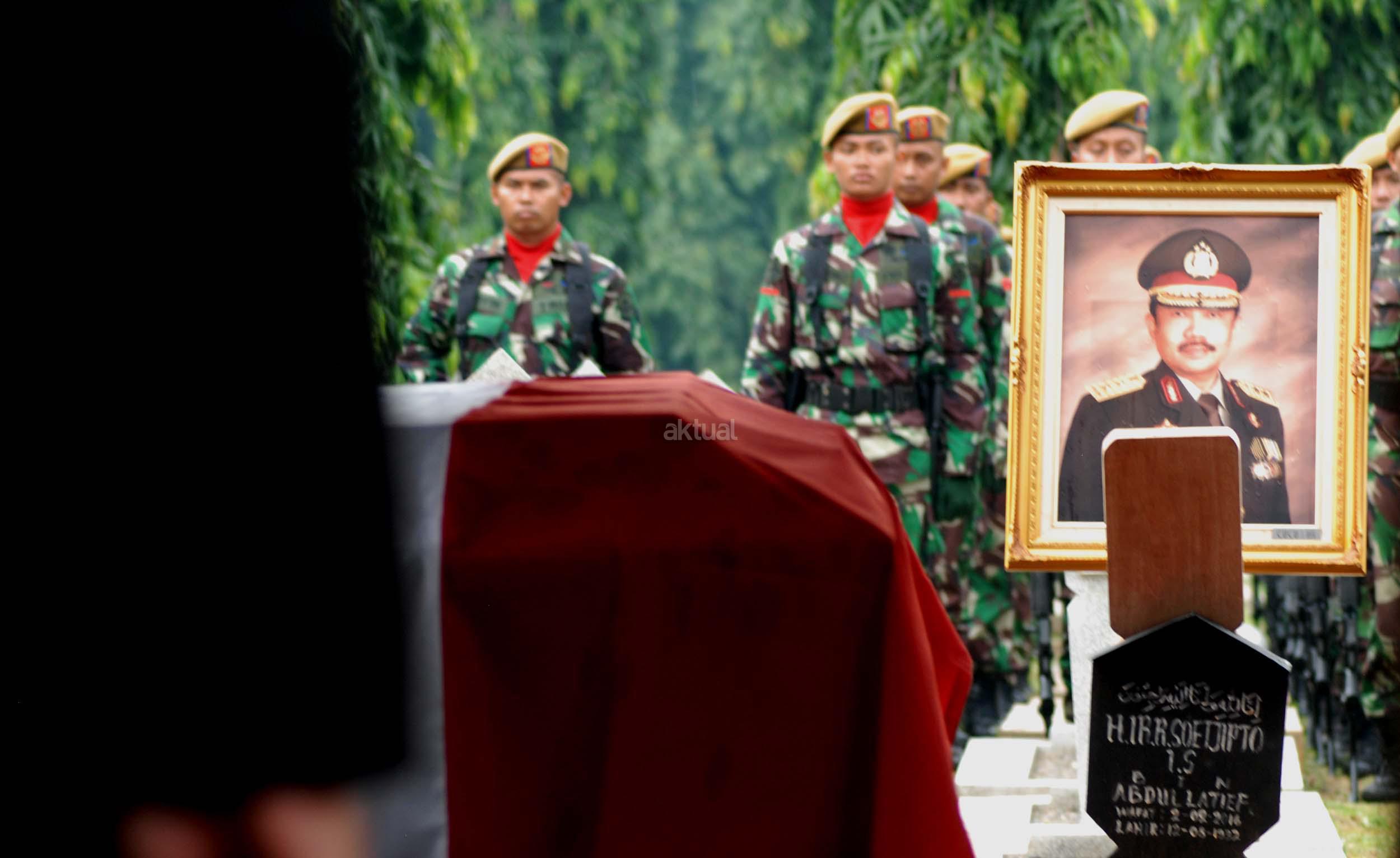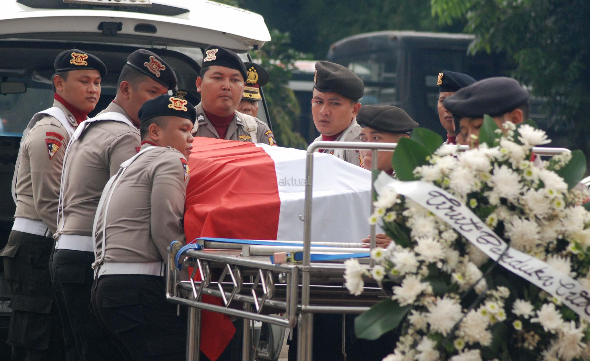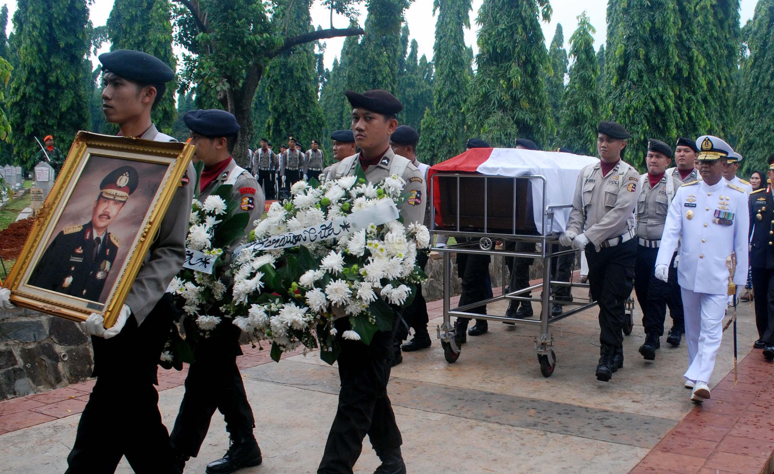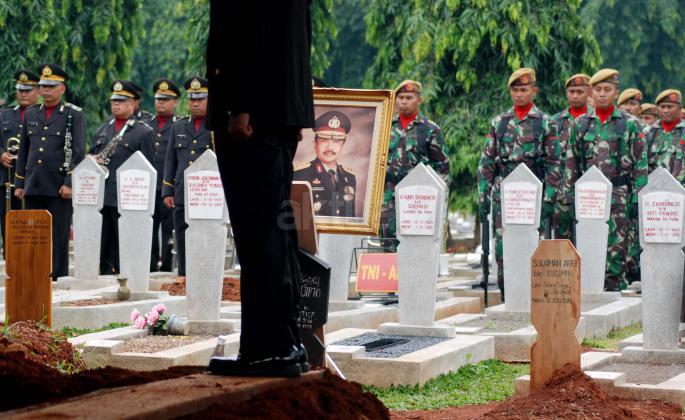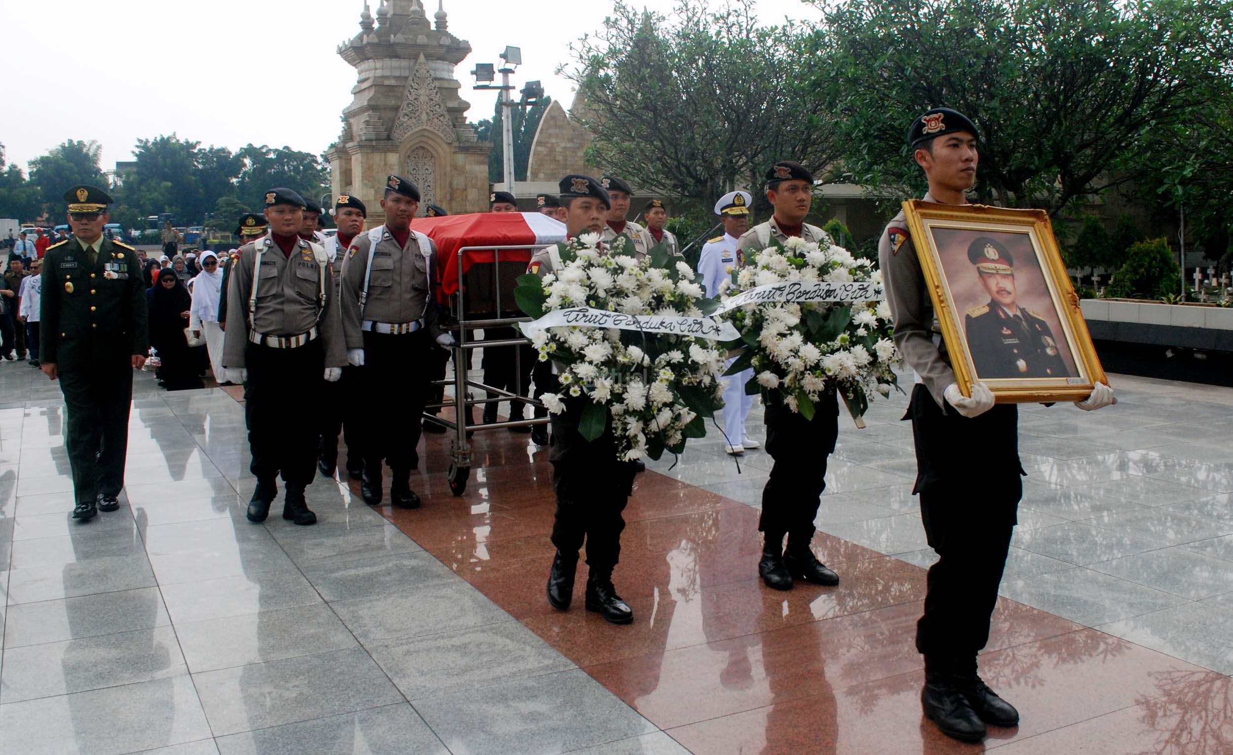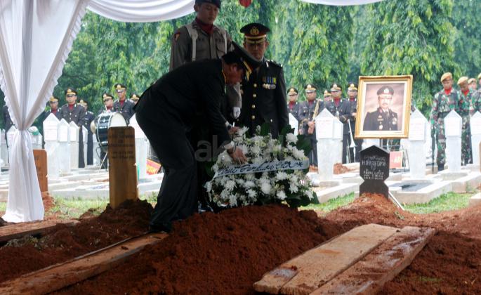 Proses pemakaman dilakukan dengan upacara secara militer dengan melibat Polri bersama gabungan TNI AL, TNI AD, TNI AU dan upacara dipimpin langsung oleh Kadiv Humas, Mabes Polri Inspektur Jendral Anton Charliyan bertindak selaku Inspektur upacara Pemakaman.