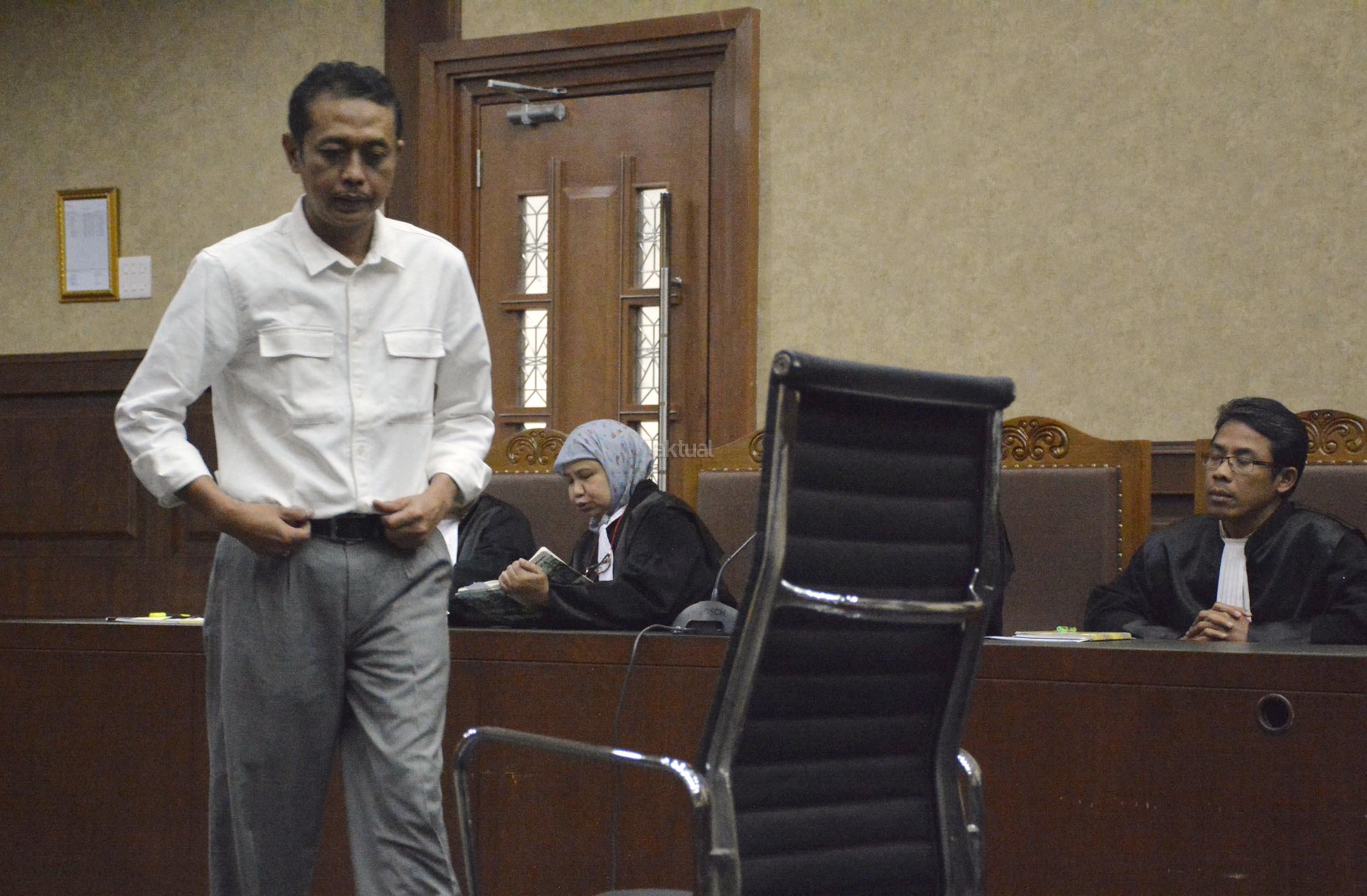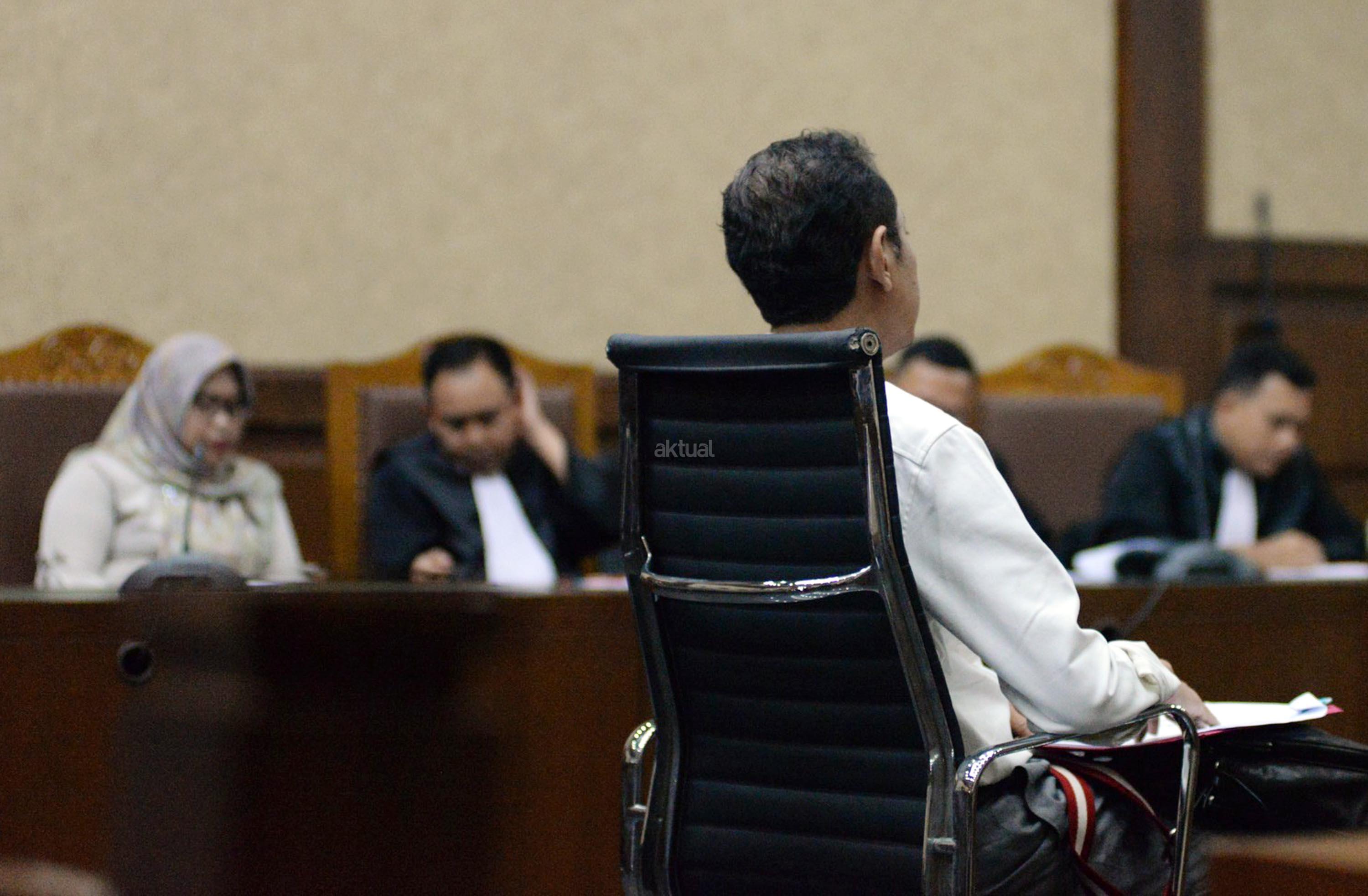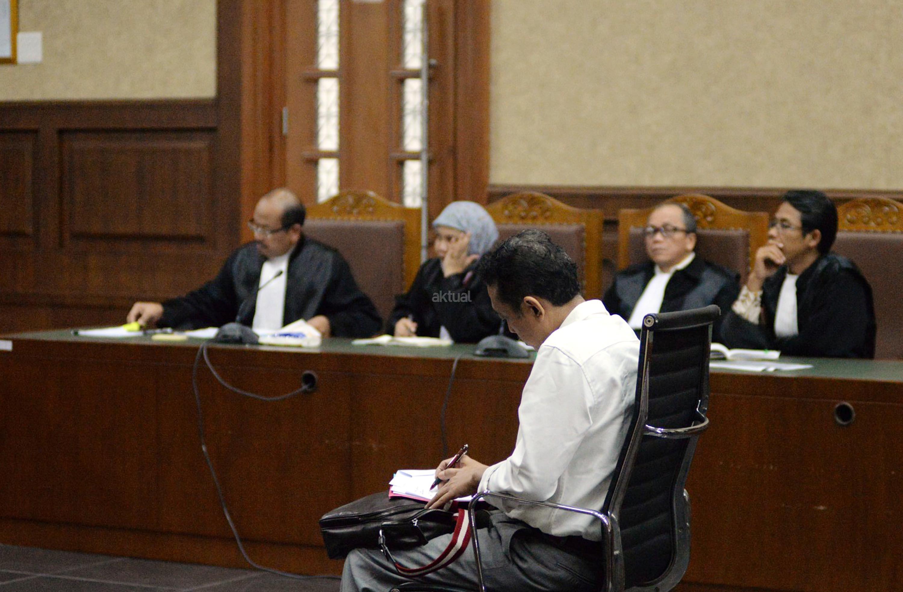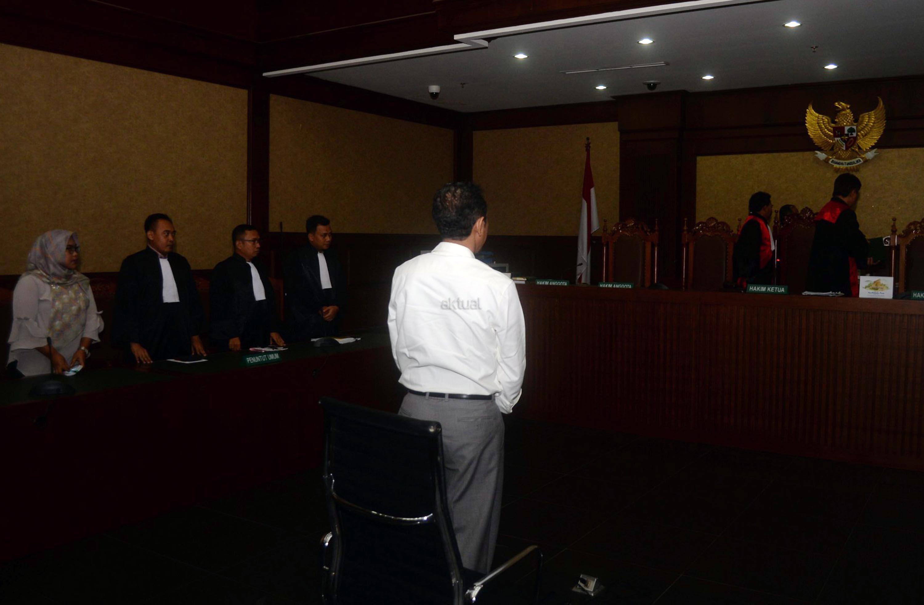 Terdakwa kasus dugaan suap kepengurusan pajak Handang Soekarno, saat menjalani sidang vonis di Pengadilan Tipikor, Jakarta, Senin (24/7/2017). Mantan Penyidik Pegawai Negeri Sipil pada Direktorat Jenderal Pajak, Handang Soekarno, divonis 10 tahun penjara dan denda Rp 500 juta subsider 4 bulan kurungan. Hukuman tersebut lebih ringan dibandingkan tuntutan jaksa Komisi Pemberantasan Korupsi (KPK) yaitu 15 tahun penjara dan denda Rp 750 juta subsider 6 bulan kurungan. AKTUAL/Munzir