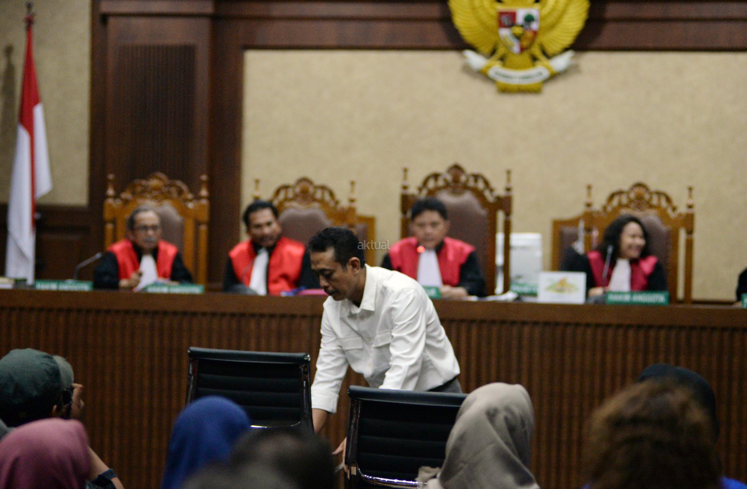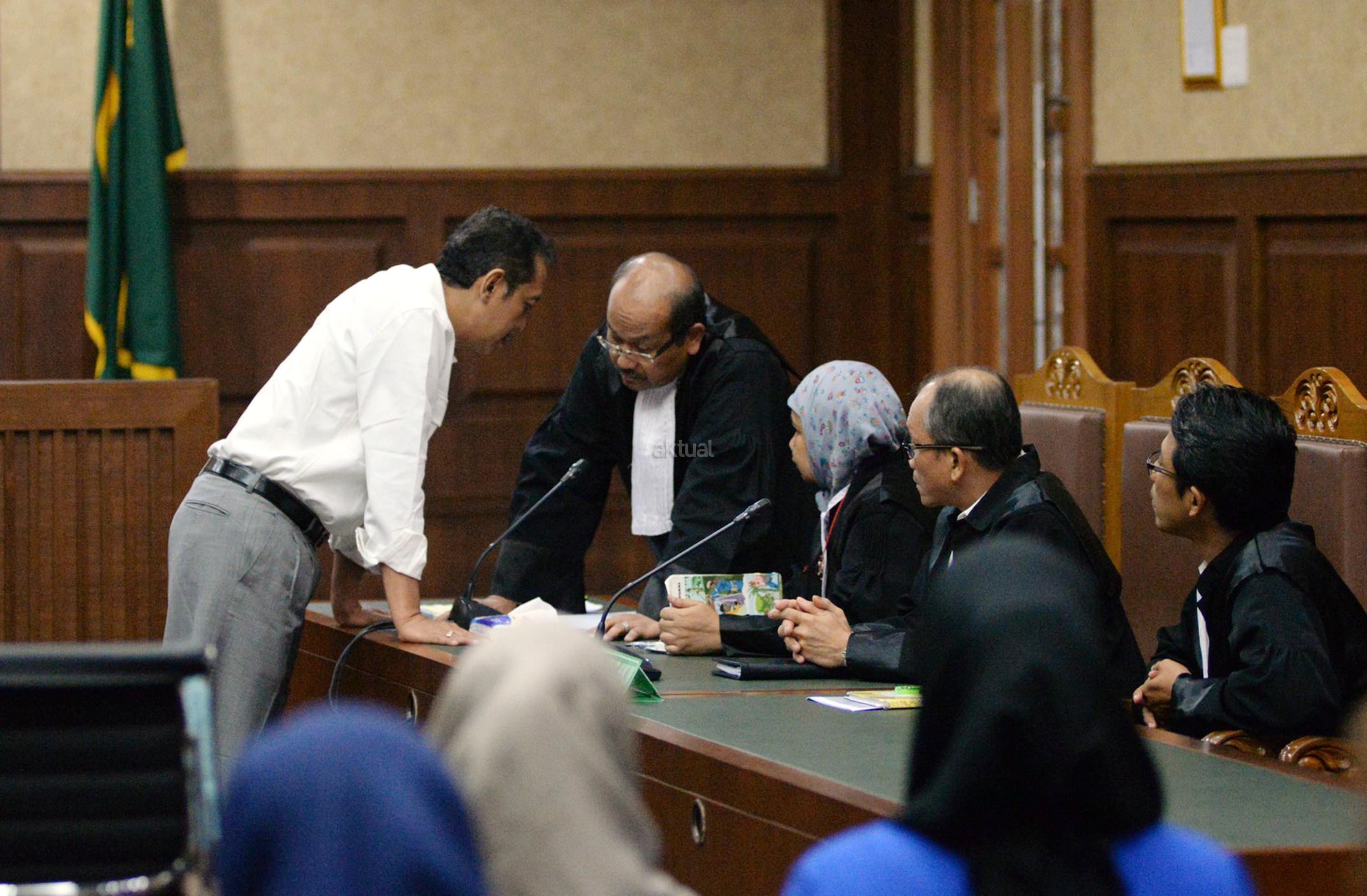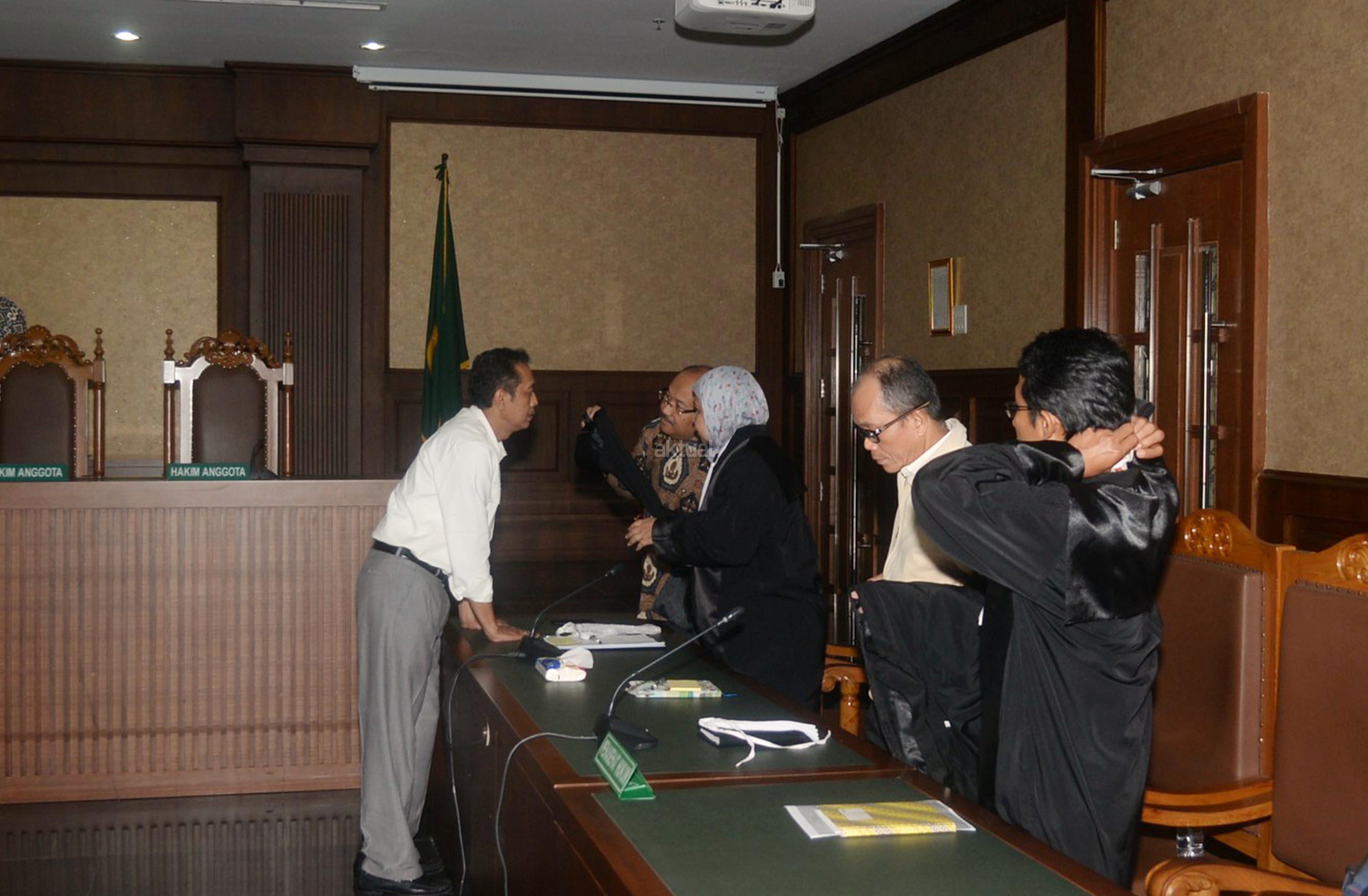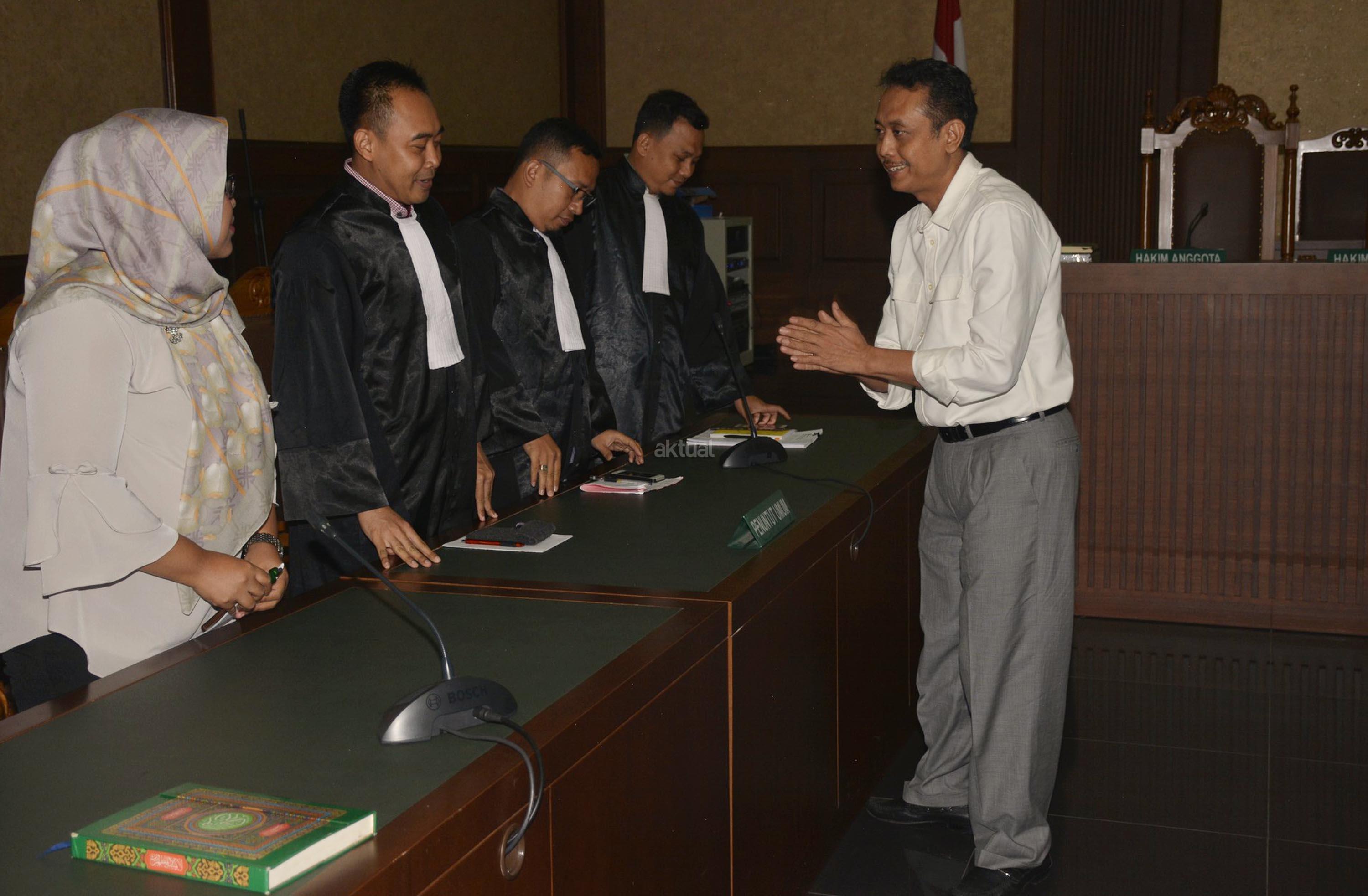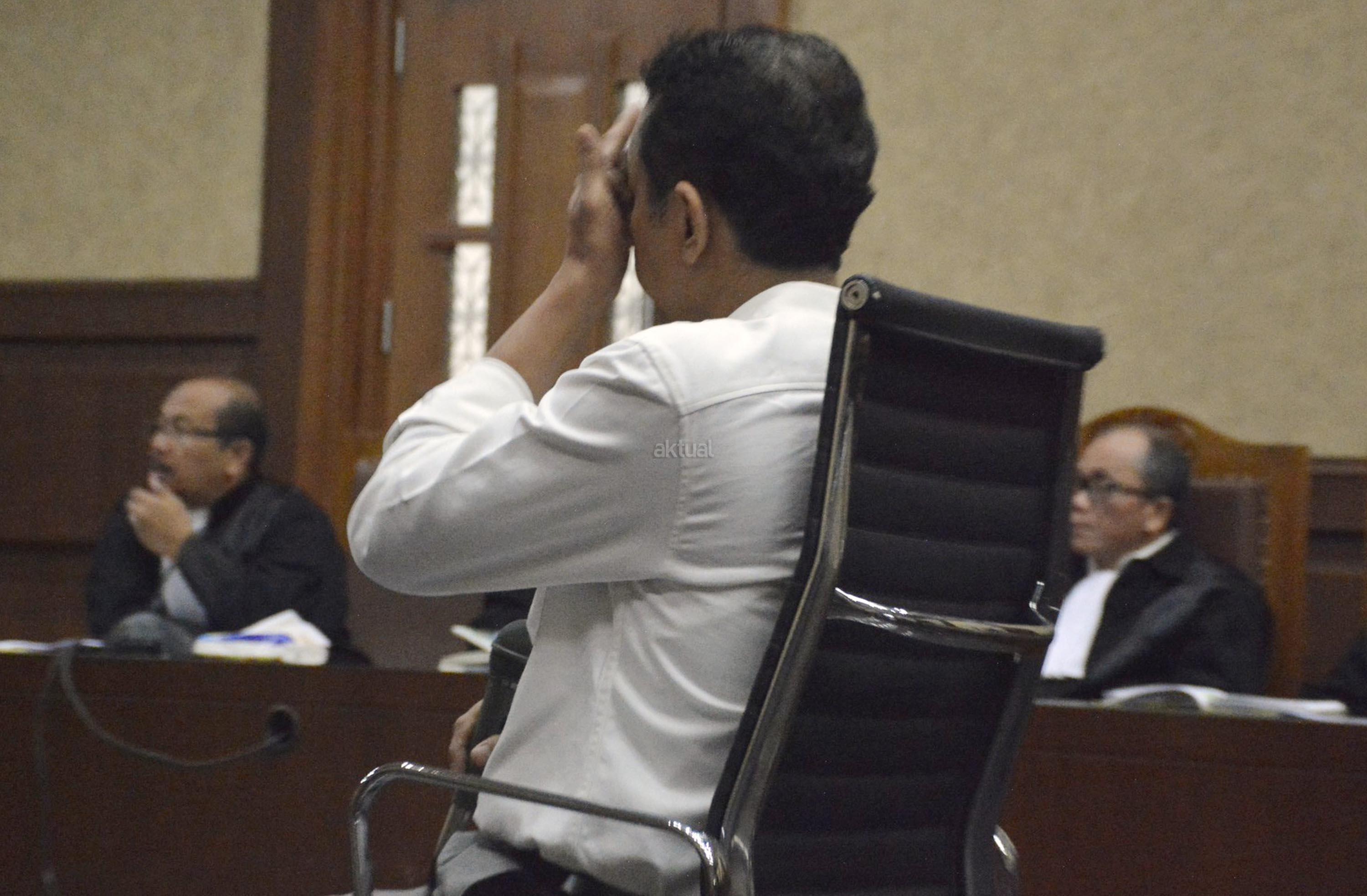 Terdakwa kasus dugaan suap kepengurusan pajak Handang Soekarno, saat menjalani sidang vonis di Pengadilan Tipikor, Jakarta, Senin (24/7/2017). Mantan Penyidik Pegawai Negeri Sipil pada Direktorat Jenderal Pajak, Handang Soekarno, divonis 10 tahun penjara dan denda Rp 500 juta subsider 4 bulan kurungan. Hukuman tersebut lebih ringan dibandingkan tuntutan jaksa Komisi Pemberantasan Korupsi (KPK) yaitu 15 tahun penjara dan denda Rp 750 juta subsider 6 bulan kurungan. AKTUAL/Munzir