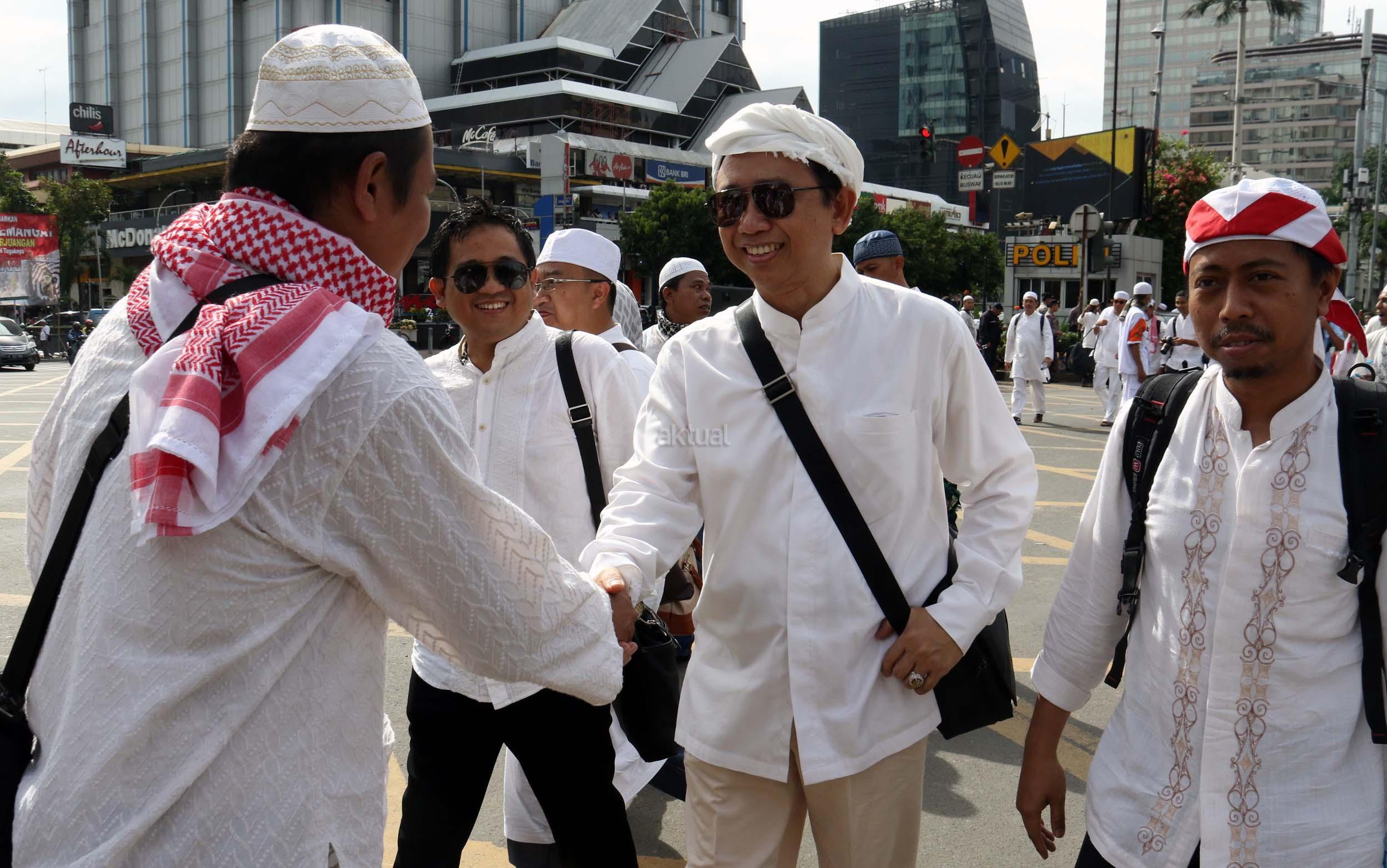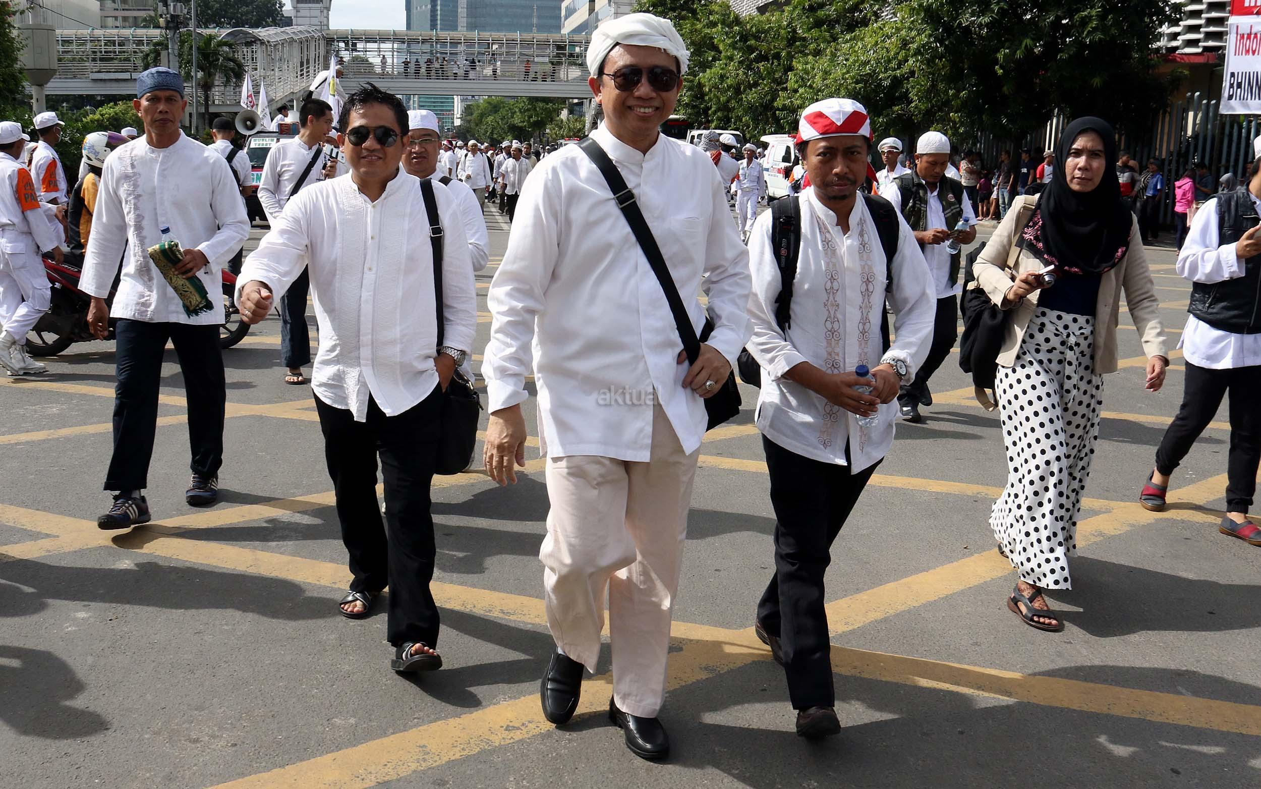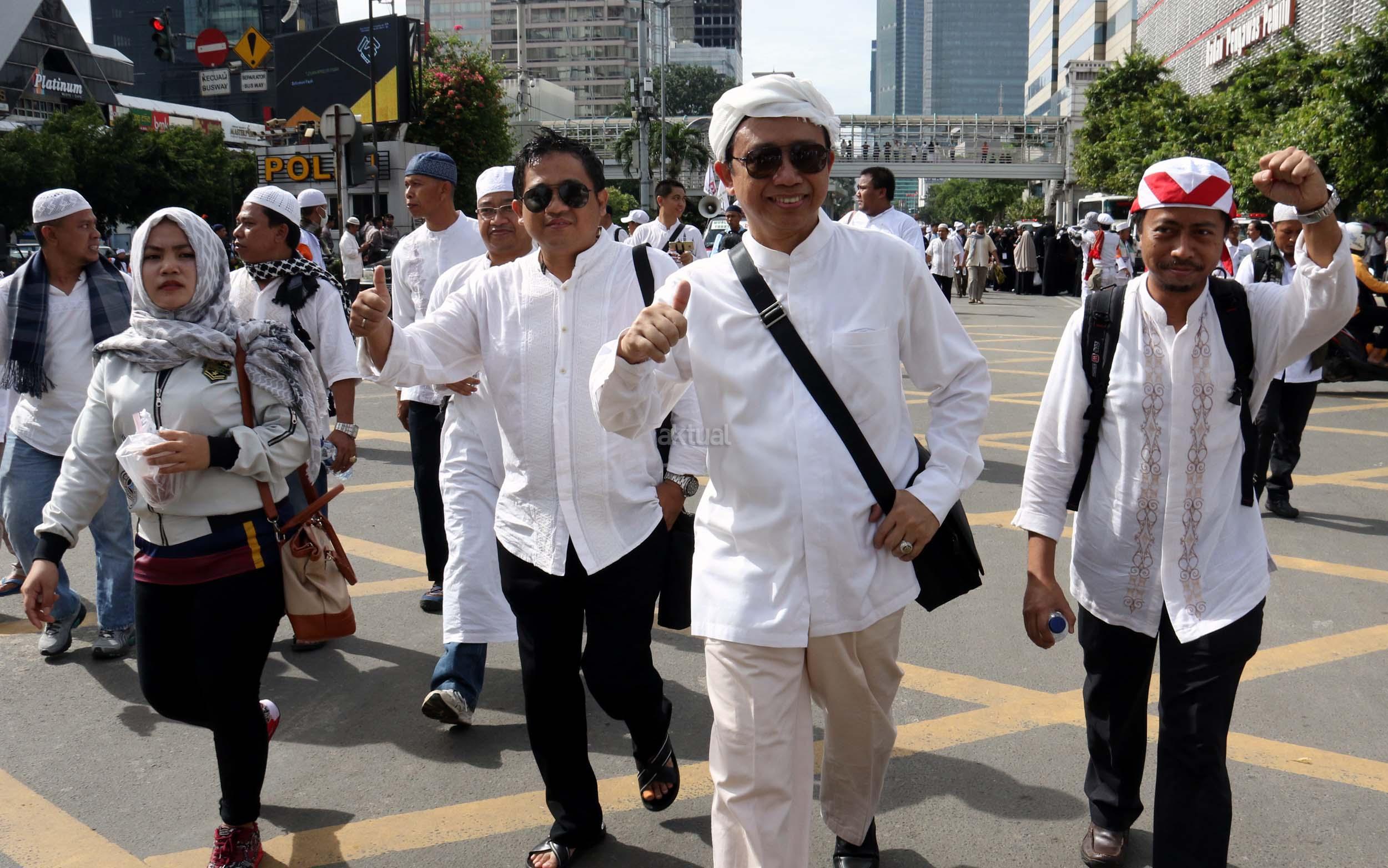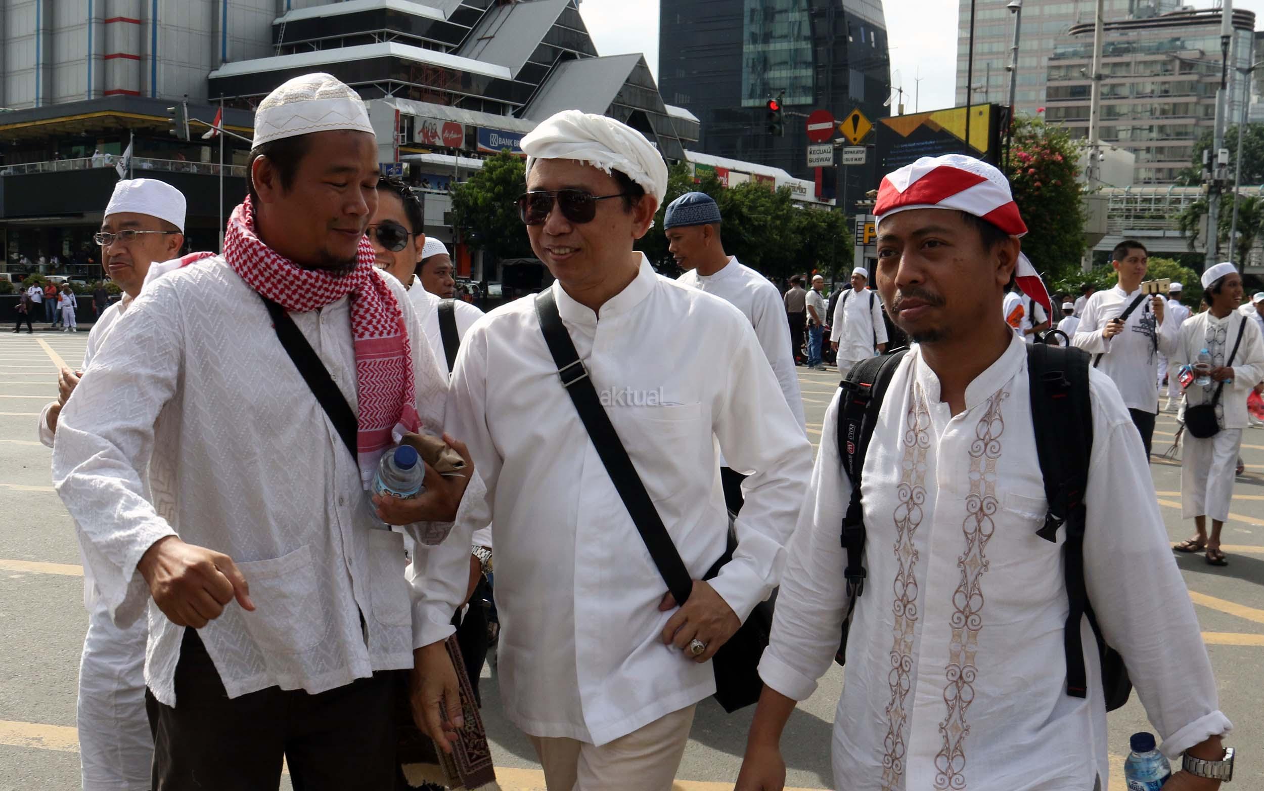 Mantan Ketua DPR RI Marzuki Alie (tengah) terlihat ikut dalam kegiatan zikir dan doa bersama saat Aksi Bela Islam III di Jalan MH Thamrin, Jakarta, Jumat (2/12/2016).Jutaan pendemo berbondong-bondong berjalan menuju lapangan silang Monas untuk melakukan doa dan salat Jumat bersama dengan mengusung tema "Tangkap Ahok Si Penista Al Quran. AKTUAL/Munzir