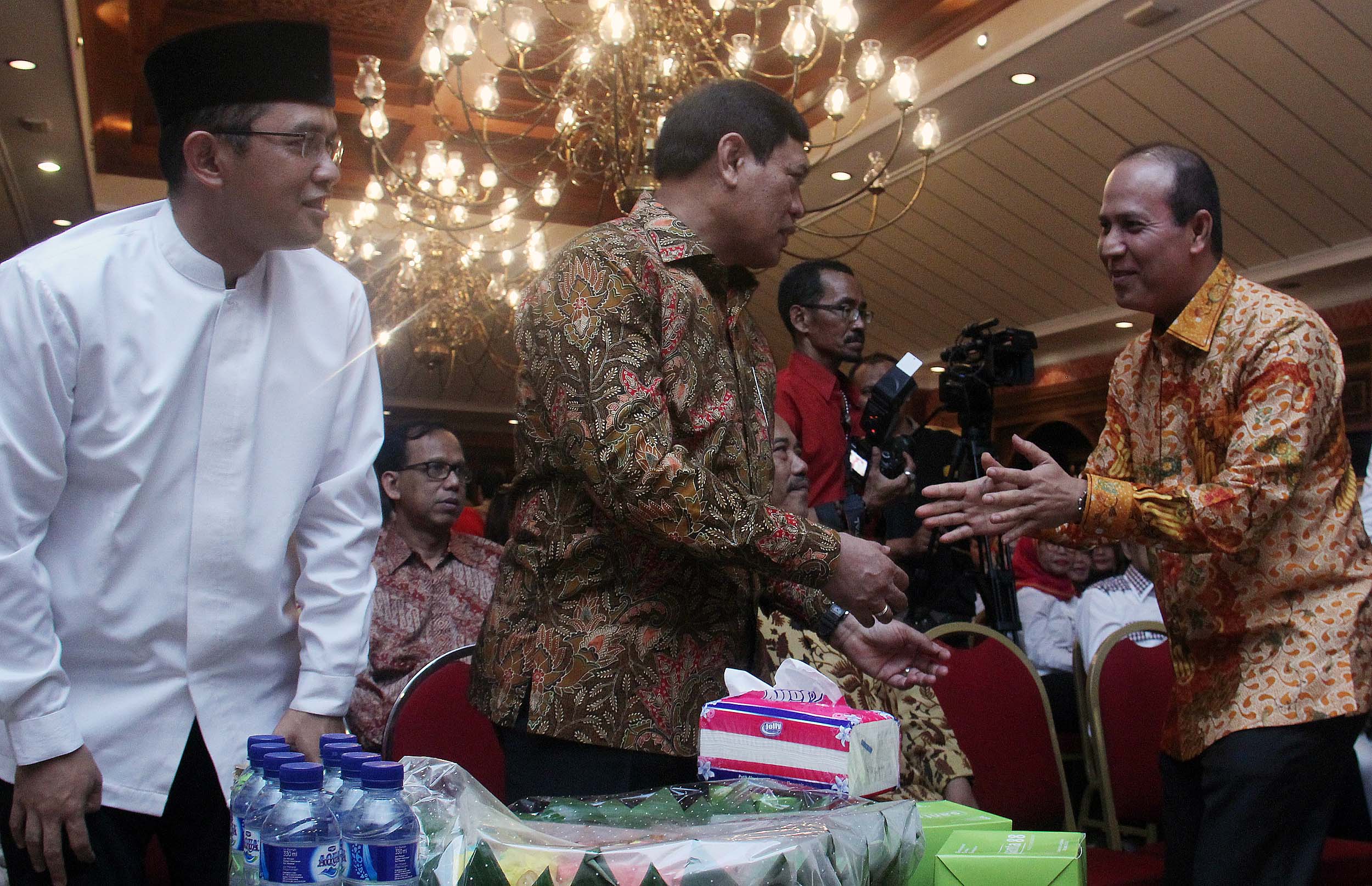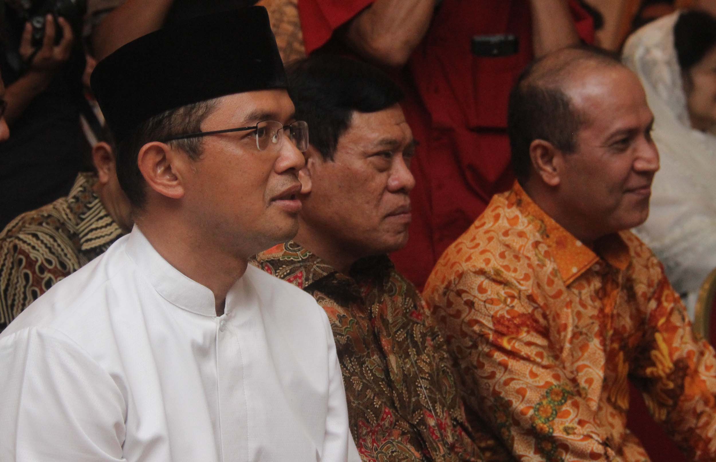 Anggota DPR Fraksi PKB Maman Imanulhaq (kiri), Mantan Menko Polhukam yang juga Dewan Pembina Rumah Kreasi Indonesia Hebat (RKIH) Tedjo Edhi Purdijatno (tengah), Kadiv Humas Mabes Polri Irjen Pol Boy Rafli Amar (kanan) menghadiri acara HUT ke 2 Rumah Kreasi Indonesia Hebat di Jakarta, Jumat (12/8/2016). HUT ke 2 RKIH tersebut mengambil tema ‘Bergerak Bersama Membangun Bangsa Melawan Narkoba dengan Budaya.’