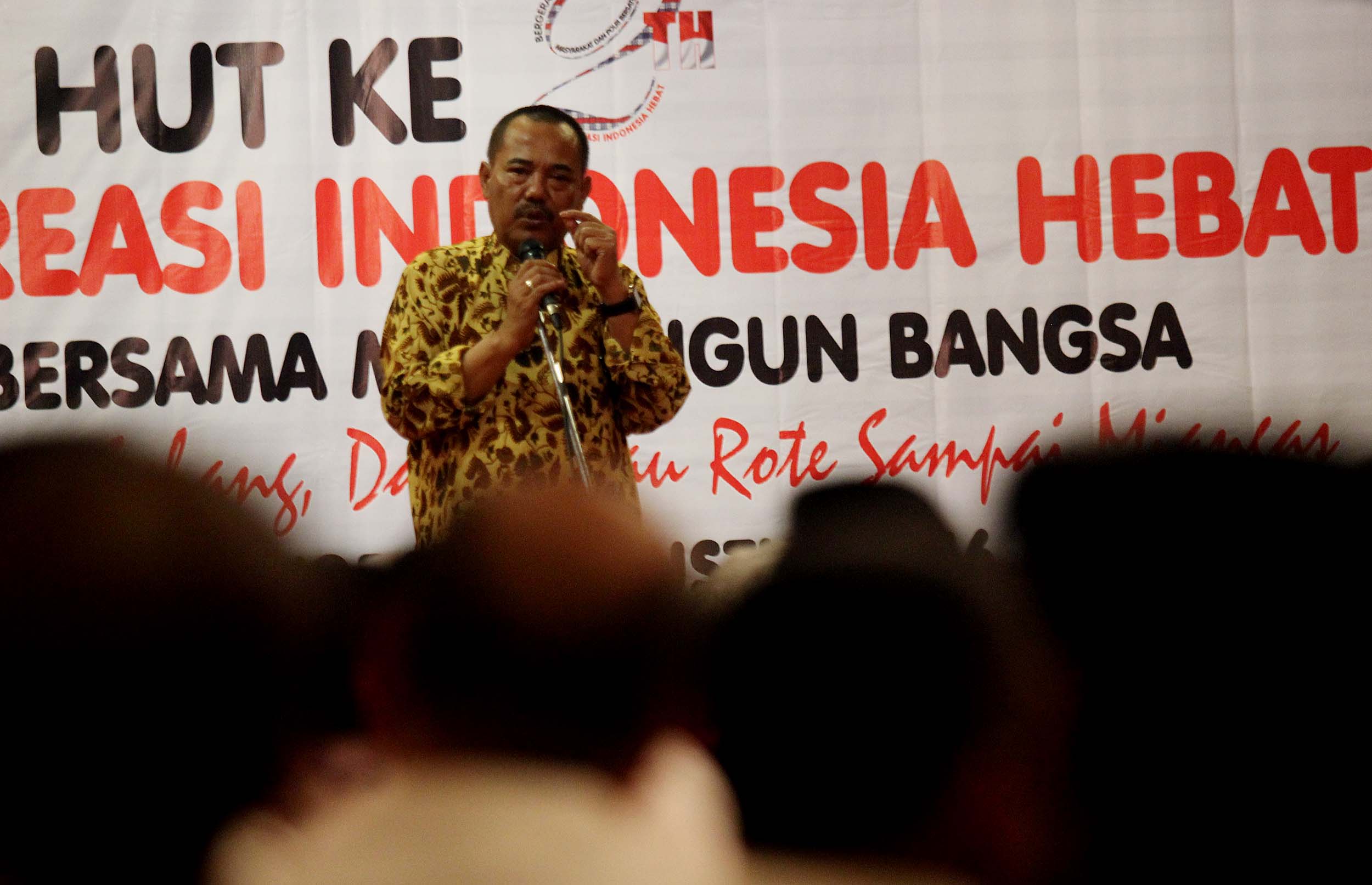 Ketua Umum Rumah Kreasi Indonesia Hebat (RKIH), Kris Budiharjo memberikan pidatonya dalam acara HUT ke 2 Rumah Kreasi Indonesia Hebat di Jakarta, Jumat (12/8/2016). HUT ke 2 RKIH tersebut mengambil tema ‘Bergerak Bersama Membangun Bangsa Melawan Narkoba dengan Budaya.’
