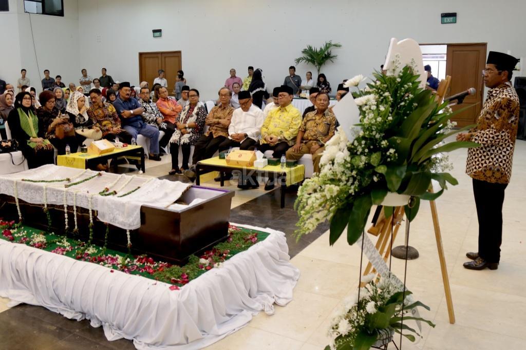 Kerabat dan keluarga berdoa didepan Jenazah sesepuh Partai Golkar yabg juga mantan Menteri Pemberdayaan Perempuan Sri Redjeki di DPP Partai Golkar, Slipi, Jakarta, Kamis (2/11). Sri Redjeki meninggal karena penyakit diabetes dan gangguan ginjal. Sebelum meninggal di Rumah Sakit Pelni, Jakarta Barat, Sri Redjeki sempat menjalani perawatan beberapa hari. Jenazah akan dimakamkan di kompleks pemakaman keluarga di Solo, Jawa Tengah. AKTUAL/Tino Oktaviano