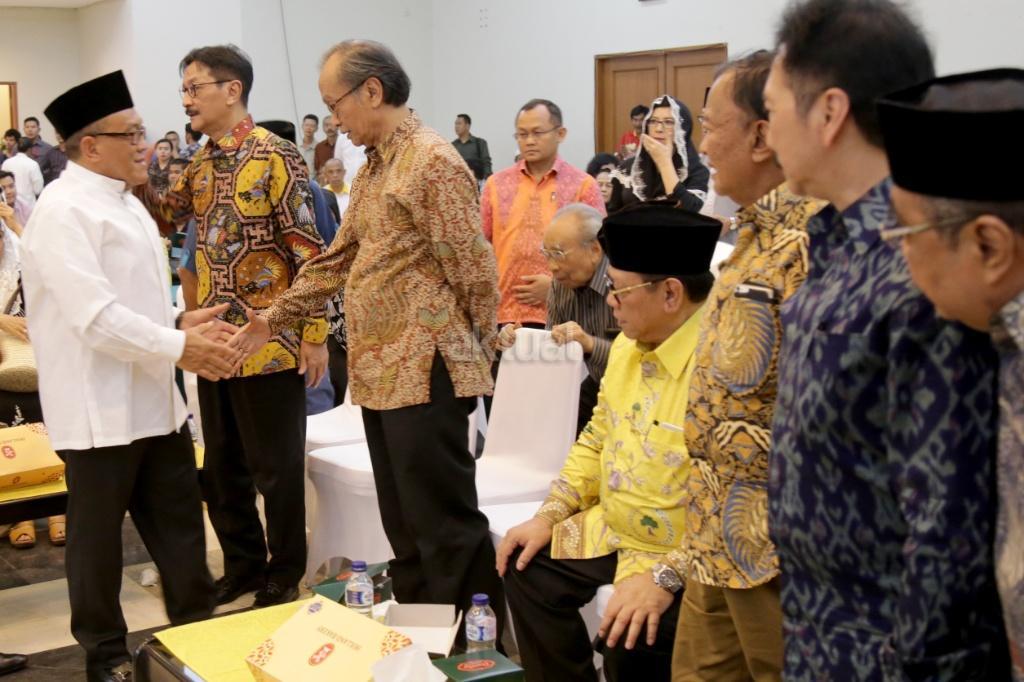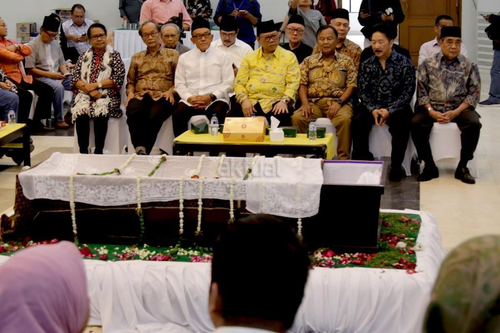 Jajaran petinggi Partai Golkar, diantaranya Aburizal Bakrie, Agung Laksono, Ginanjar Kartasasmita, Idrus Marham saat melayat Jenazah sesepuh Partai Golkar yang juga mantan Menteri Pemberdayaan Perempuan Sri Redjeki di DPP Partai Golkar, Slipi, Jakarta, Kamis (2/11). Sri Redjeki meninggal karena penyakit diabetes dan gangguan ginjal. Sebelum meninggal di Rumah Sakit Pelni, Jakarta Barat, Sri Redjeki sempat menjalani perawatan beberapa hari. Jenazah akan dimakamkan di kompleks pemakaman keluarga di Solo, Jawa Tengah. AKTUAL/Tino Oktaviano