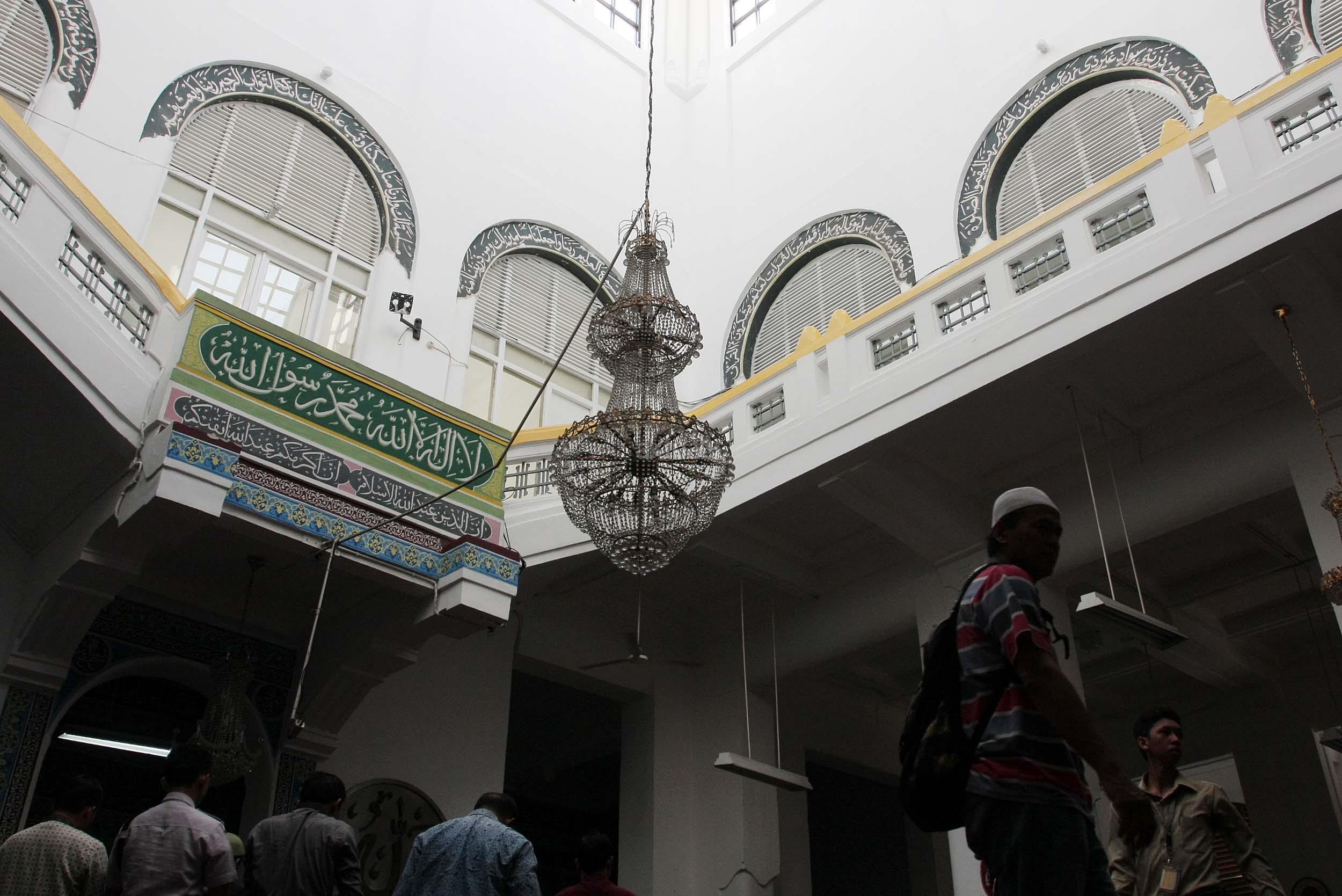 Para jama'ah saat melakukan sholat Dzuhur berjama'ah di Masjid Cut Mutia, di Jalan Taman Cut Meutia Nomor 1, Menteng, Jakarta Pusat, kamis (25/6/2015).Masjid Cut Meutia. Inilah masjid unik di Jakarta. Tak seperti masjid pada umumnya. Tempat ibadah ini tak punya kubah dan menara. Terletak di kawasan Menteng, Jakarta Pusat, masjid ini banyak didatangi umat muslim dari penjuru nusantara.