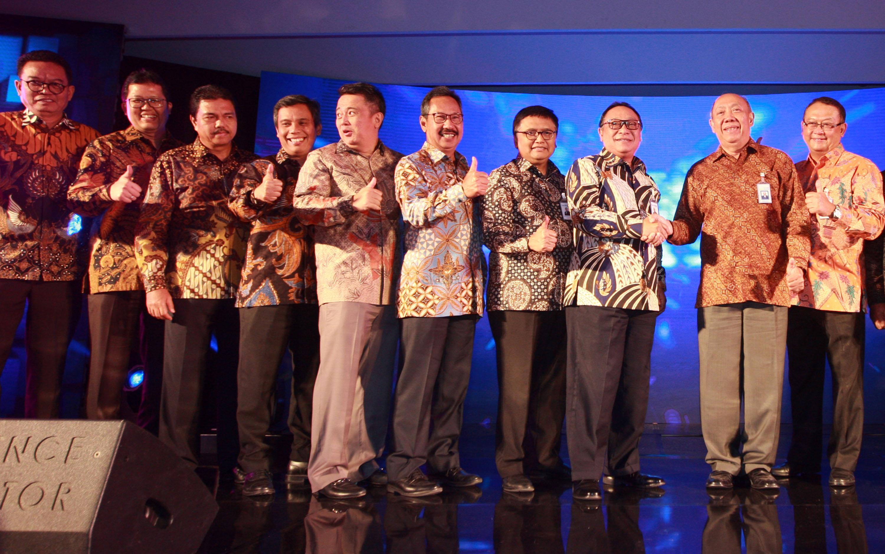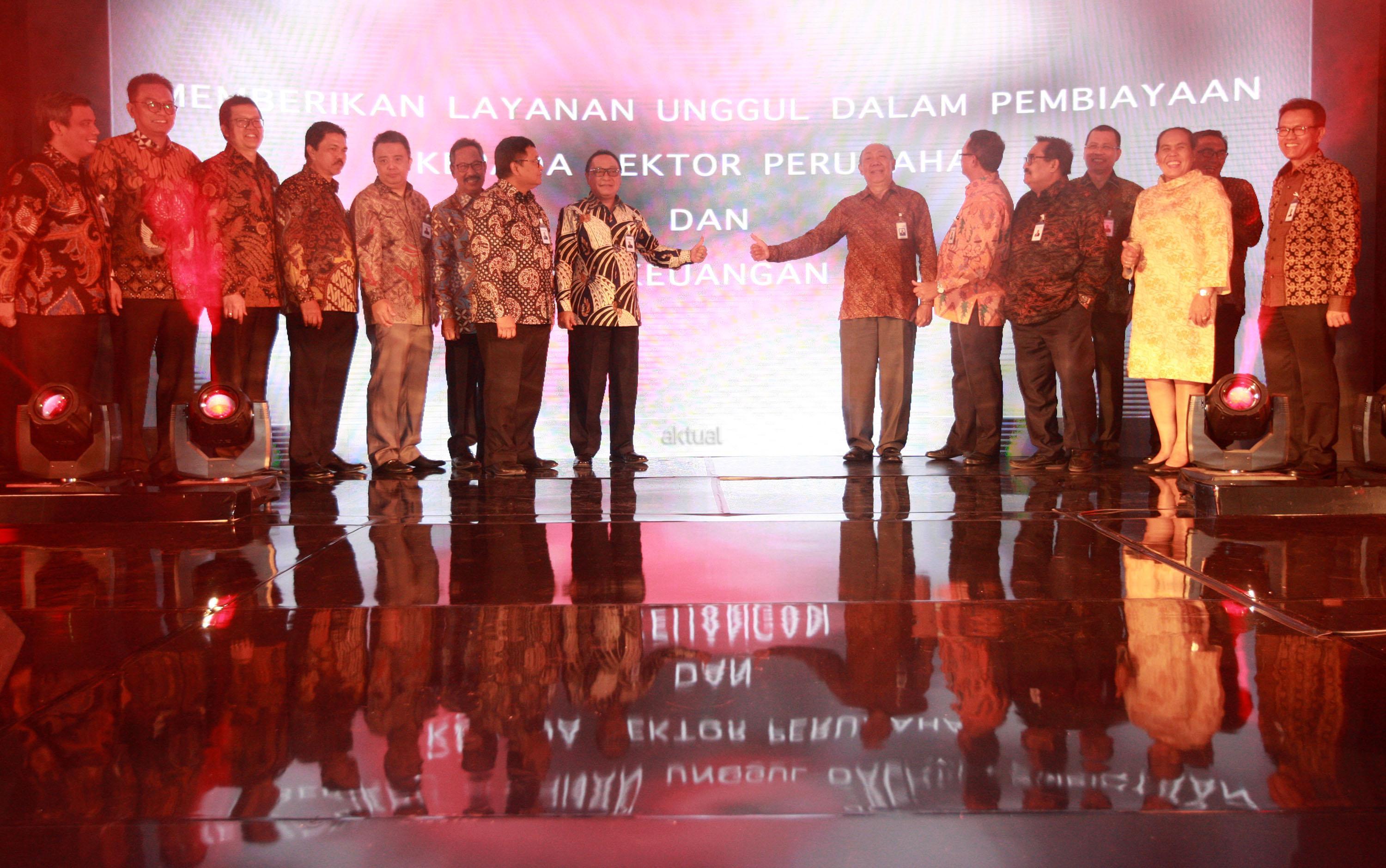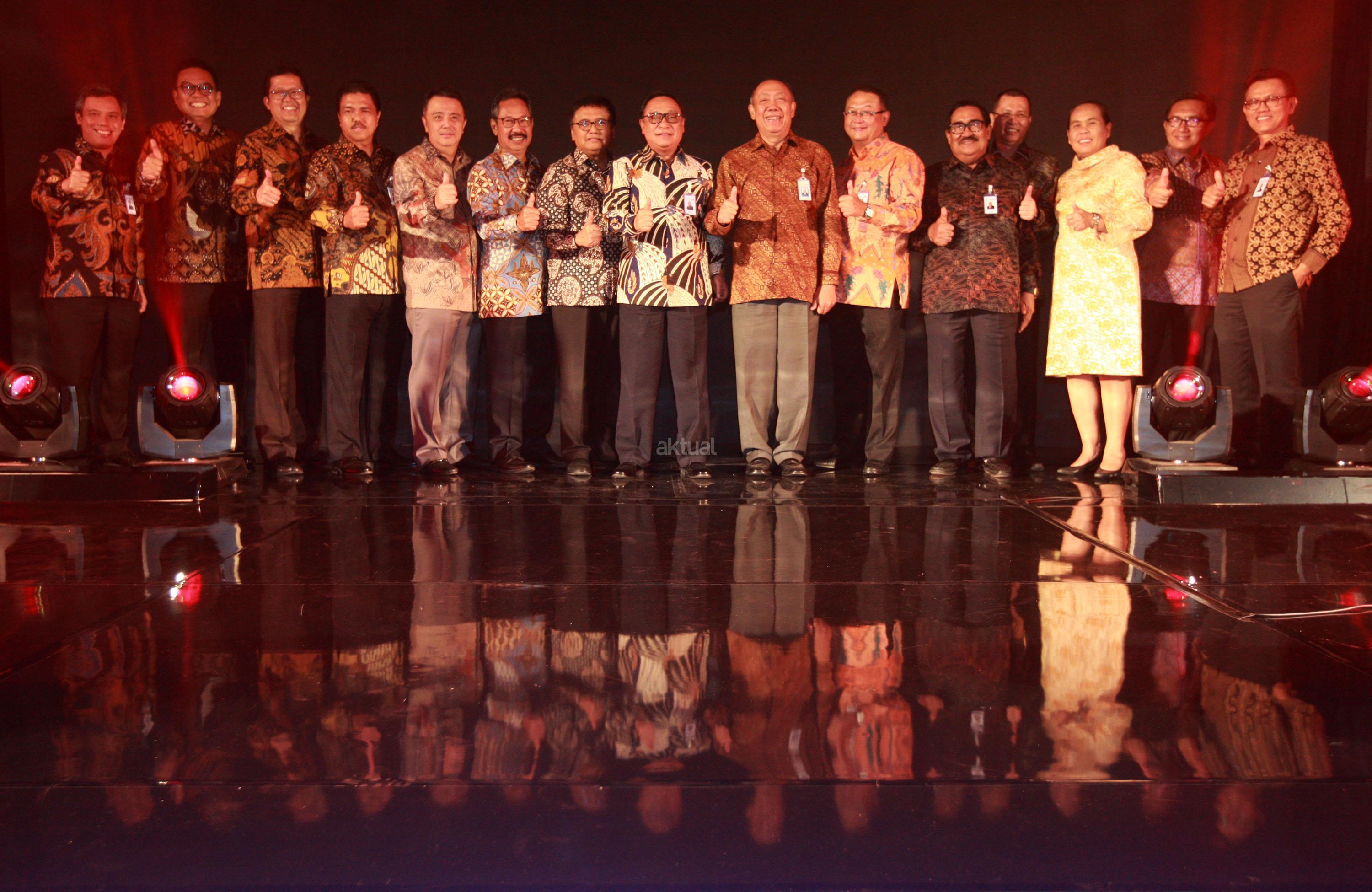 Direktur Utama PT Bank Tabungan Negara (Persero) Tbk Maryono (tengah), Komisaris Utama Bank BTN I Wayan Agus Mertayasa (ketujuh kanan) dan Direktur Bank BTN Oni Febriarto Rahardjo (kelima kiri), Iman Nugroho Soeko (ketujuh kiri), Nixon LP Napitupulu (kiri), Adi Setianto (keenam kiri), Budi Satrio (keempat kiri), R. Mahelan Prabantarikso (ketiga kiri), Dasuki Amsir (kedua kiri), komisaris BTN Lucky Fathul Aziz Hadibrata (keenam kanan) dan jajaran Komisaris Bank BTN mengacungkan jempol saat meresmikan peluncuran visi dan misi terbaru Bank BTN di Jakarta, Rabu (3/1/2018). Adapun Visi baru BTN adalah “Terdepan dan terpercaya dalam memfasilitasi sektor perumahan dan jasa layanan keuangan keluarga”. Peluncuran visi misi terbaru mengusung dua tema besar terkait peran dan tanggung jawab BTN sebagai akselator dan integrator pengembangan pasar perumahan Nasional dan sebagai Bank perumahan terpercaya yang melayani kebutuhan finansial individu dan keluarga. AKTUAL/Eko S Hilman