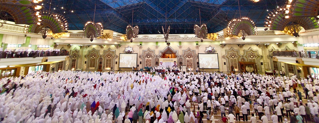 Presiden PKS, Mohamad Sohibul Iman memberikan tausyiah saat acara Peringatan Maulid Nabi Muhammad SAW di Jakarta Islamic Center, Sabtu (13/1). Sohibul Iman menyampaikan peringatan Maulid Nabi Muhammad SAW harus memberikan dampak bagi umat dan manusia secara keseluruhan, juga mengajak jamaah untuk menyebarkan nilai-nilai Islam dalam  kehidupan serta menjaga persatuan dan kesatuan ummat. AKTUAL/HO