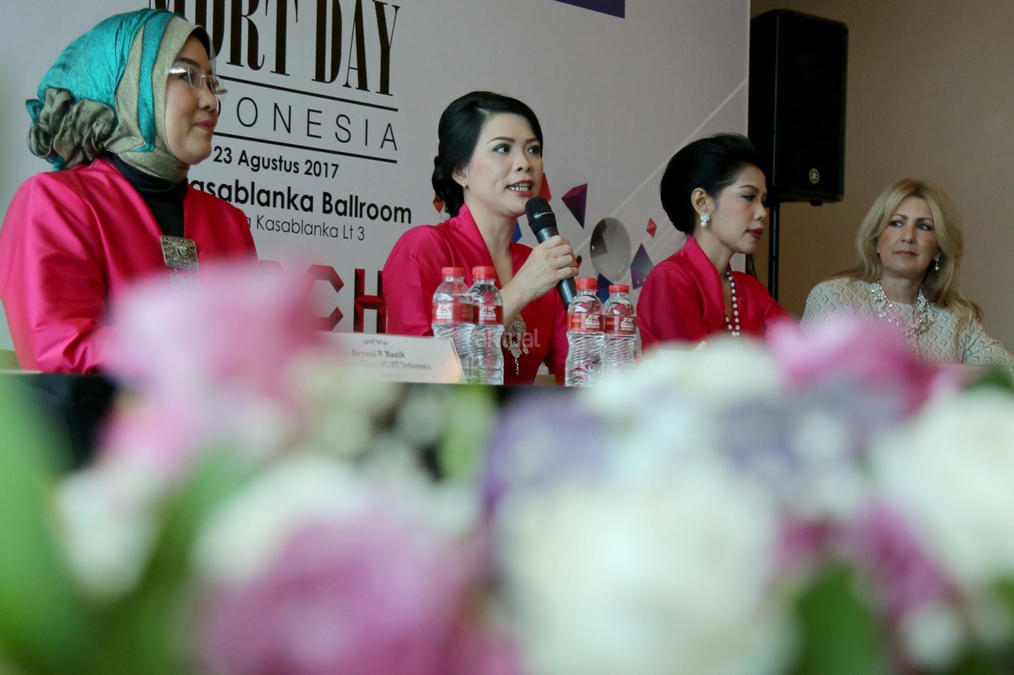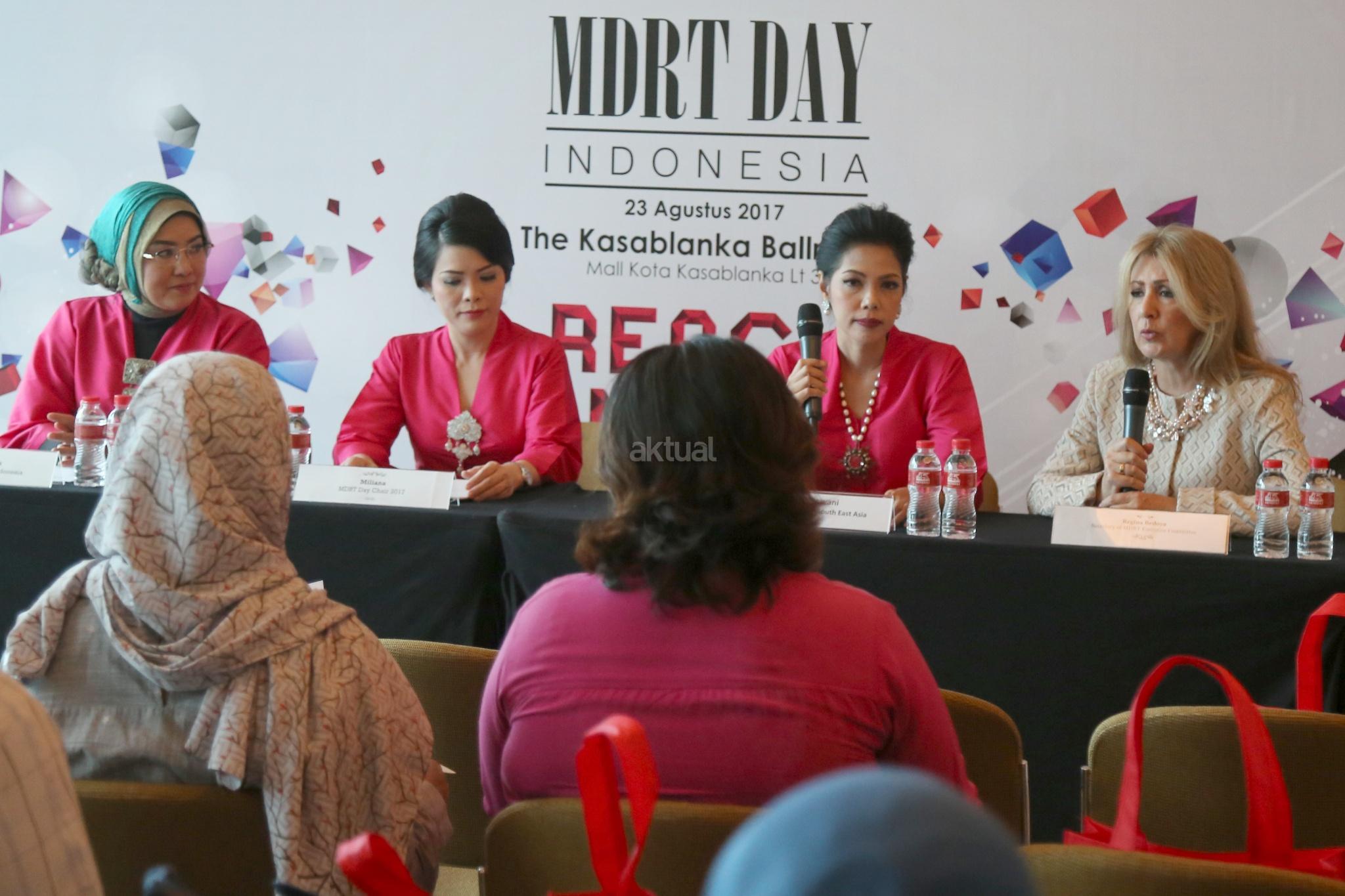 Dari kiri ke kanan, Country Chair Milion Dollar Round Table Aryani Razik, Chairman of MDRT Day 2017 Miliana, Zone Chair MDRT South East Asia Lucy Dewani dan Exacutive Committee MDRT Global Regina Bedoya berbincang saat digelarnya seminar MDRT Day di Kasablanka Ballroom, Mall Kota Kasablanka, Jakarta, Rabu (23/8). Seminar yang mengambil tema “Reach New Heights” ini dengan tujuan memberikan wawasan dan berbagi kisah inspiratif di kalangan agen asuransi jiwa. Selain itu para pembicara lokal maupun mancanegara berbagi cara atau tips bagaimana mencapai level tinggi. AKTUAL/Tino Oktaviano