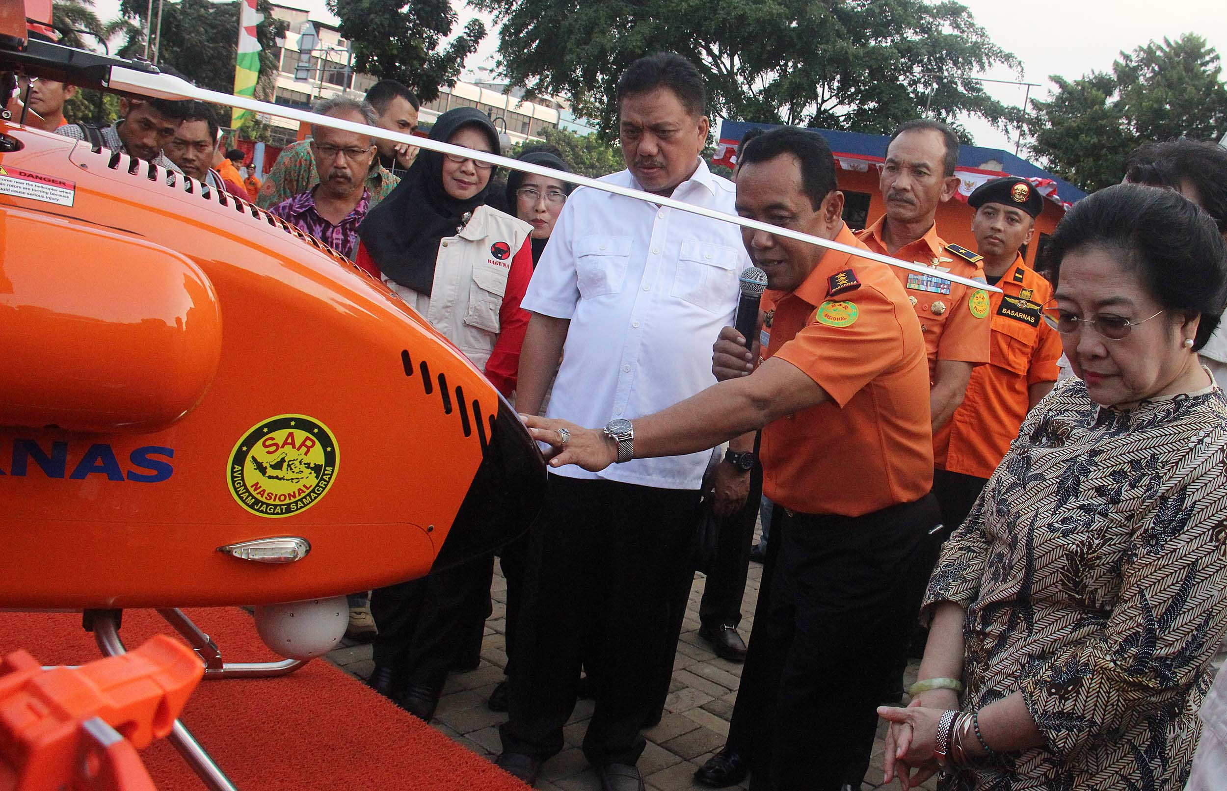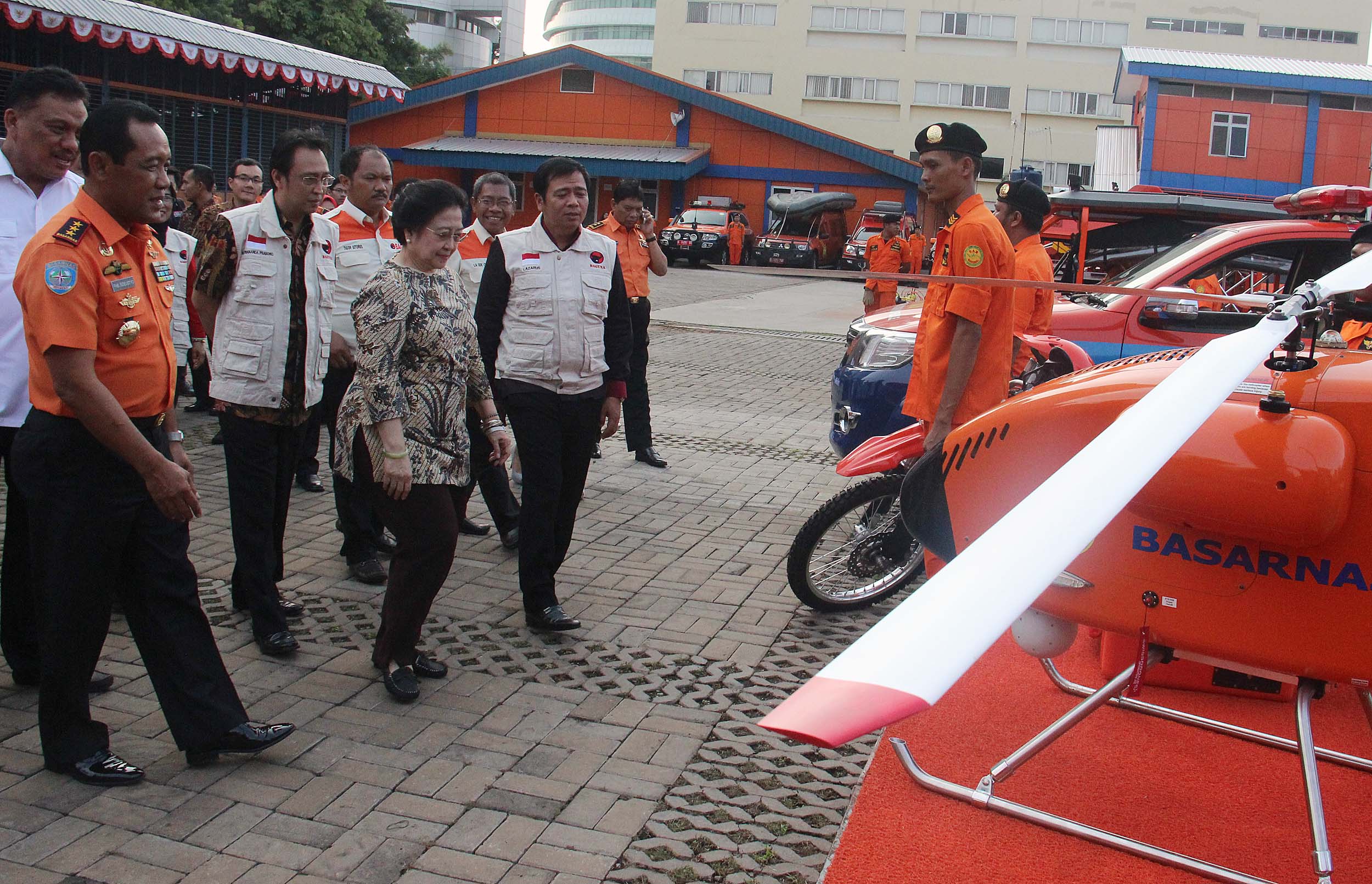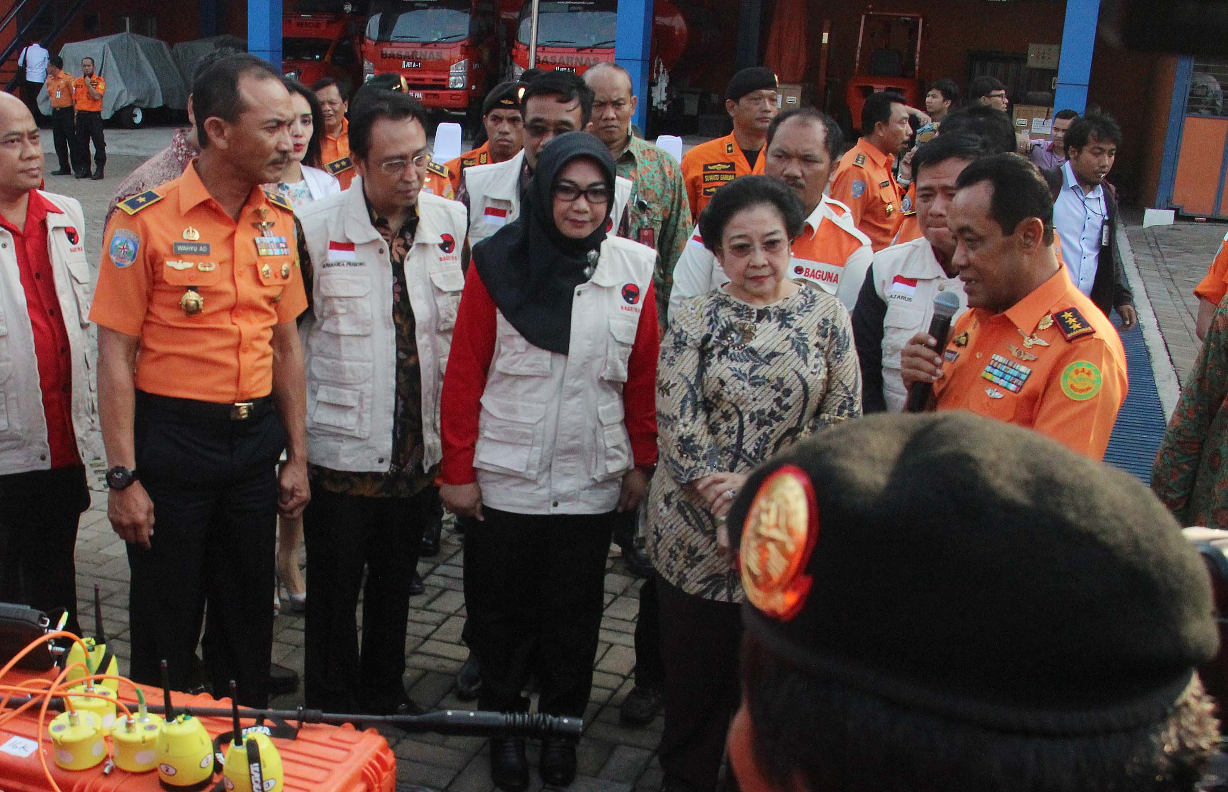 Ketum PDIP Megawati Soekarno Putri menyimak penjelasan Kepala Basarnas saat meninjau perlengkapan Basarnas di Jakarta, Rabu (24/8/2016). Nota kesepahaman tersebut meliputi pendidikan dan pelatihan SAR, latihan operasi SAR dan pelaksanaan operasi SAR, dalam waktu dekat juga akan segera ditindaklanjuti dengan kegiatan yang lebih kongrit yaitu pelatihan SAR. AKTUAL/MUNZIR
