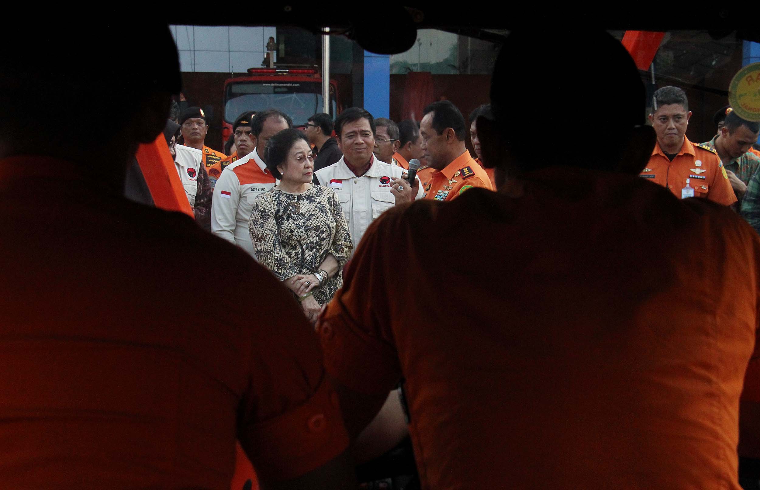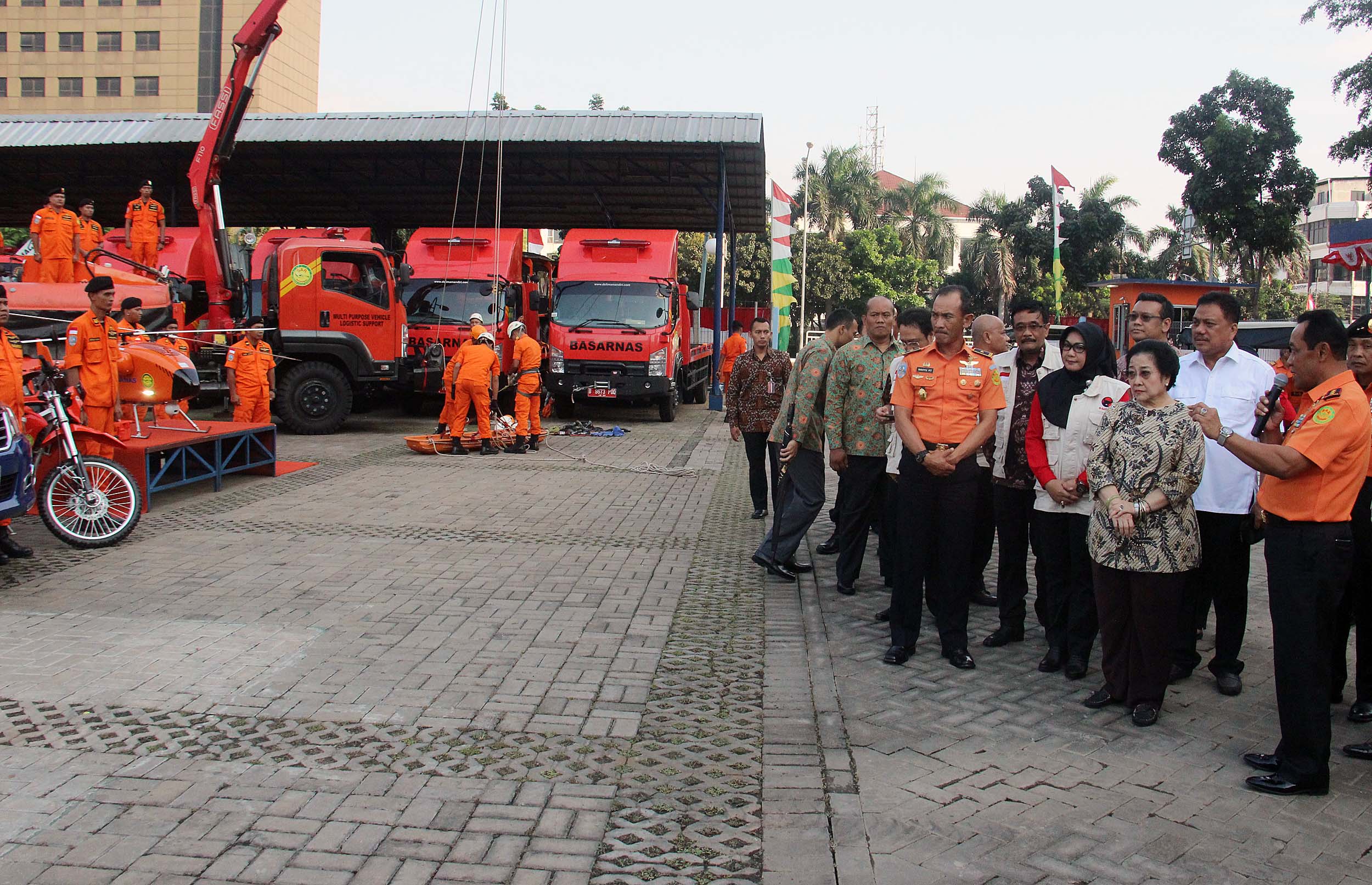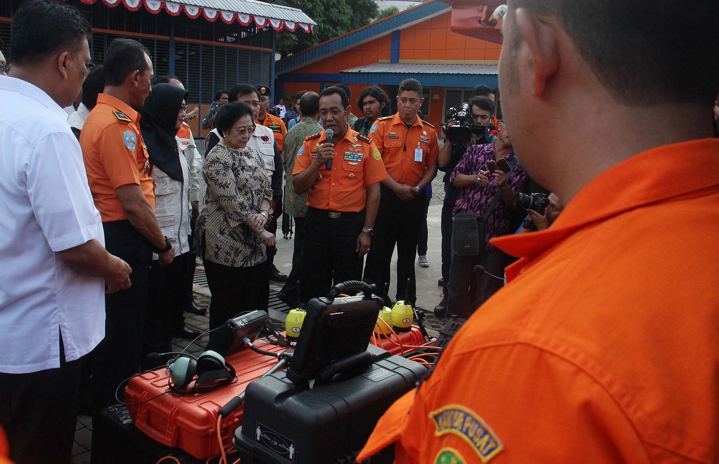 Ketum PDIP Megawati Soekarno Putri menyimak penjelasan Kepala Basarnas saat meninjau perlengkapan Basarnas di Jakarta, Rabu (24/8/2016). Nota kesepahaman tersebut meliputi pendidikan dan pelatihan SAR, latihan operasi SAR dan pelaksanaan operasi SAR, dalam waktu dekat juga akan segera ditindaklanjuti dengan kegiatan yang lebih kongrit yaitu pelatihan SAR. AKTUAL/MUNZIR