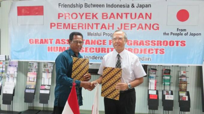 Mou pemberian hibah itu ditandatangani oleh Hirofumi Morikawa dan Ketua Yayasan Al-Ikhlas Mukaromah, Ngatiran di Medan, Sumut, Kamis (9/3).