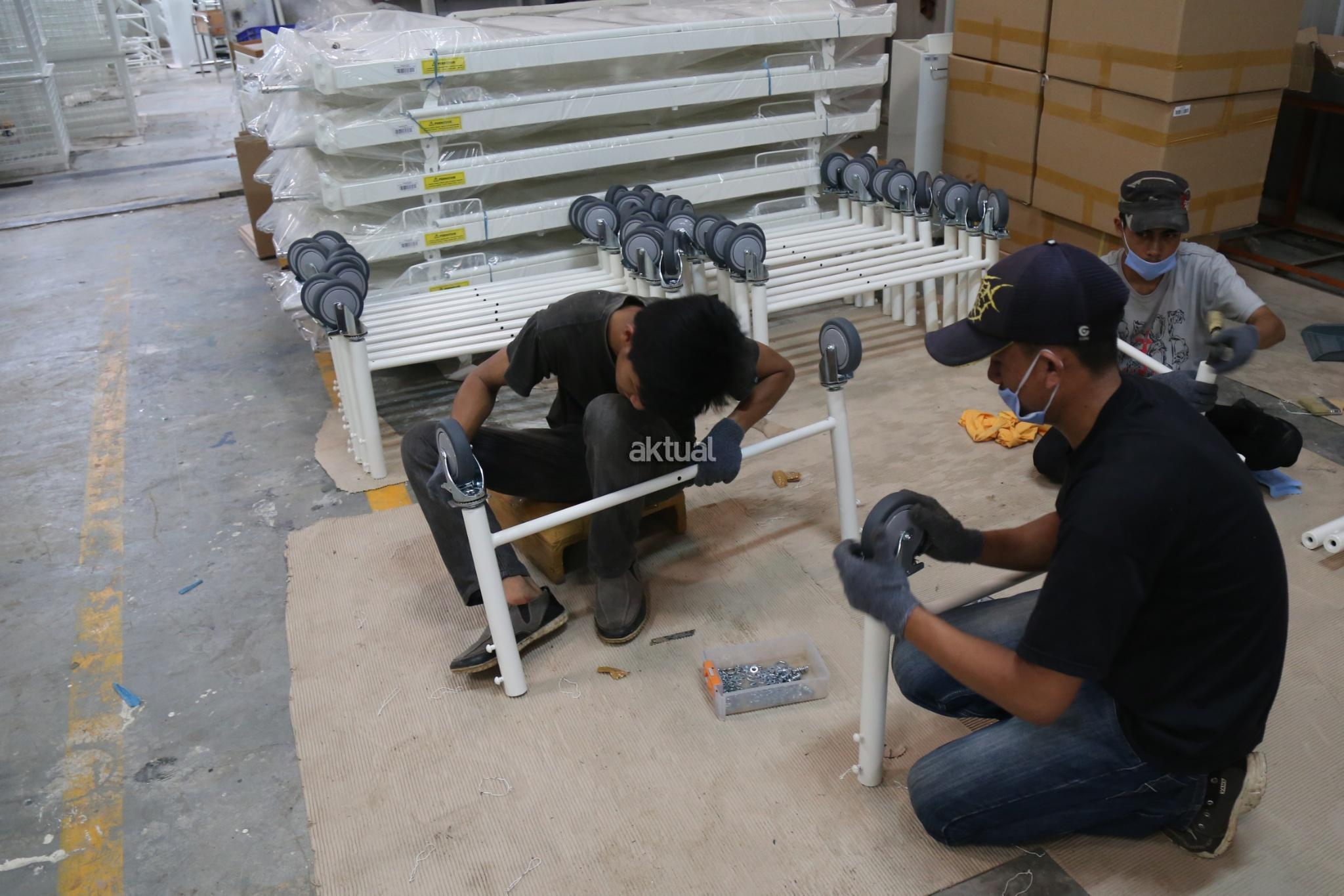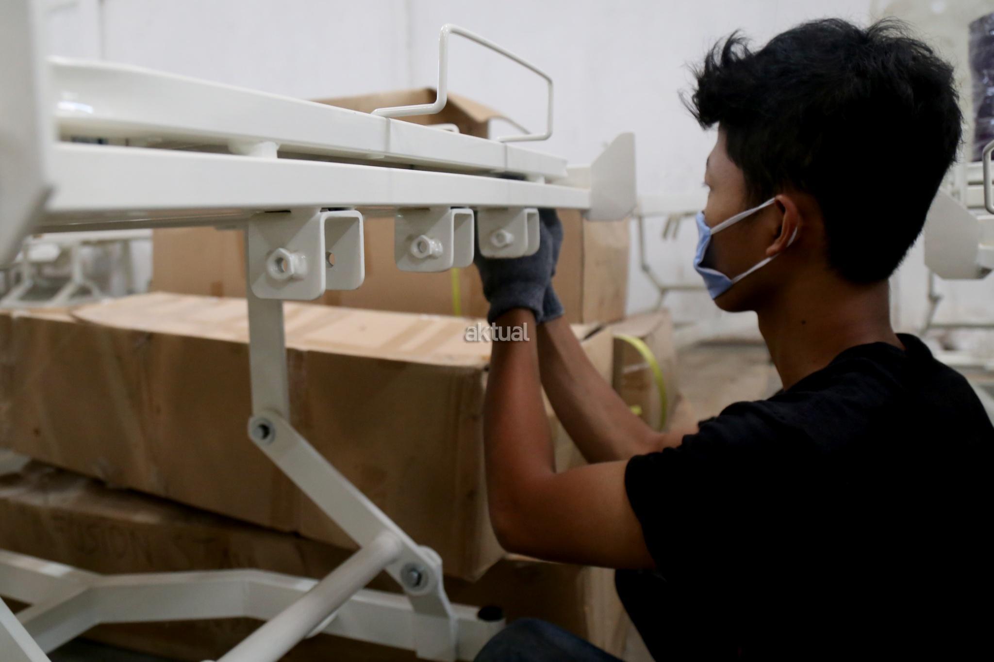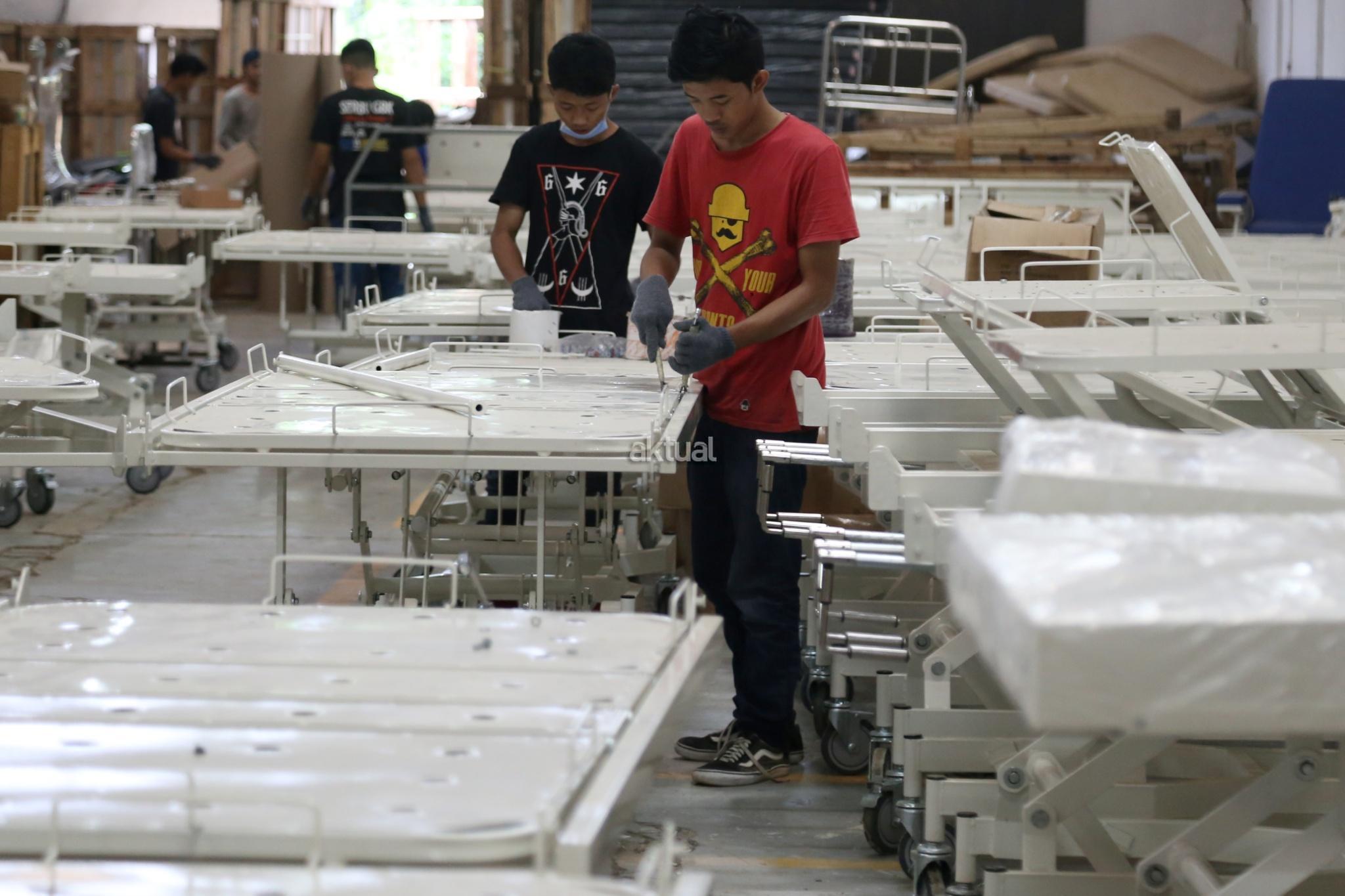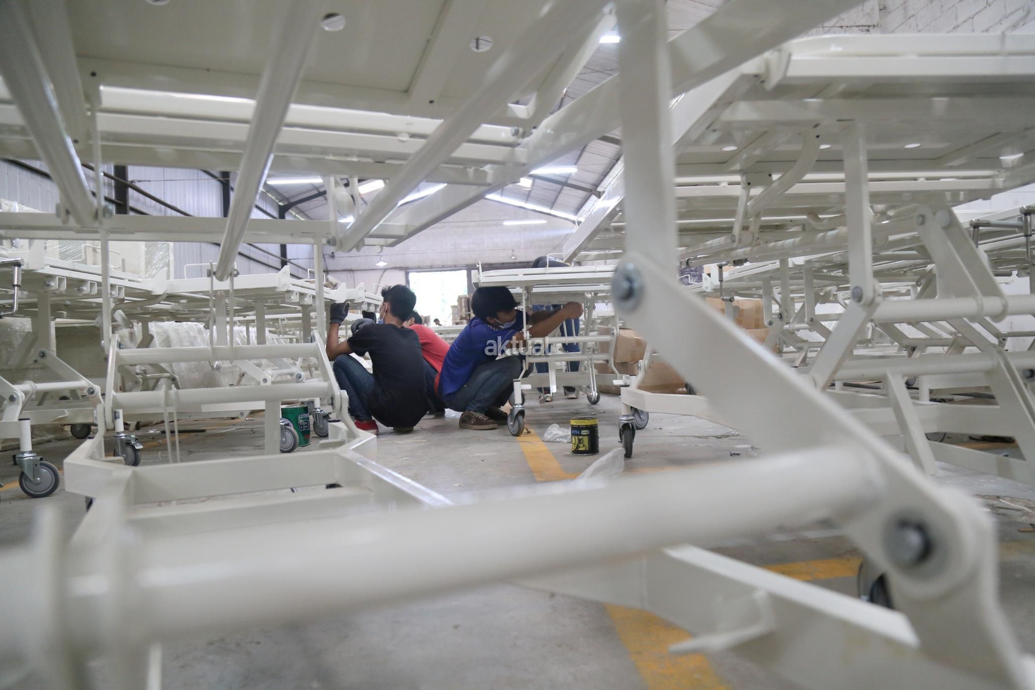 Pekerja menyelesaikan pembuatan alat rumah sakit di pabrik CV Nuri_Teknik di Jalan Raya Sadamaya, Desa Peuteuy Condong, Kecamatan, Cibeber, Kabupaten Cianjur, Jawa Barat, Rabu (30/11/2016). Nuritek mampu membuat beragam produk. Mulai dari jenis tempat tidur, meja operasi elektrik, ginecolog electric, meja periksa, trolleymakan dan lampu periksa. Tahun 2016 Nuritek memproduksi 24 ribu unit alat rumah sakit san kesehatan untuk pasar lokal. Untuk 2017 Nuritek menargetkan produksi alat kesehatan 100 persen sebanyak 50 ribu dari total enam pabrik. AKTUAL/Tino Oktaviano