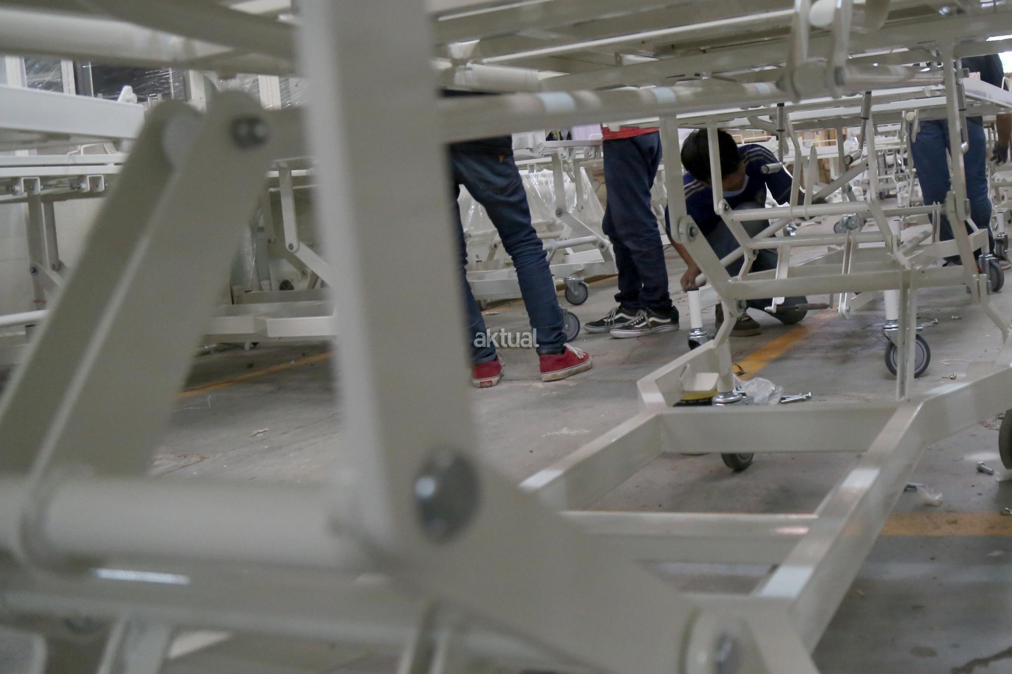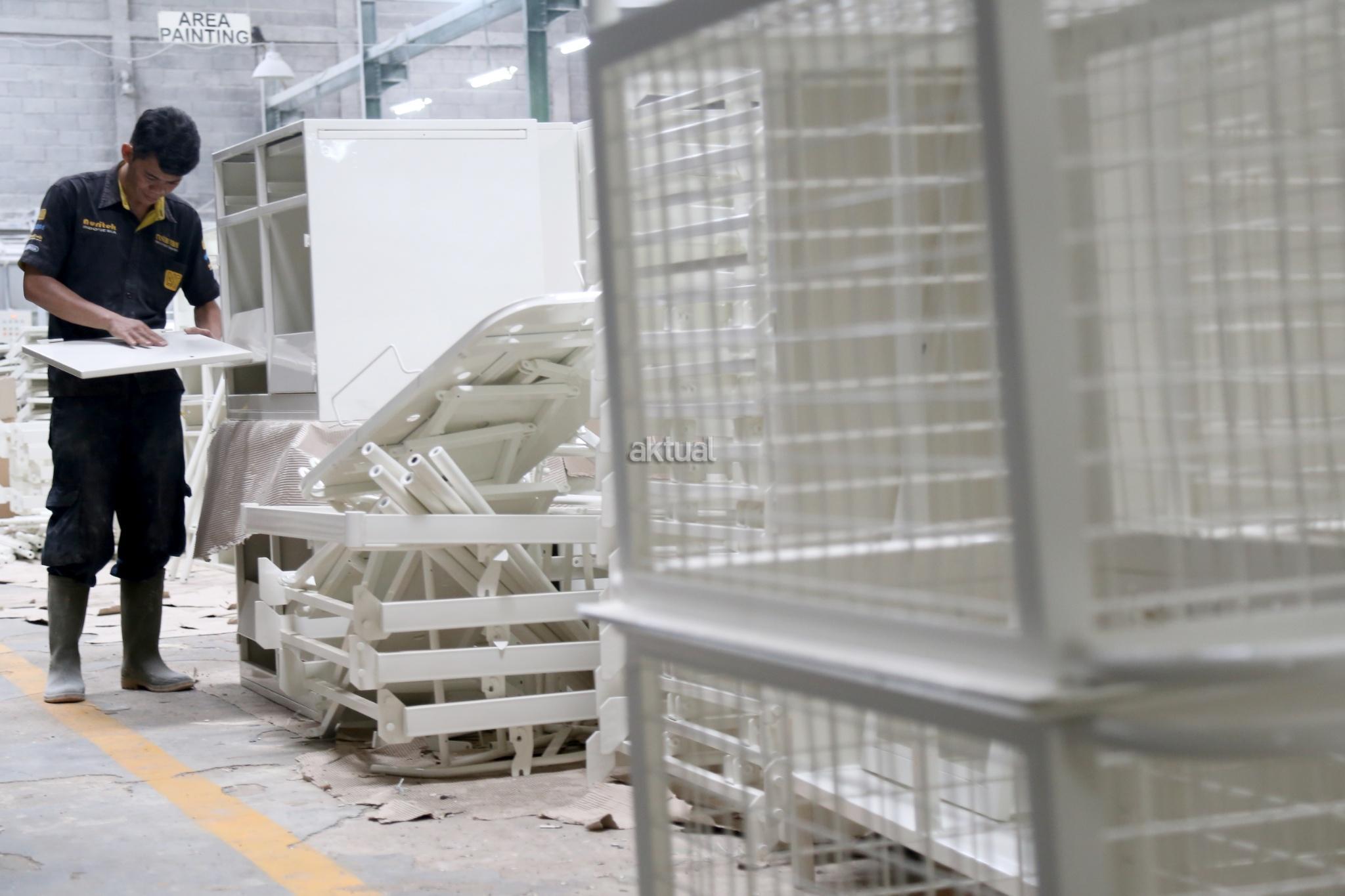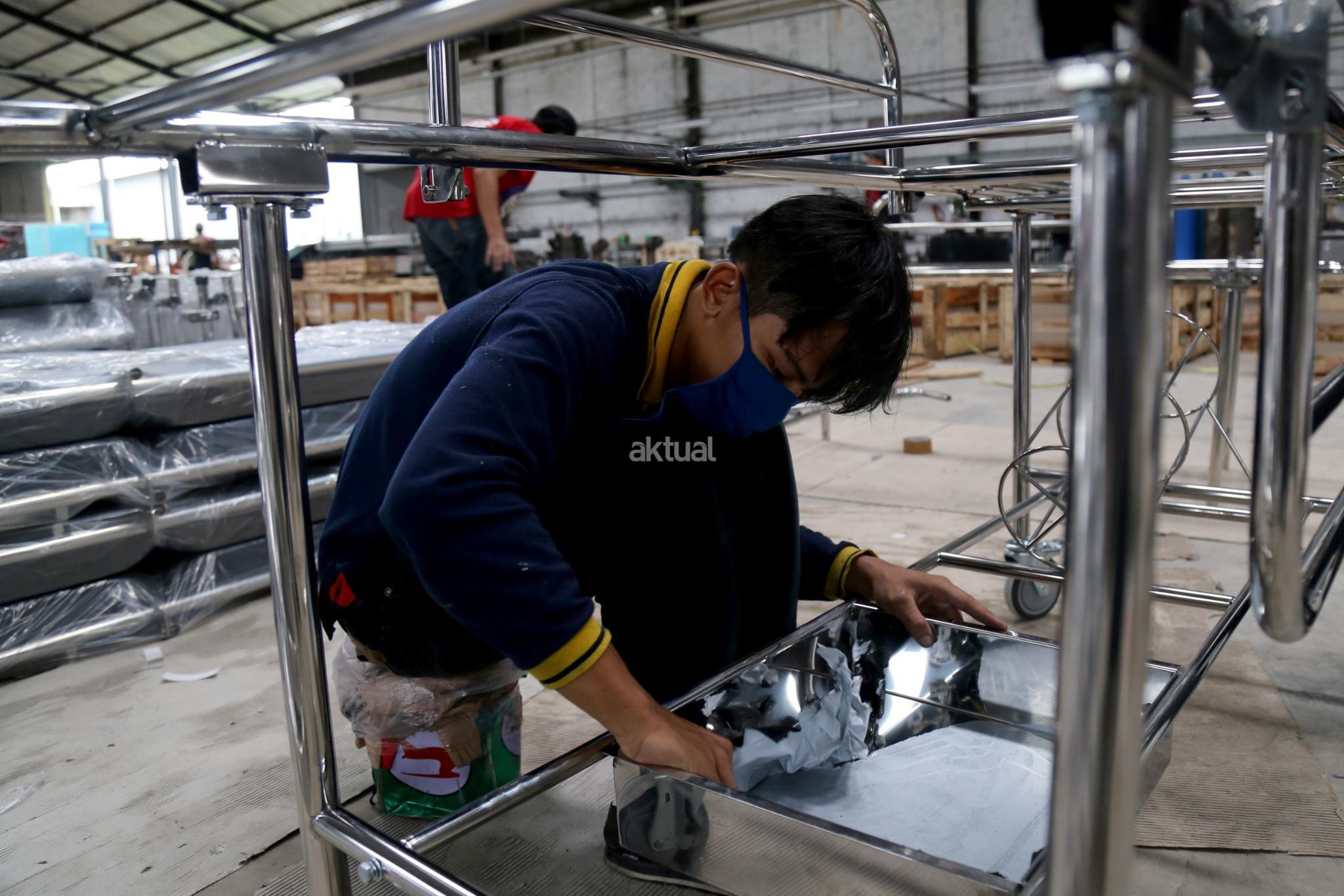 Pekerja menyelesaikan pembuatan alat rumah sakit di pabrik CV Nuri_Teknik di Jalan Raya Sadamaya, Desa Peuteuy Condong, Kecamatan, Cibeber, Kabupaten Cianjur, Jawa Barat, Rabu (30/11/2016). Nuritek mampu membuat beragam produk. Mulai dari jenis tempat tidur, meja operasi elektrik, ginecolog electric, meja periksa, trolleymakan dan lampu periksa. Tahun 2016 Nuritek memproduksi 24 ribu unit alat rumah sakit san kesehatan untuk pasar lokal. Untuk 2017 Nuritek menargetkan produksi alat kesehatan 100 persen sebanyak 50 ribu dari total enam pabrik. AKTUAL/Tino Oktaviano