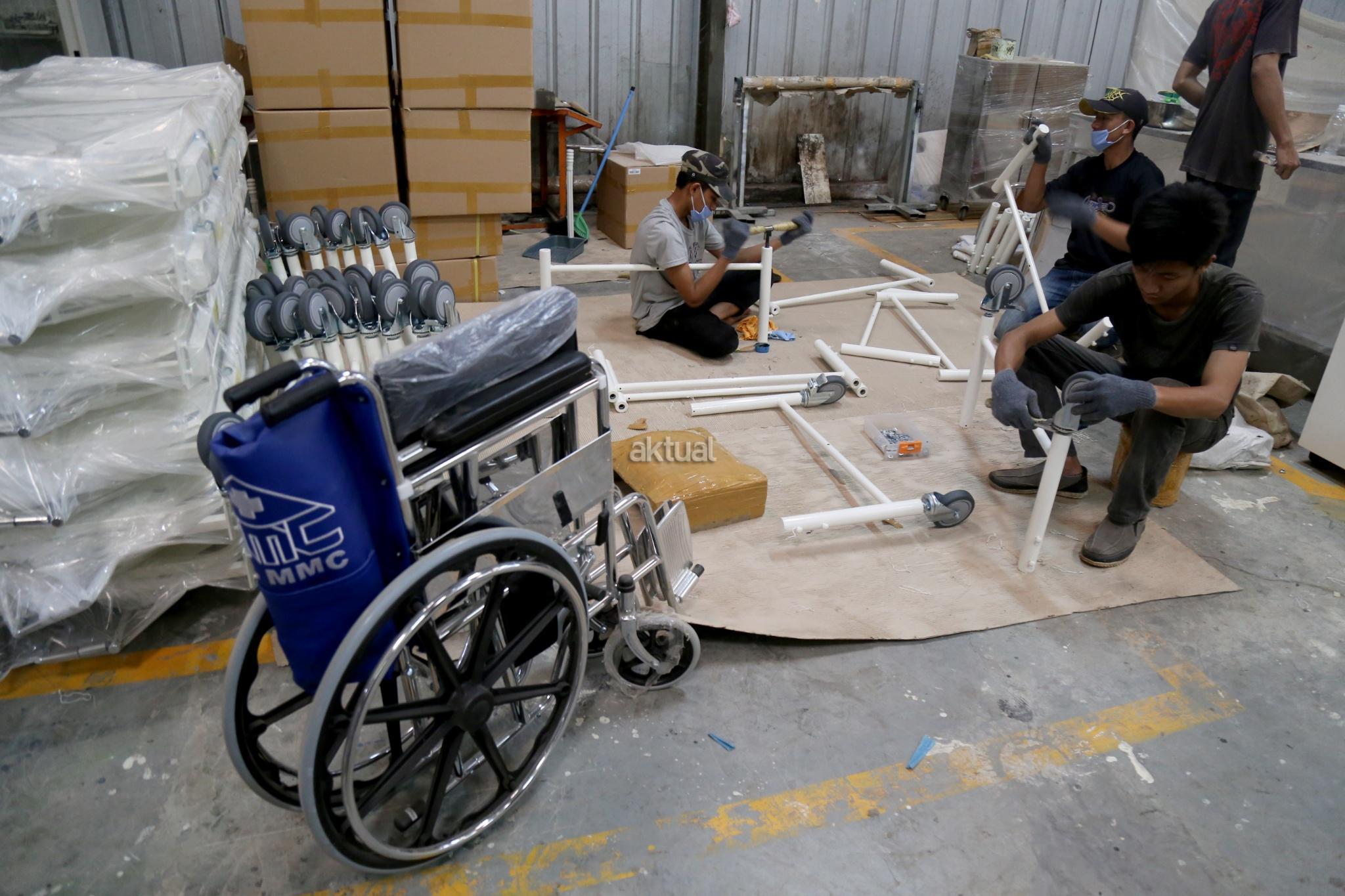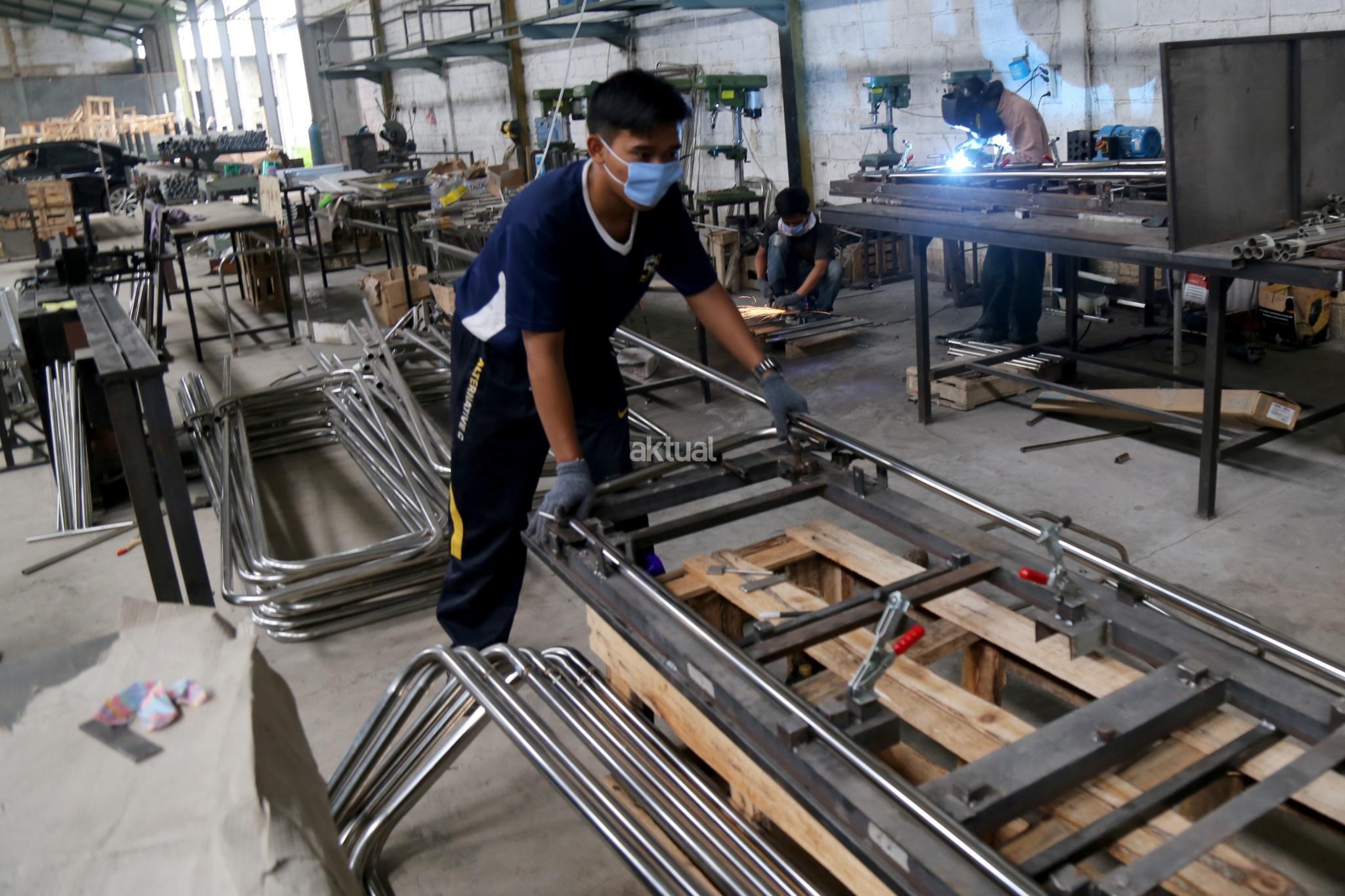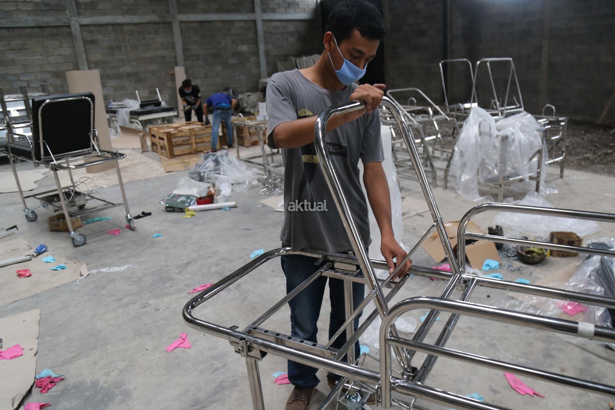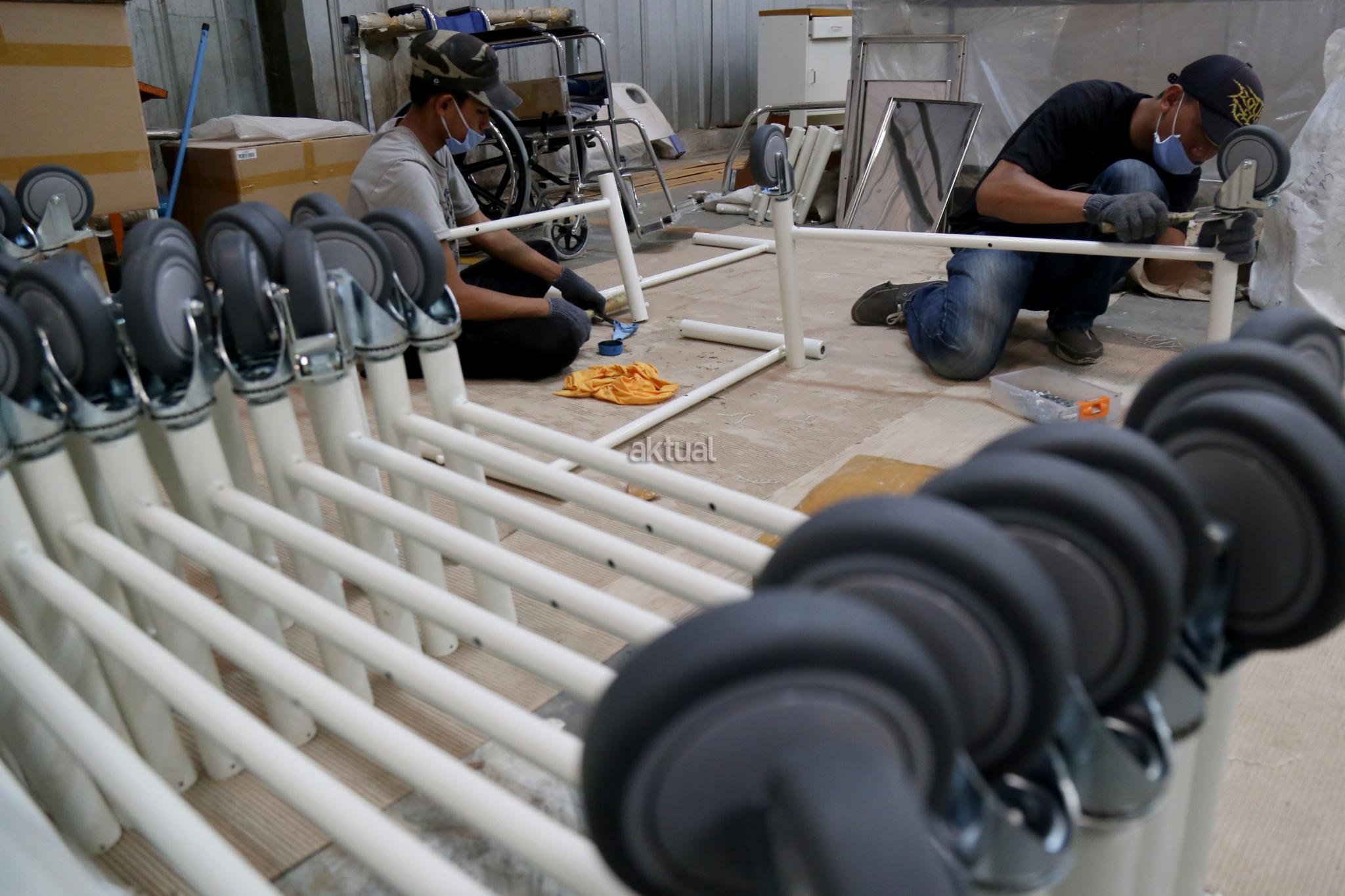 Pekerja menyelesaikan pembuatan alat rumah sakit di pabrik CV Nuri_Teknik di Jalan Raya Sadamaya, Desa Peuteuy Condong, Kecamatan, Cibeber, Kabupaten Cianjur, Jawa Barat, Rabu (30/11/2016). Nuritek mampu membuat beragam produk. Mulai dari jenis tempat tidur, meja operasi elektrik, ginecolog electric, meja periksa, trolleymakan dan lampu periksa. Tahun 2016 Nuritek memproduksi 24 ribu unit alat rumah sakit san kesehatan untuk pasar lokal. Untuk 2017 Nuritek menargetkan produksi alat kesehatan 100 persen sebanyak 50 ribu dari total enam pabrik. AKTUAL/Tino Oktaviano