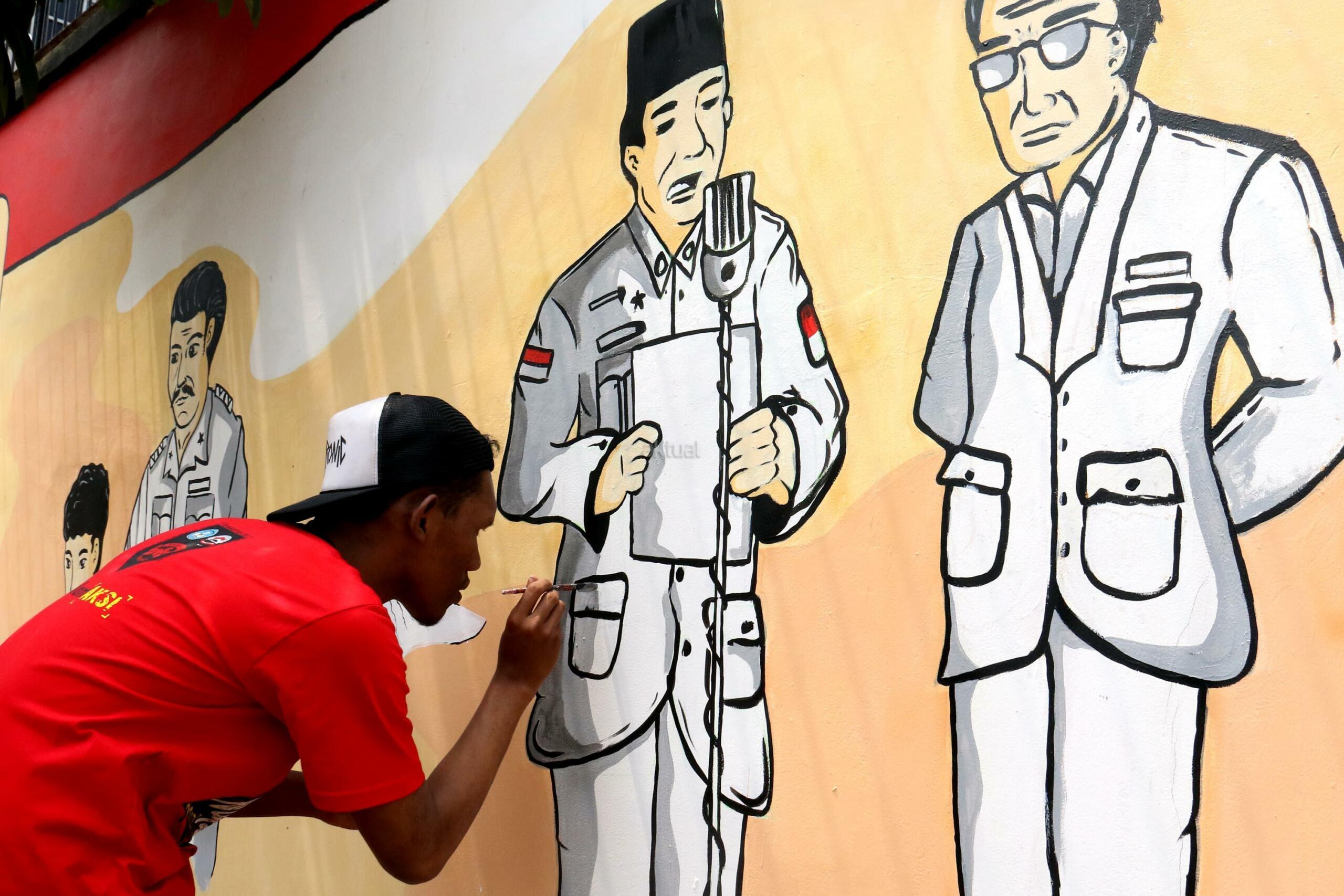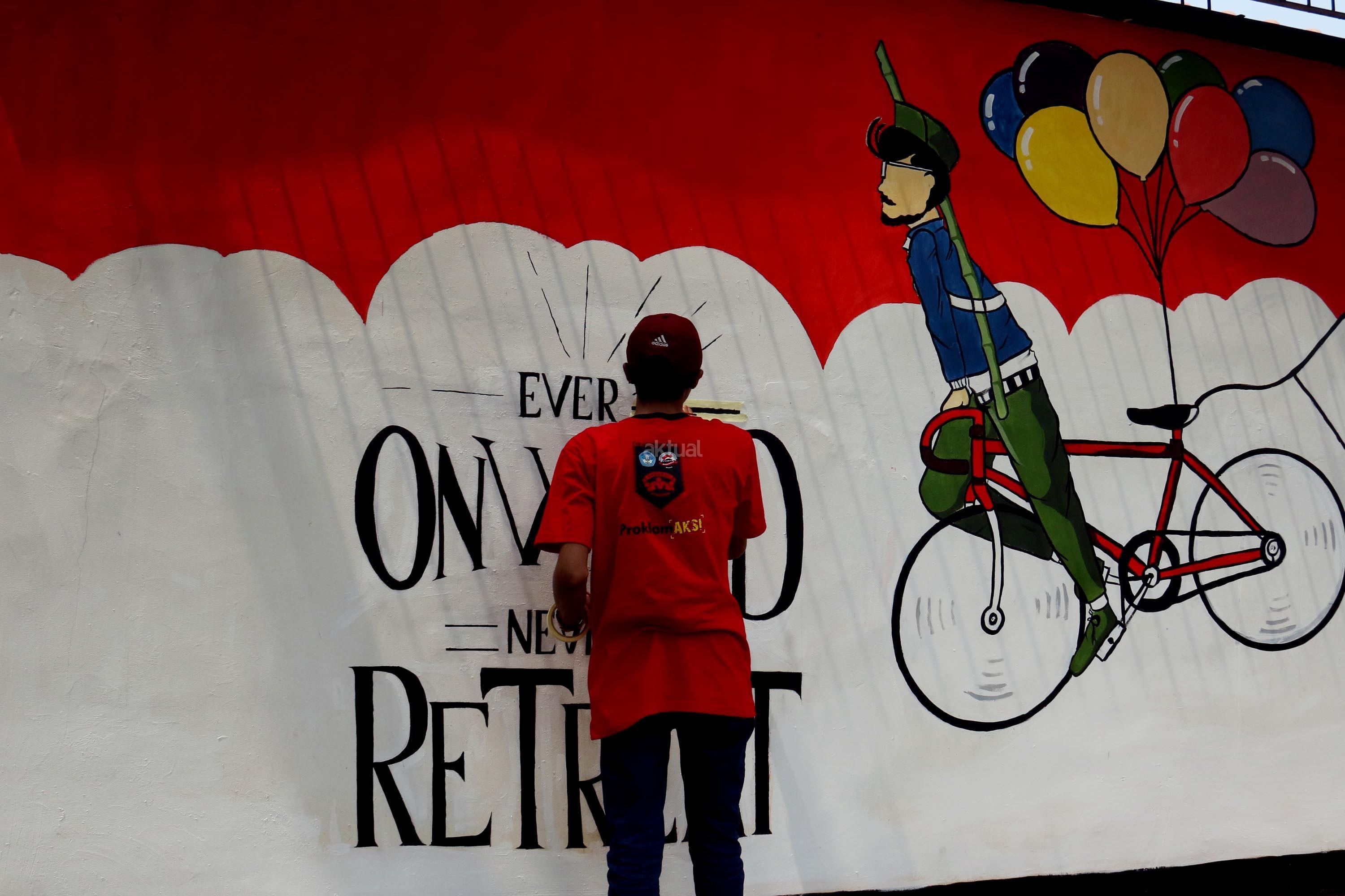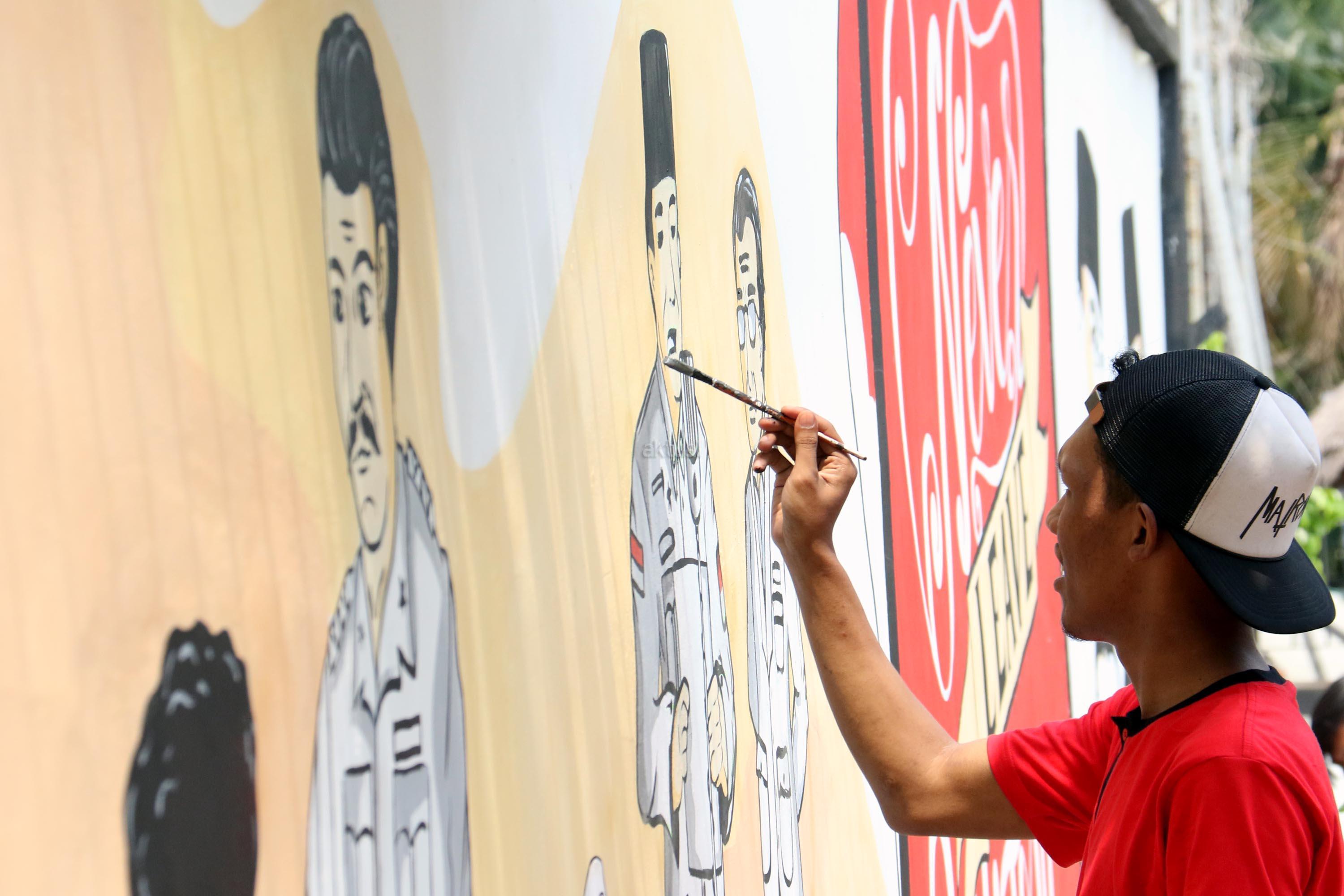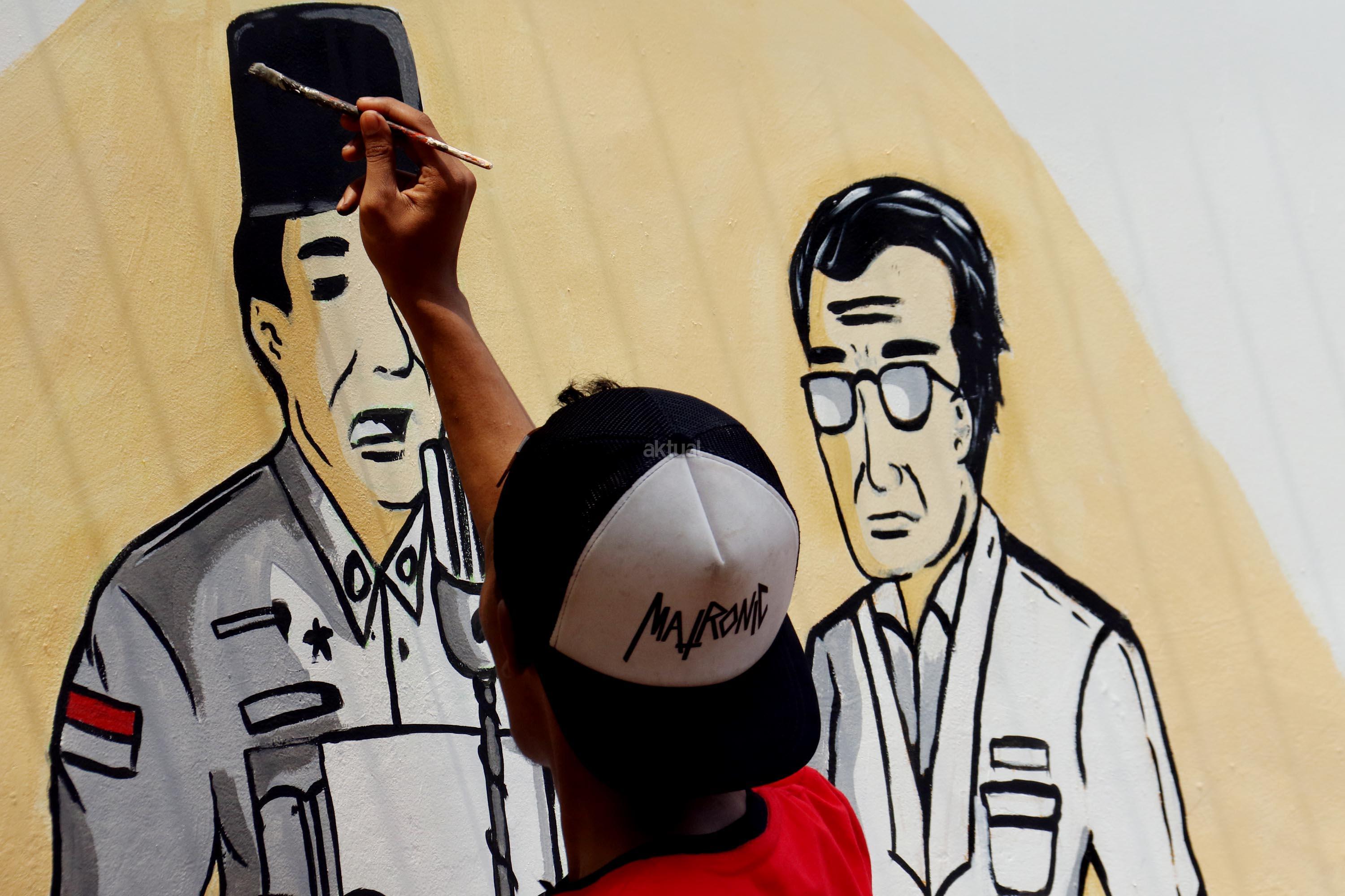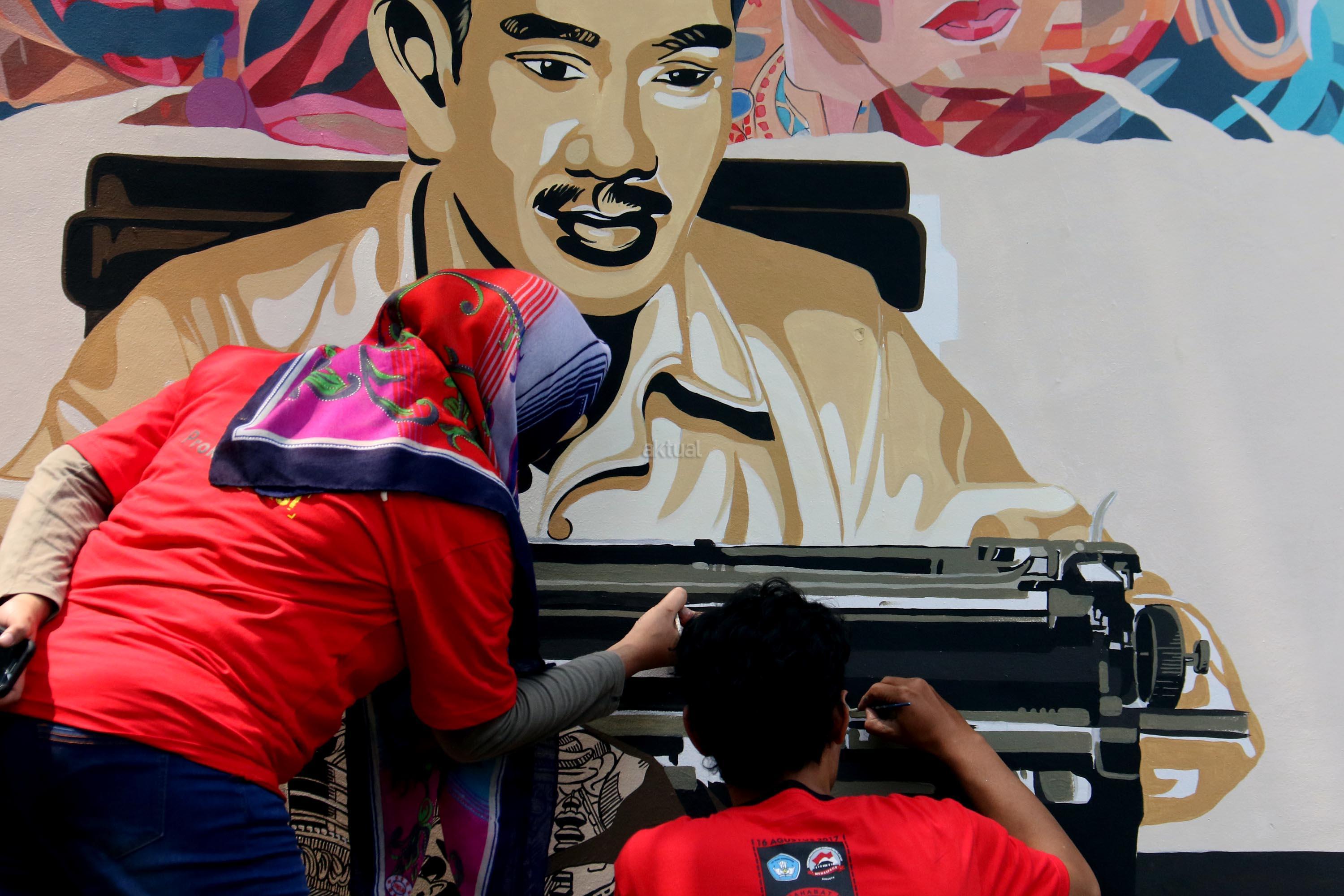 Sejumlah pemuda melukis mural wajah para founding father Indonesia di halaman belakang museum perumusan naskah Proklamasi, Jakarta, Rabu (16/8/2017). Melukis mural para founding father menjelang HUT Kemerdekan RI yang ke 72 tahunSejumlah pemuda melukis mural wajah para founding father Indonesia di halaman belakang museum perumusan naskah Proklamasi, Jakarta, Rabu (16/8/2017). Melukis mural para founding father menjelang HUT Kemerdekan RI yang ke 72 tahun. AKTUAL/Munzir