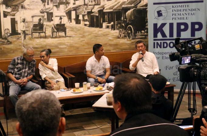 Kiri-kanan; Anggota DPR RI Fraksi PDIP Arif Wibowo, Wakil Sekjen KIPP Jojo Rohi, Modertor Andrian Habibi, Presidium KIPP Kaka Suminta saat diskusi Komite Independen Pemantau Pemilu (KIPP) di Jakarta, Minggu (8/1/2017). Diskusi Komite Independen Pemantau Pemilu (KIPP) yang bertemakan “Menakar Kinerja Pansel Calon Penyelenggara Pemilu”.