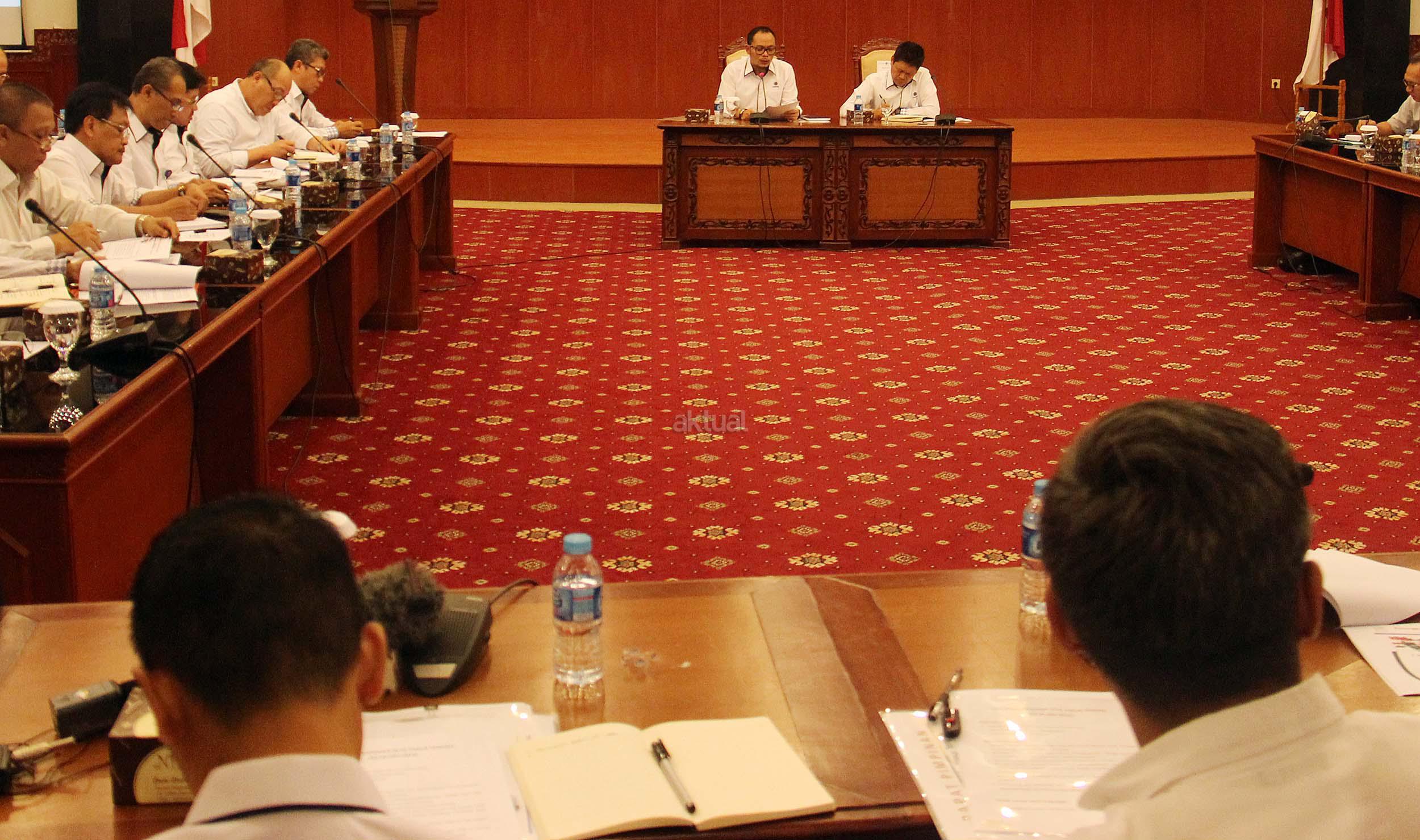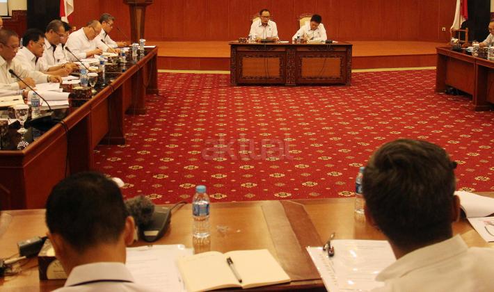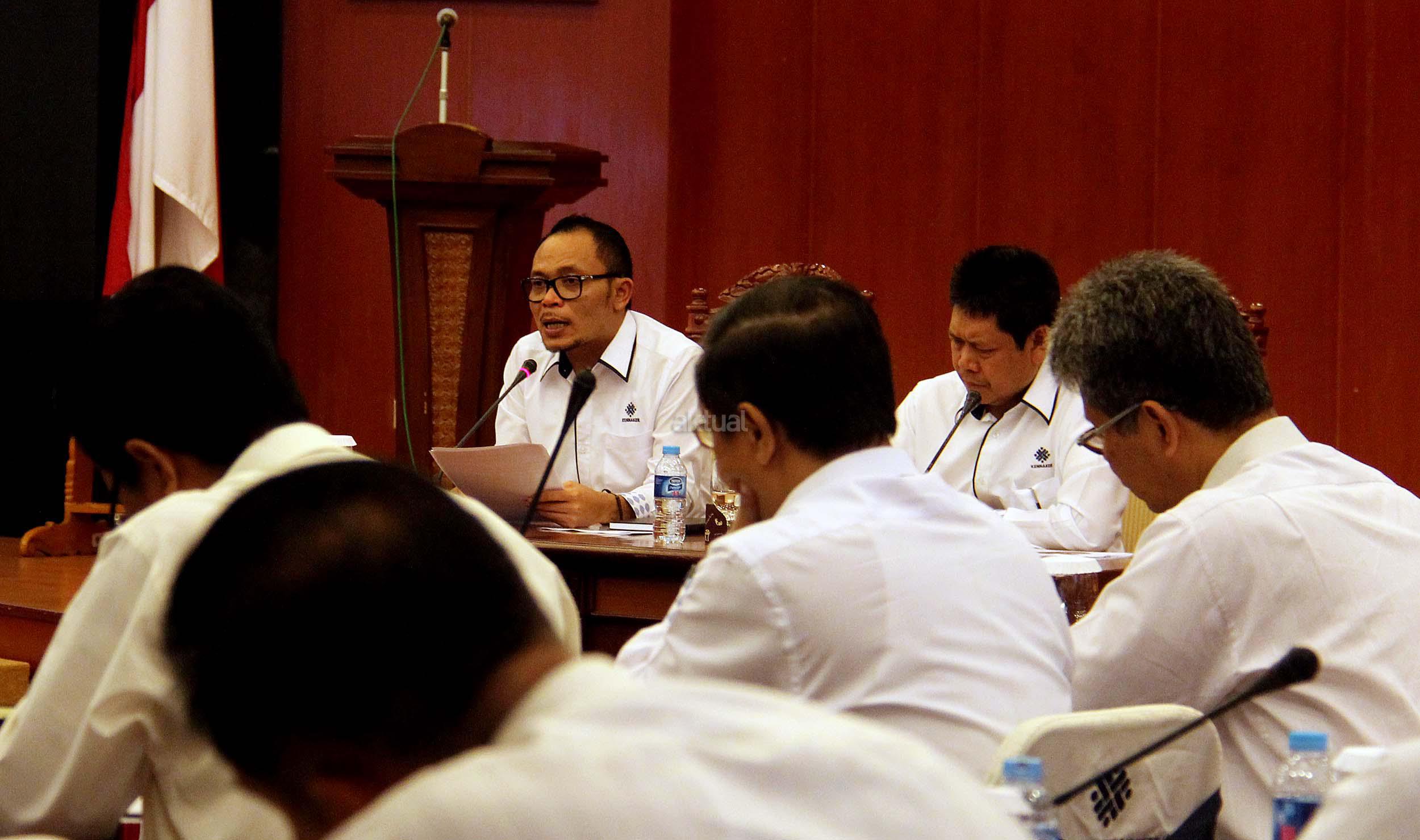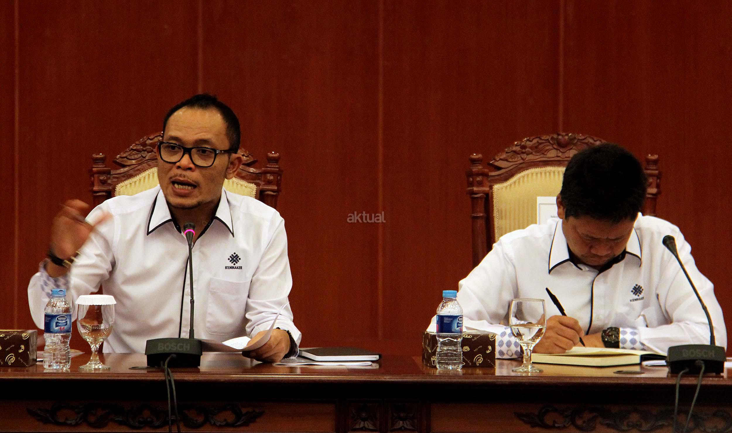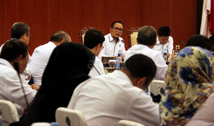Menteri Ketenagakerjaan Muhammad Hanif Dhakiri, bersama Sekjen Kemnaker Abdul Wahab Bangkona, memimpin rapat pimpinan di Kantor Kementerian Ketenagakerjaan di Jakarta, Rabu (1/6/2016). Rapat membahas tindak lanjut hasil lawatan Menteri ke Timur Tengah, Arab Saudi, Qatar dan Uni Emirat Arab.
