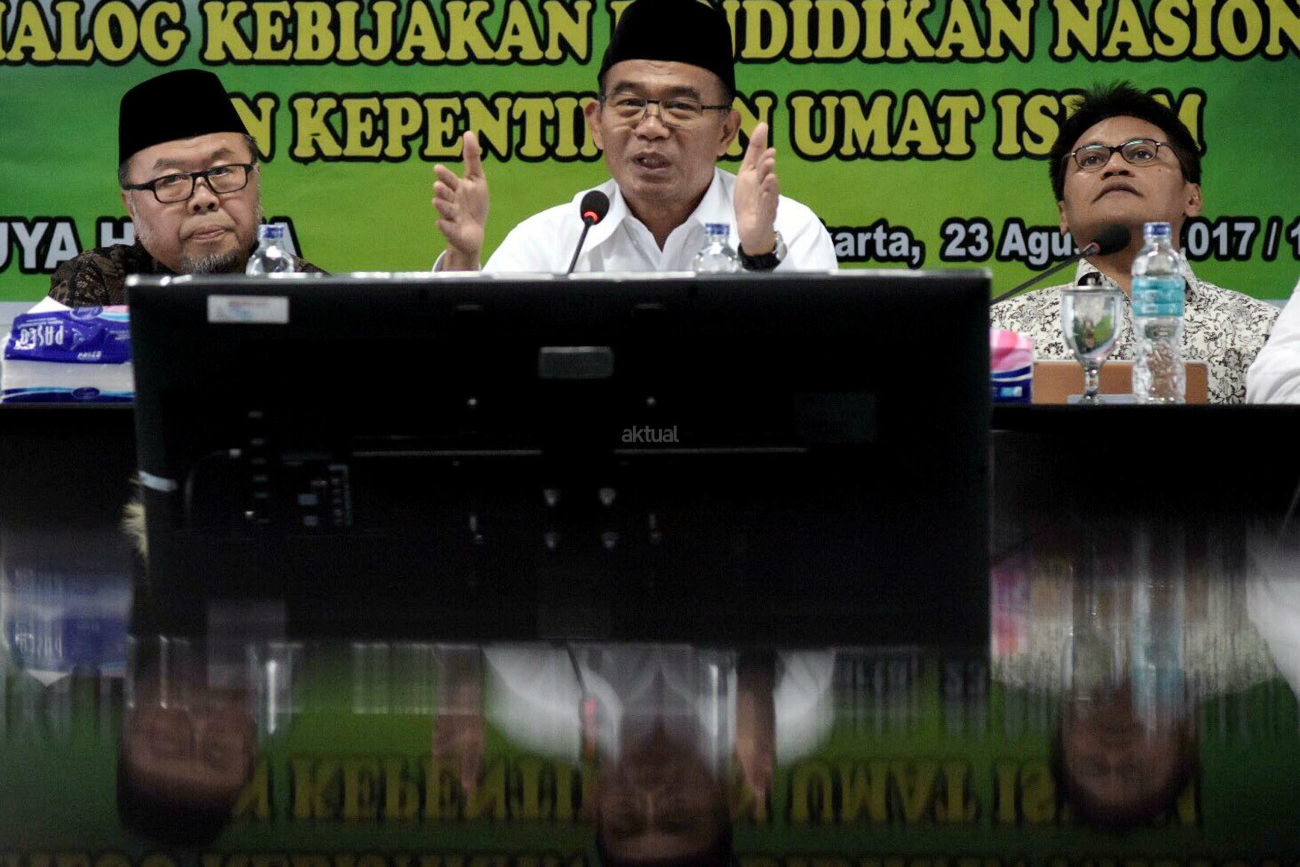 Mendikbud Muhadjir Effendy saat menghadiri Rapat Pleno ke-19 Dewan Pertimbangan MUI di Jakarta, Rabu (23/8/2017). Selain rapat juga dilakukan Dialog Kebijakan Pendidikan Nasional dan Kepentingan Umat Islam. AKTUAL/Munzir