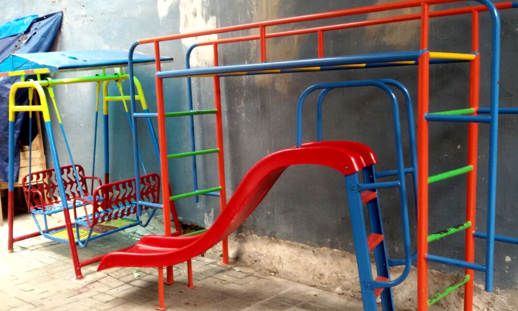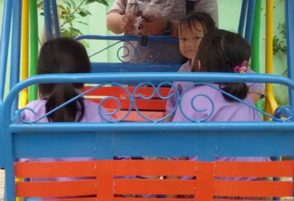 Anak-anak Bermain ayunan di tempat Pendidikan Anak Usia Dini (PAUD) Anggrek Koja, Jakarta Utara, Kamis (21/12/2017). Melaui program Corporate Social Responsibility (CSR), Jakarta International Container Terminal (JICT) memberikan bantuan fasilitas PAUD di Kecamatan Koja, Cilincing dan Tanjung Priok masing masing 5 PAUD. AKTUAL/HO