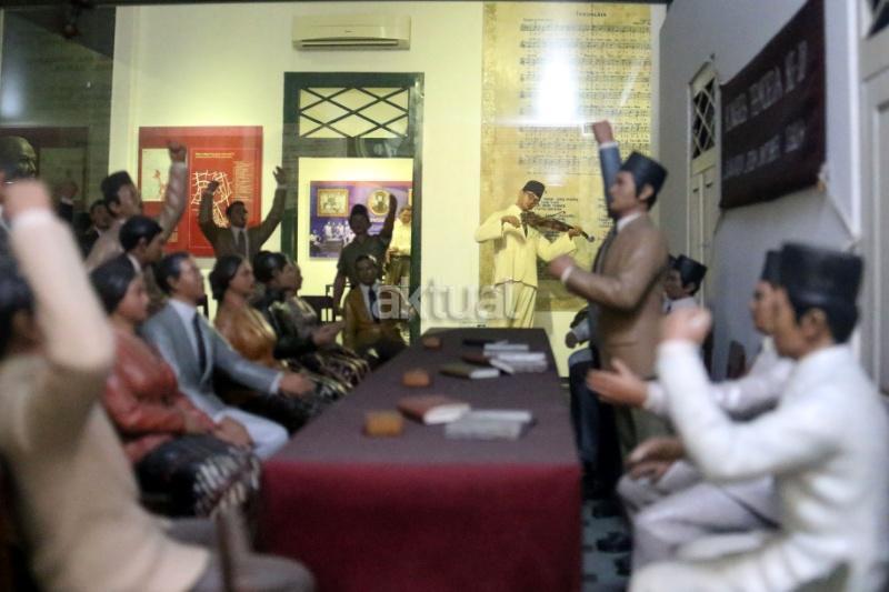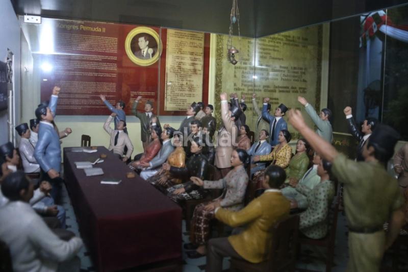 Diorama tentang suasana Kongres Pemuda II yang melahirkan Sumpah Pemuda koleksi Museum Sumpah Pemuda di Jalan Kramat Raya, Jakarta Pusat, Jumat(27/10/2017).Peringatan Sumpah Pemuda ke-89 pada 28 Oktober 2017 menjadi momentum bagi seluruh elemen bangsa untuk mengenang kembali tekad pemuda Indonesia yang mengikrarkan komitmen persatuan dan kesatuan Indonesia. AKTUAL/Munzir