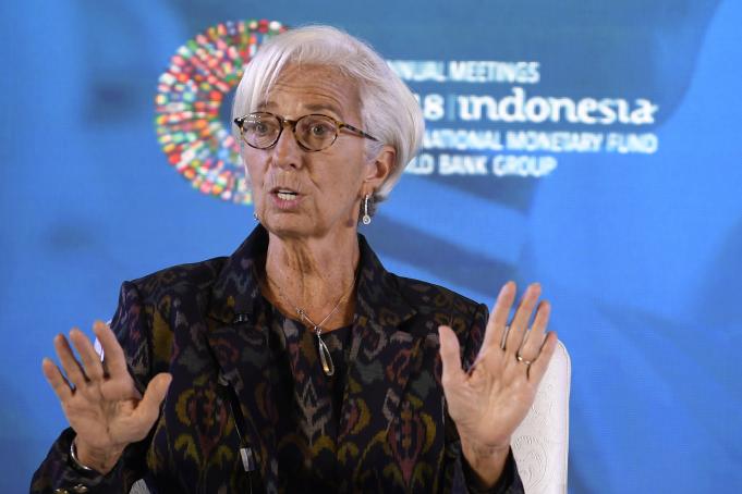 Direktur Pelaksana International Monetary Fund (IMF) Christine Lagarde menyampaikan paparan terkait Pemberdayaan Wanita di Dunia Kerja pada rangkaian Pertemuan Tahunan IMF World Bank Group 2018 di Bali International Convention Center (BICC), Nusa Dua, Bali, Selasa (9/10). Seminar tersebut membahas kebijakan untuk meningkatkan partisipasi wanita dalam dunia kerja dan penguasaan teknologi. ICom/AM IMF-WBG/Puspa Perwitasari/hp/2018