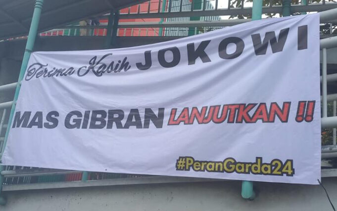“Menghadapi debat ketiga Capres ini pun Peran Garda24 telah mengepung seluruh perlintasan jembatan penyebrangan orang atau JPO di Jakarta melalui spanduk bertuliskan ‘Terima Kasih Jokowi, Mas Gibran Lanjutkan’,” cetus dia.