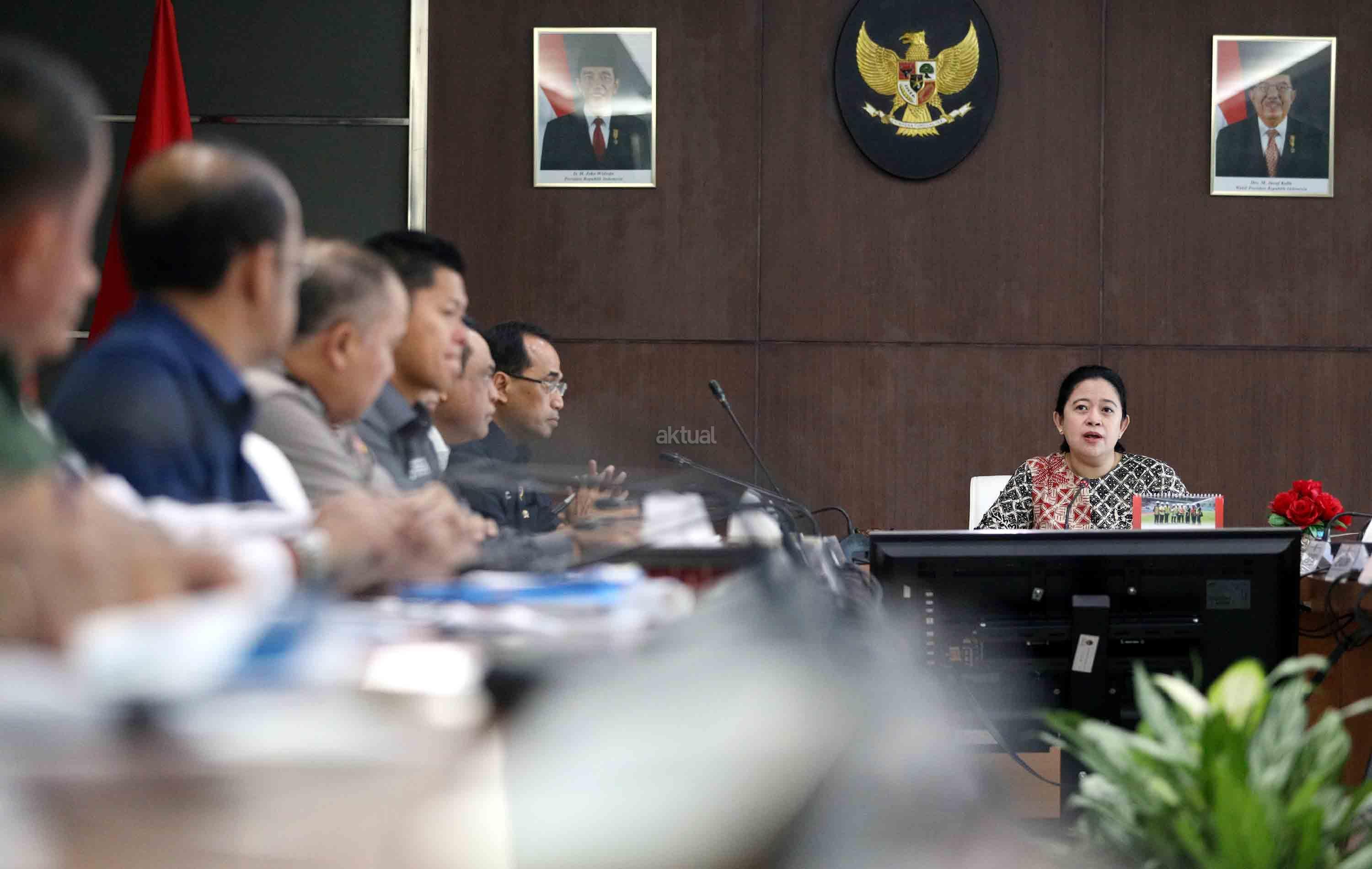 Menko Pembangunan Manusia dan Kebudayaan Puan Maharani memimpin rapat membahas keamanan jelang Asian Games 2018 di kantor Kemenko PMK, Jakarta, Kamis (17/5/18). Rapat tersebut dihadiri oleh Wakapolri Komjen Pol Syafruddin, Menteri Perhubungan Budi Karya, Ketua Pelaksana Asian Para Games (INAPGOC) Raja Sapta Oktohari, Wakil Ketua Indonesia Asian Games Organizing Committee (INASGOC) Sjafrie Sjamsoeddin. AKTUAL/Tino Oktaviano