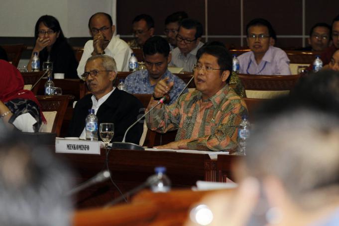 Menkominfo Rudiantara mengikuti rapat kerja dengan Komisi I DPR di Kompleks Parlemen, Senayan, Jakarta, Selasa (29/9/2015). Rapat itu membahas isu-isu teraktual di bidang komunikasi dan informasi di Indonesia.