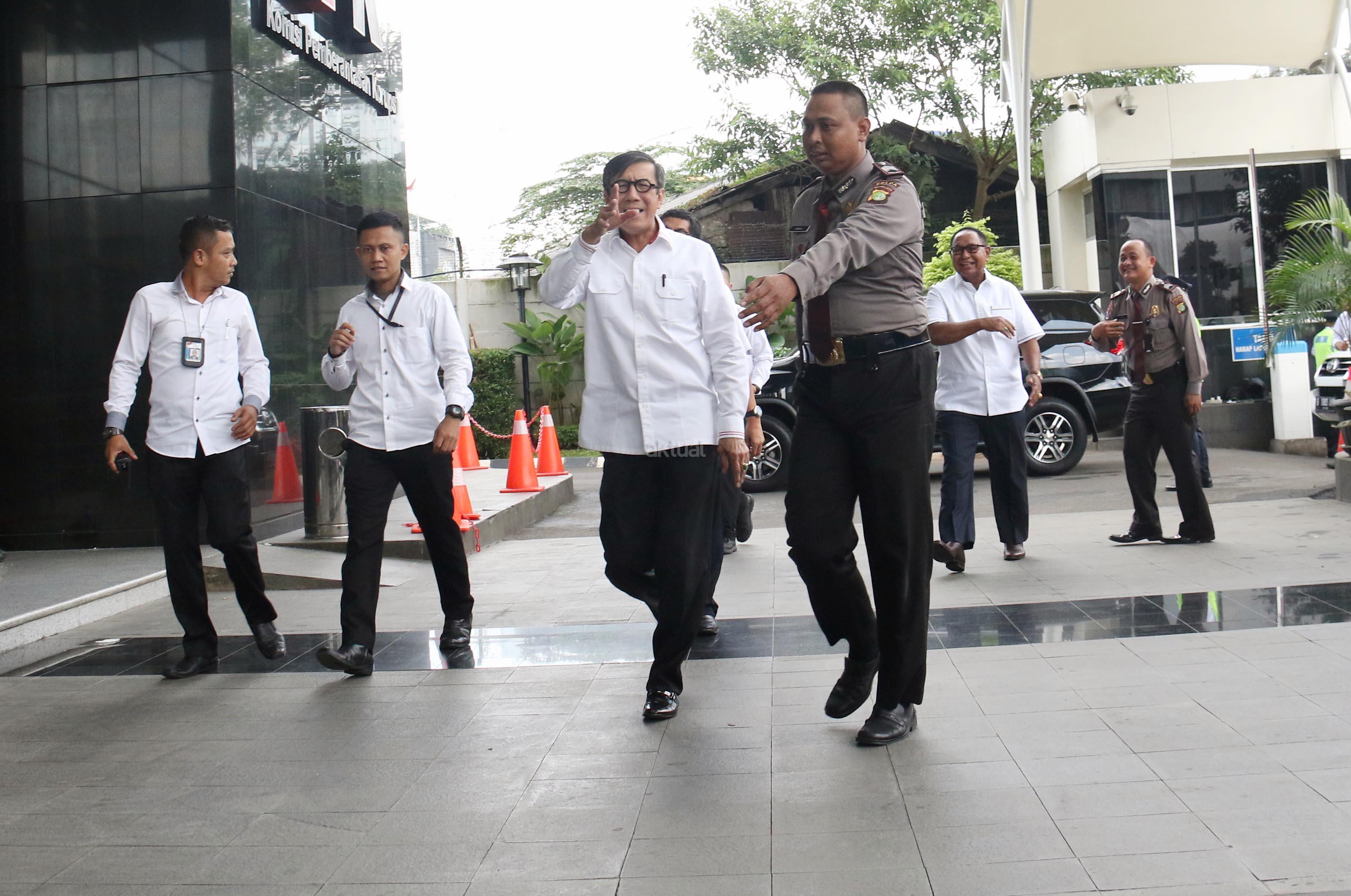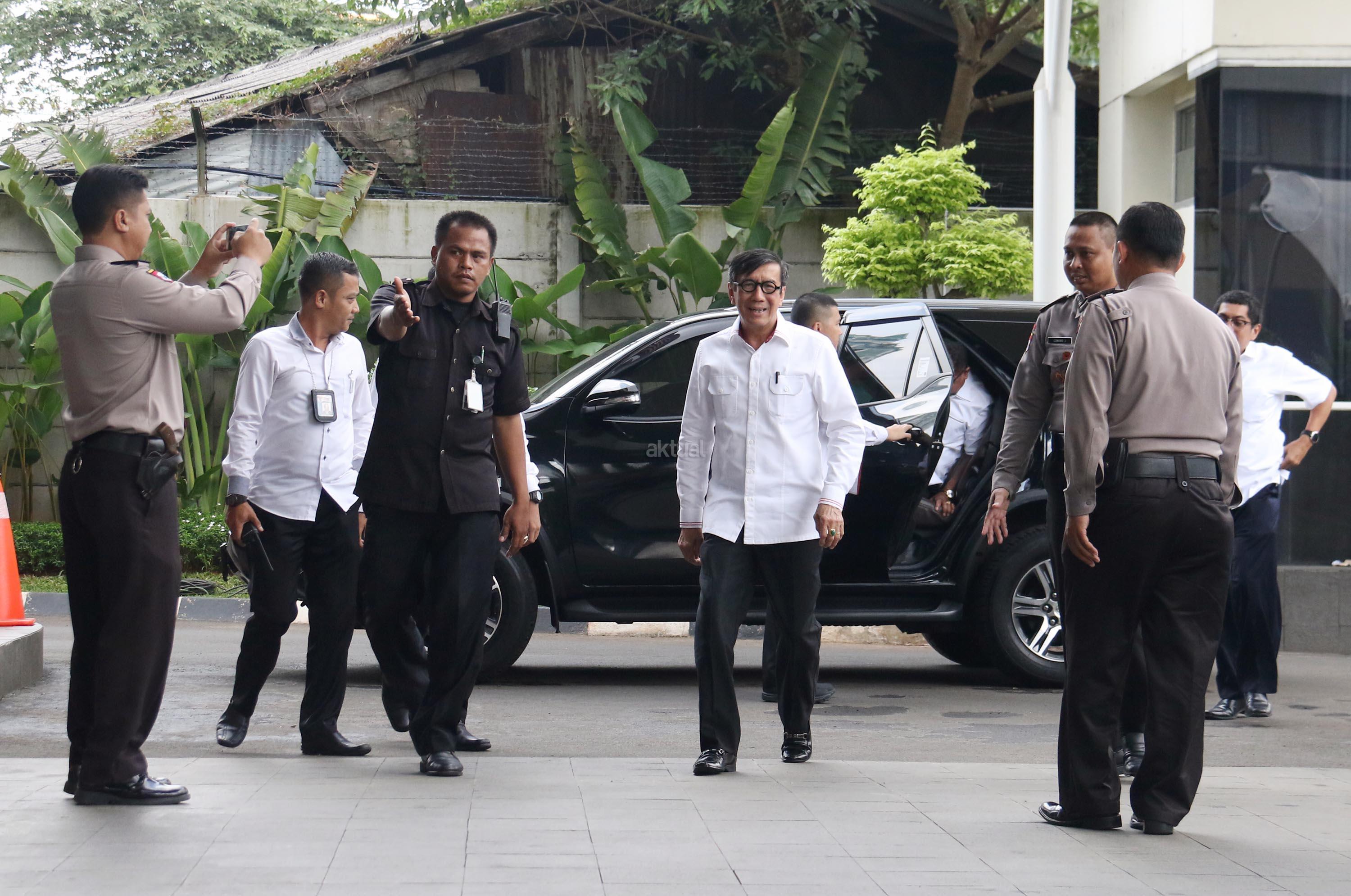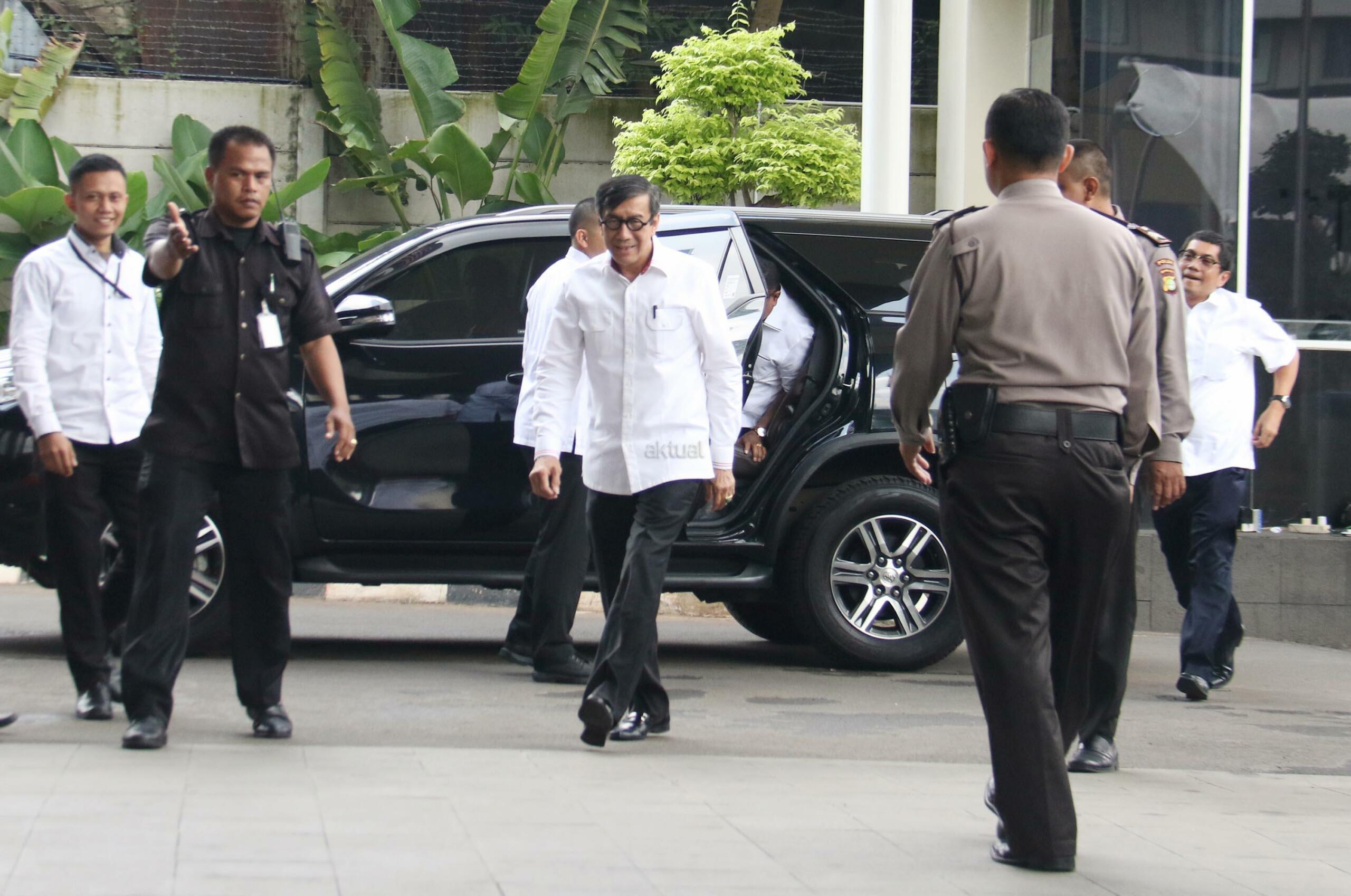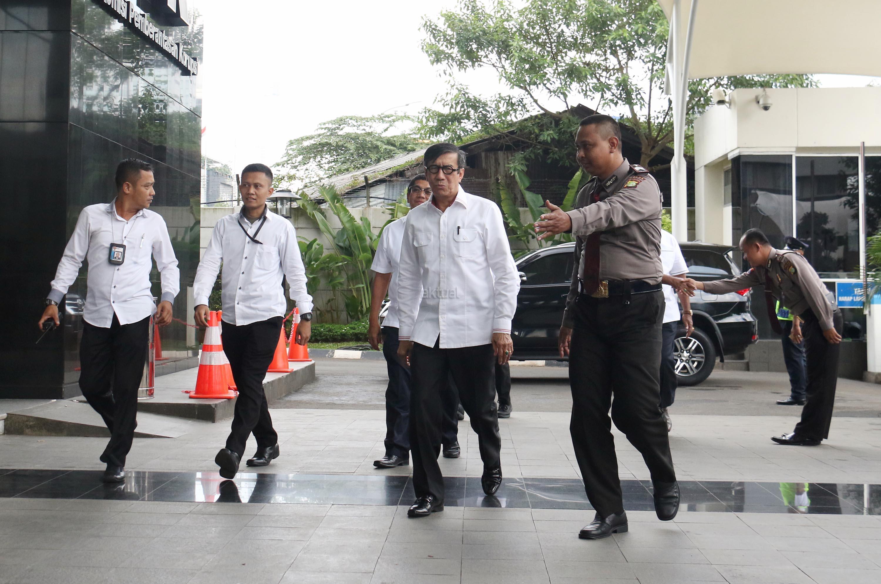 Kedatangan Menteri Hukum dan Hak Asasi Manusia (Menkumham), Yasonna H Laoly terkait kasus dugaan korupsi anggaran proyek e-KTP bernilai triliunan rupiah, dengan tersangka Andi Agustinus alias Andi Narogong. AKTUAL/Munzir