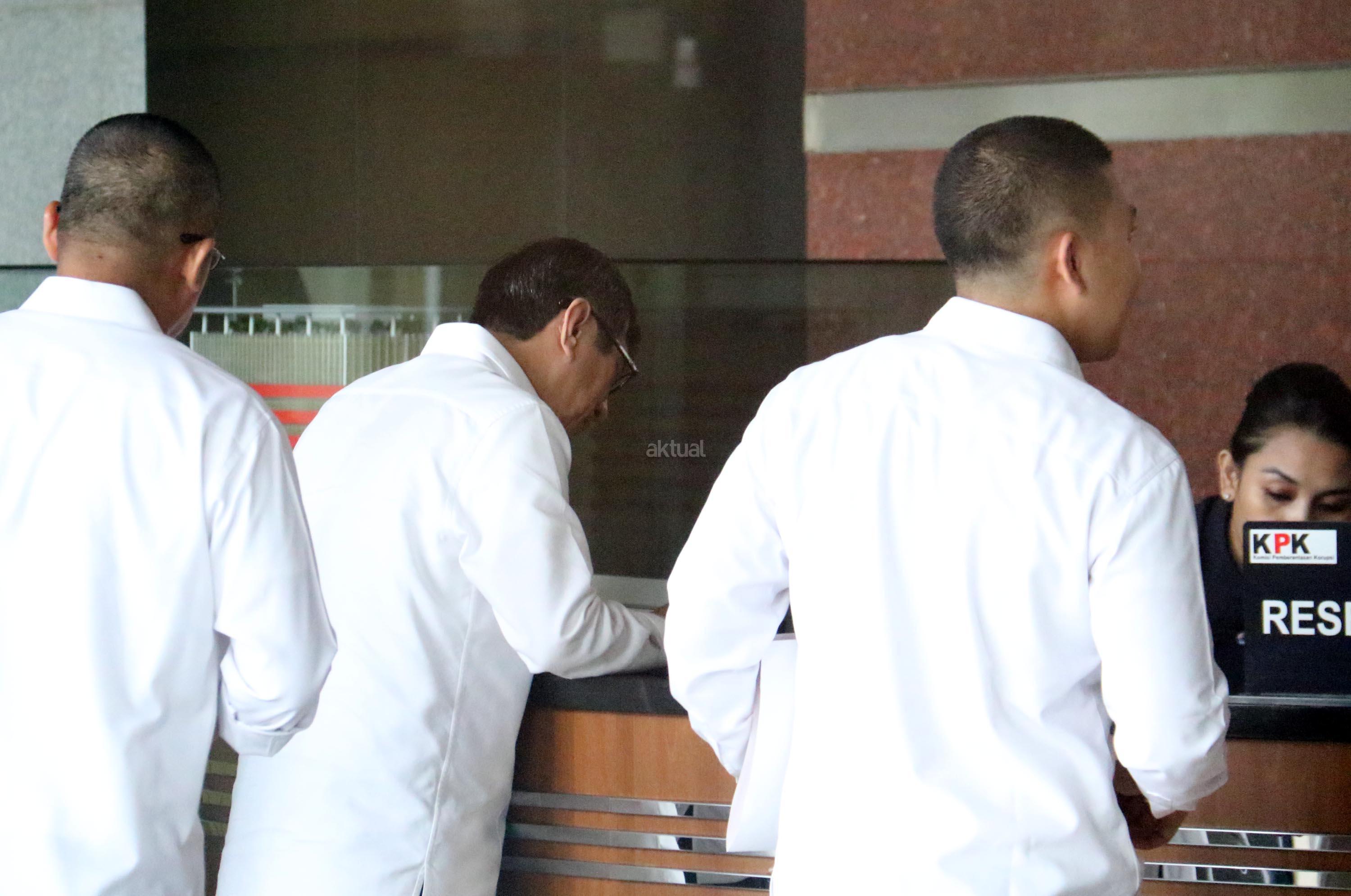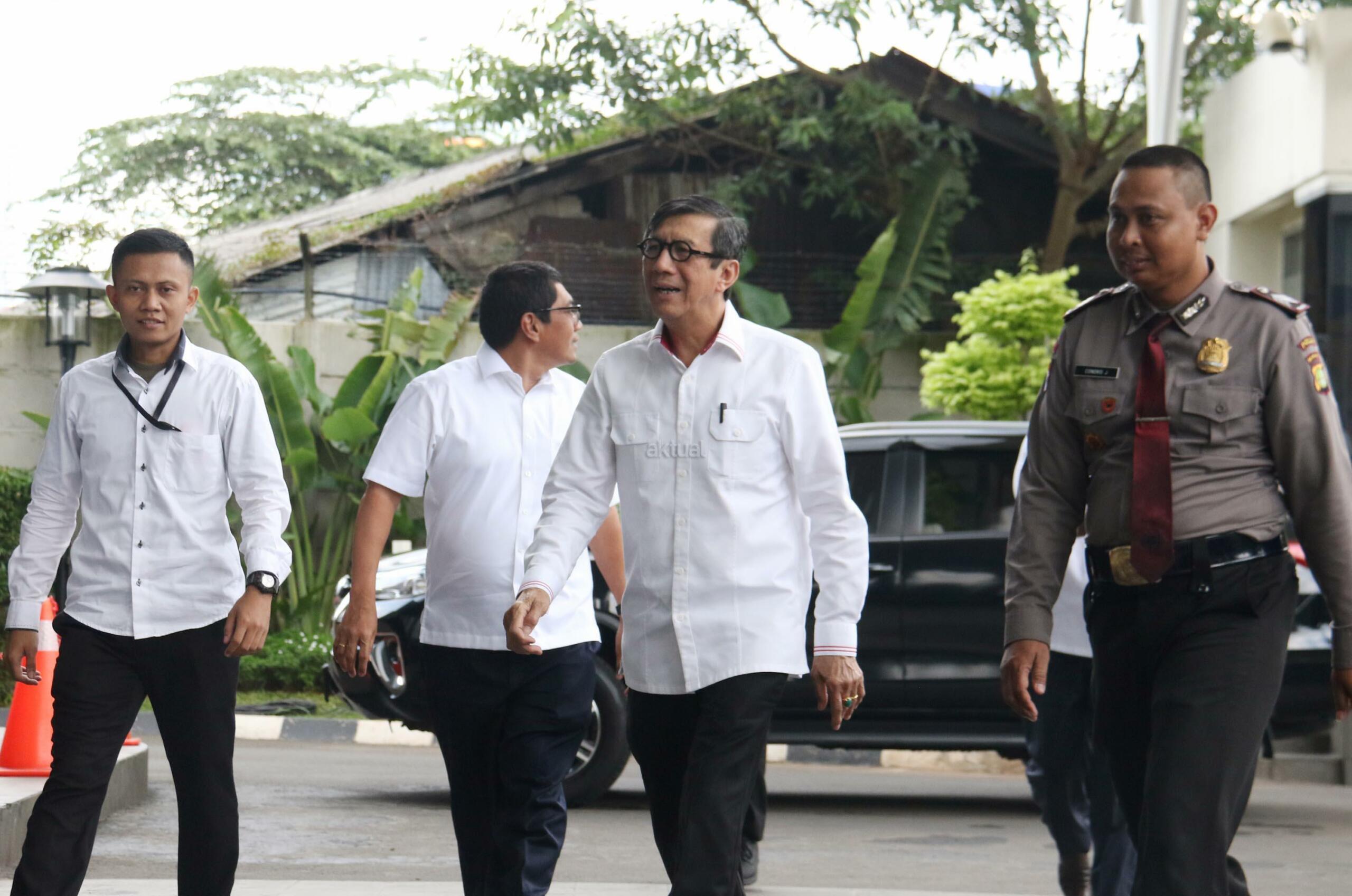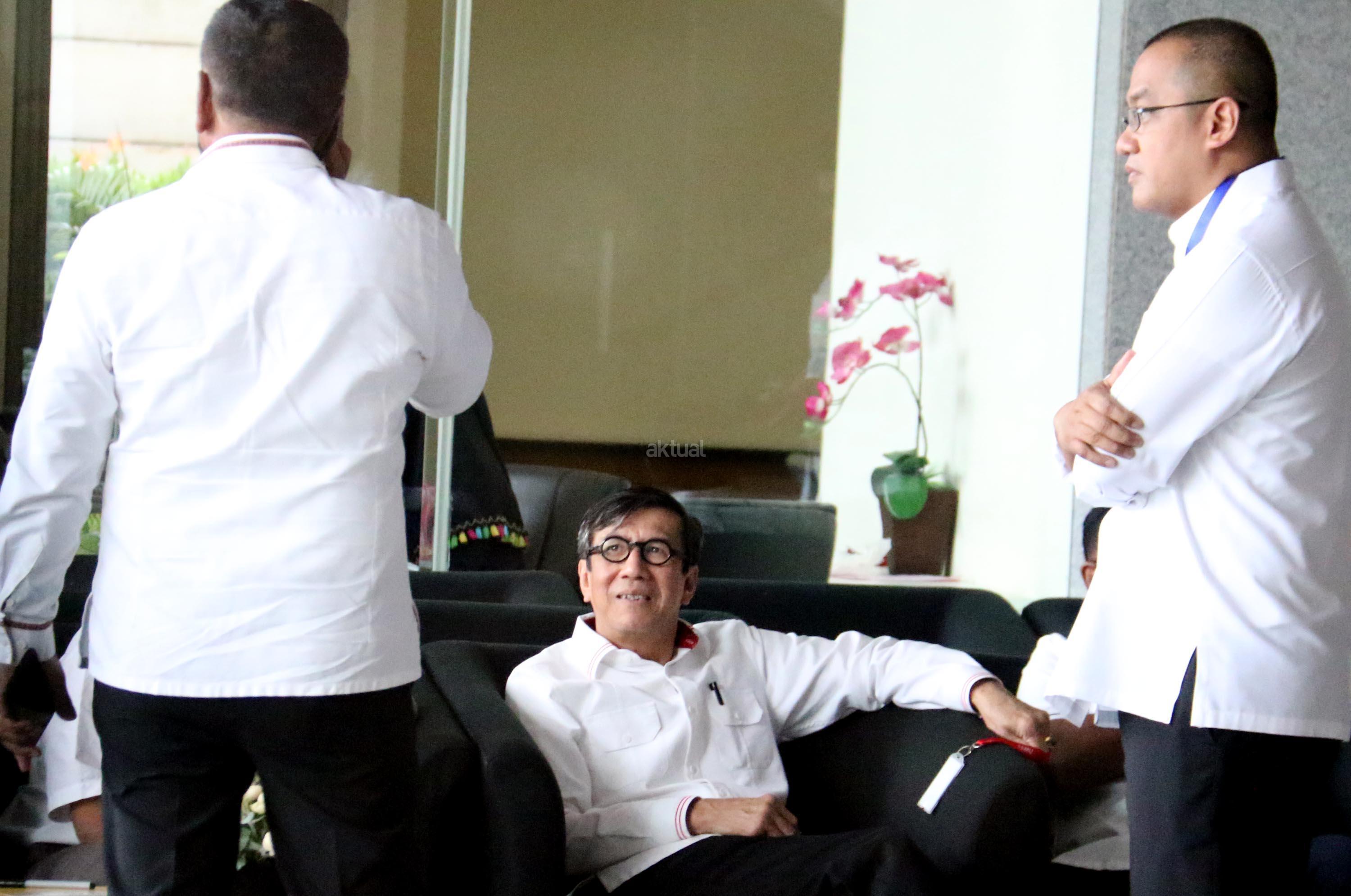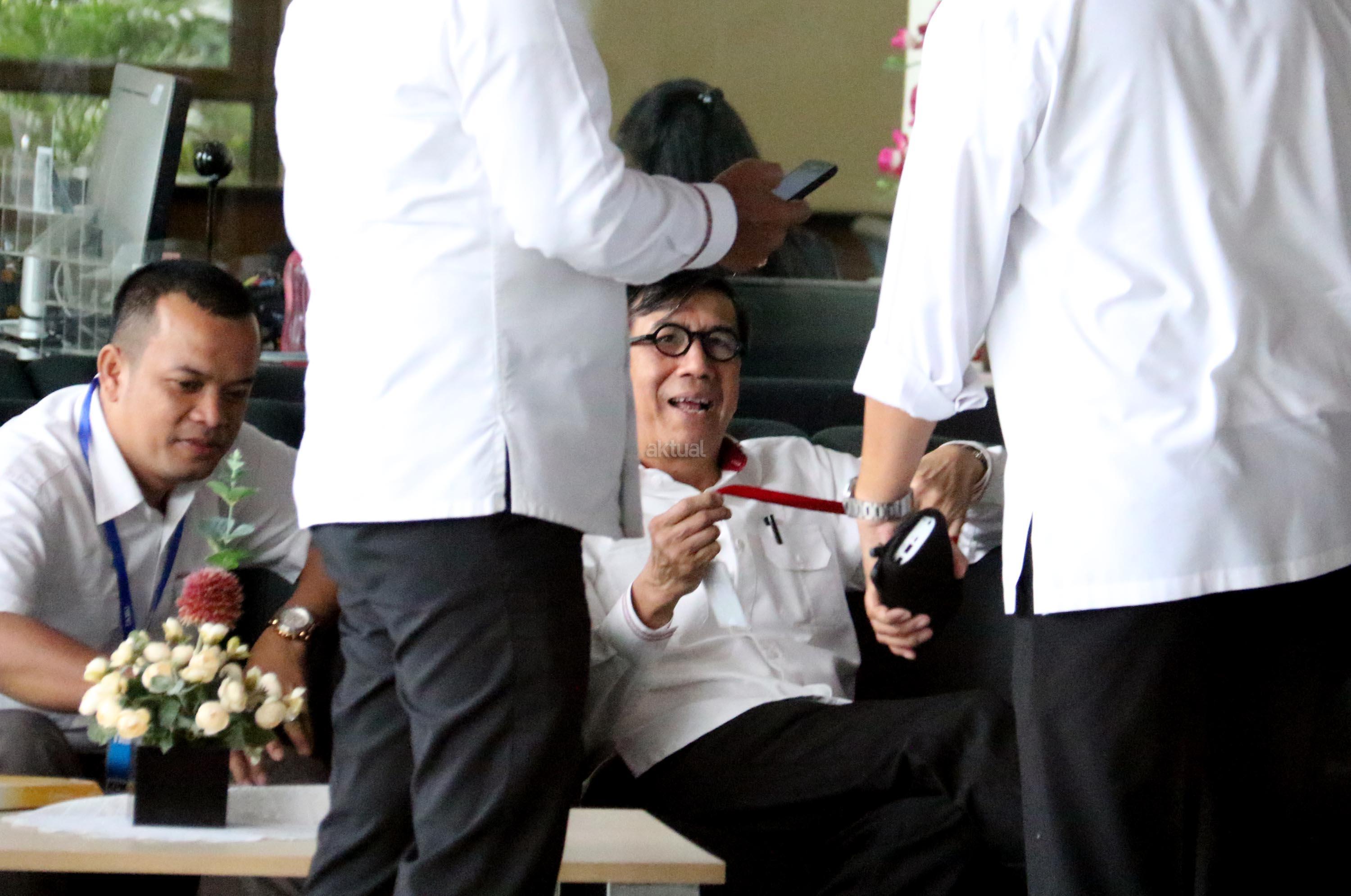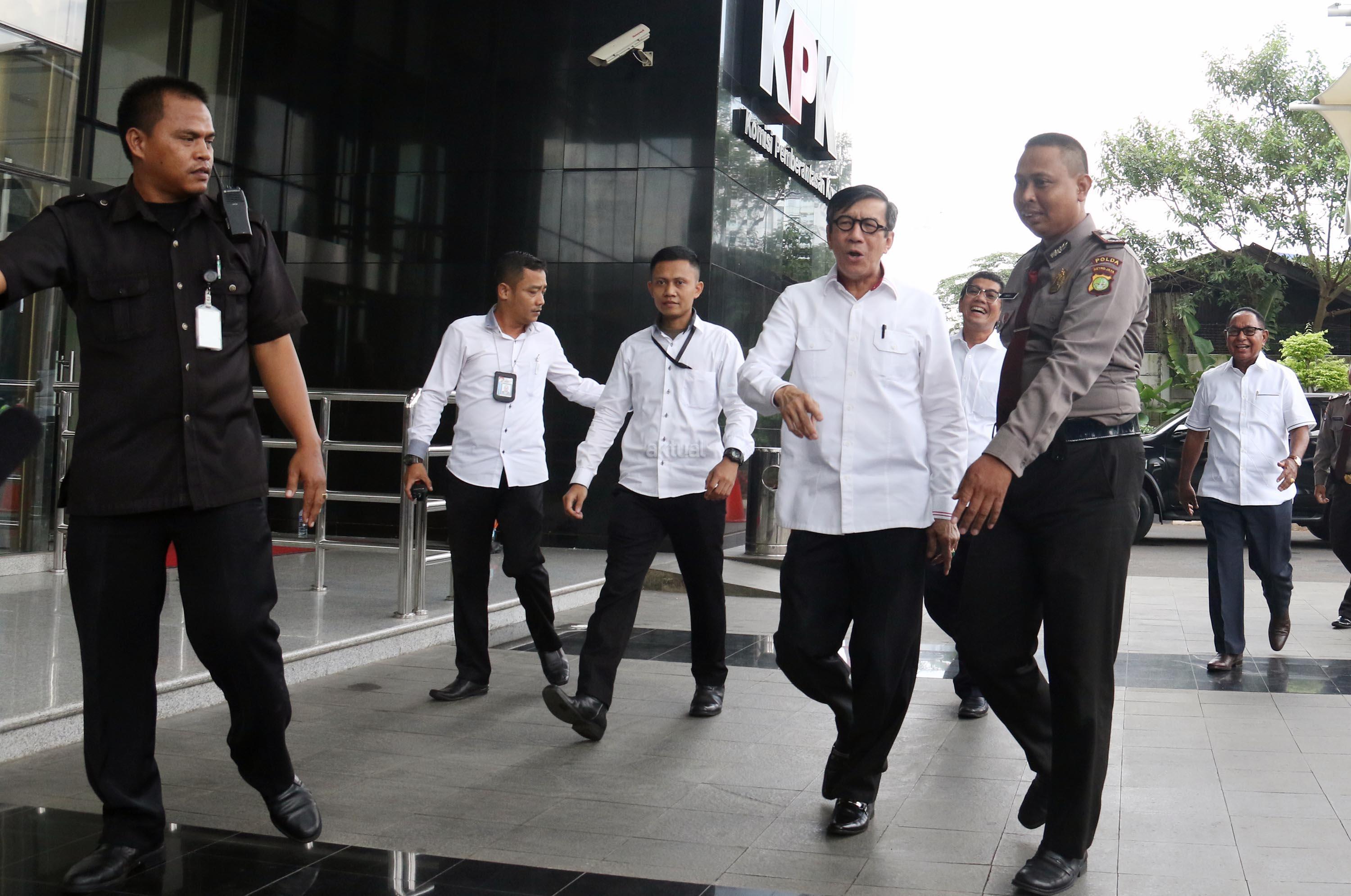 Kedatangan Menteri Hukum dan Hak Asasi Manusia (Menkumham), Yasonna H Laoly terkait kasus dugaan korupsi anggaran proyek e-KTP bernilai triliunan rupiah, dengan tersangka Andi Agustinus alias Andi Narogong. AKTUAL/Munzir