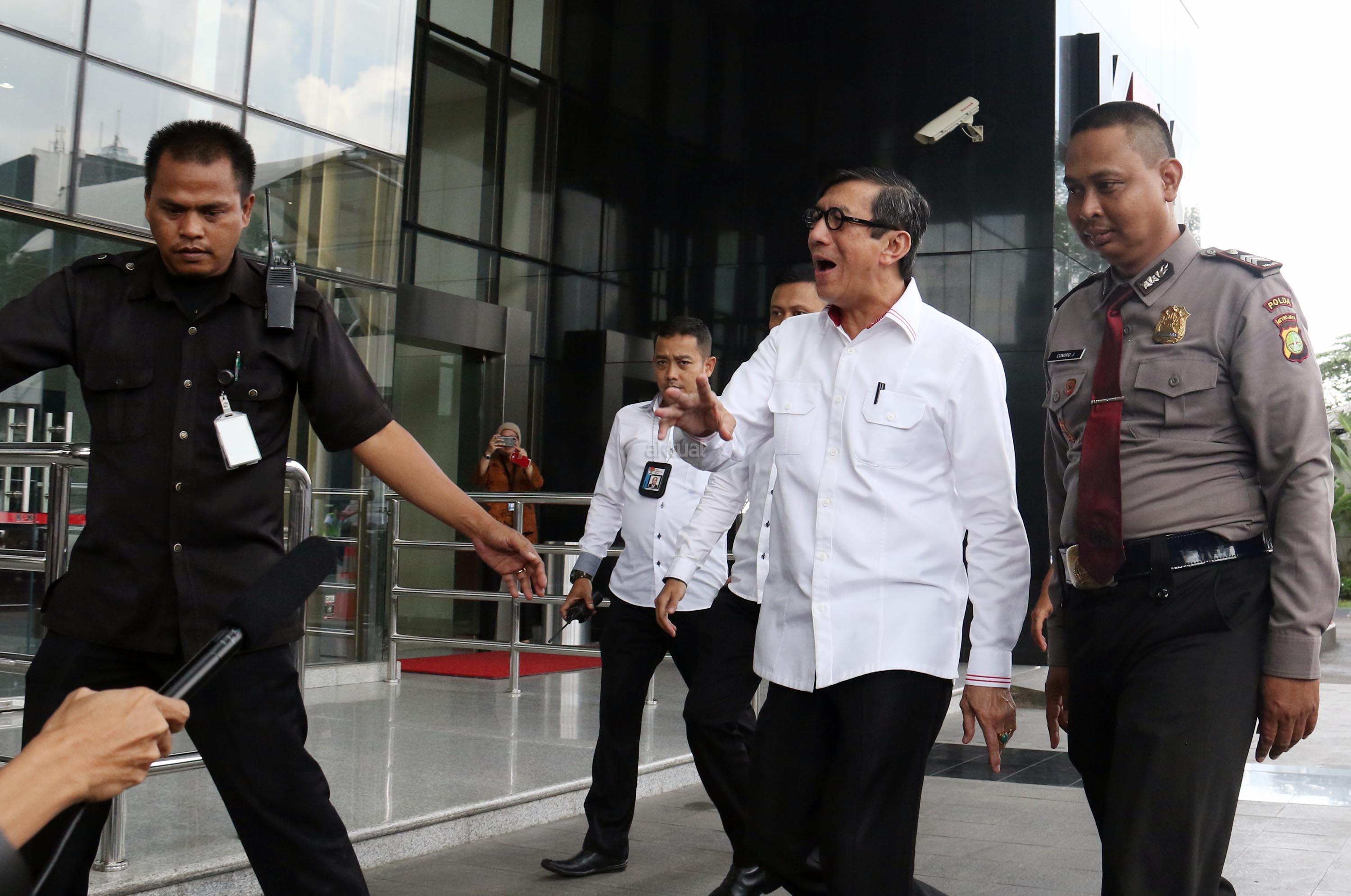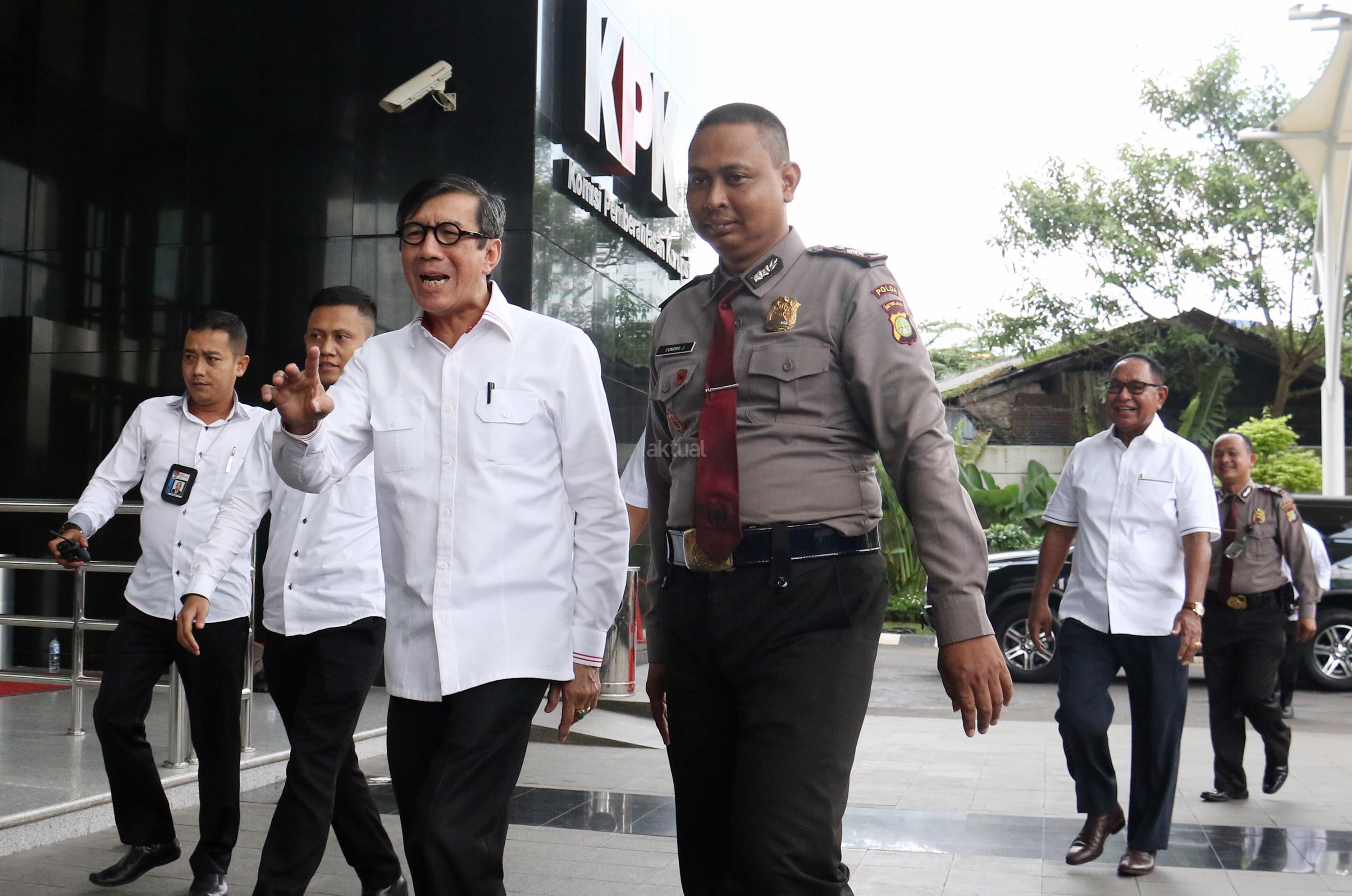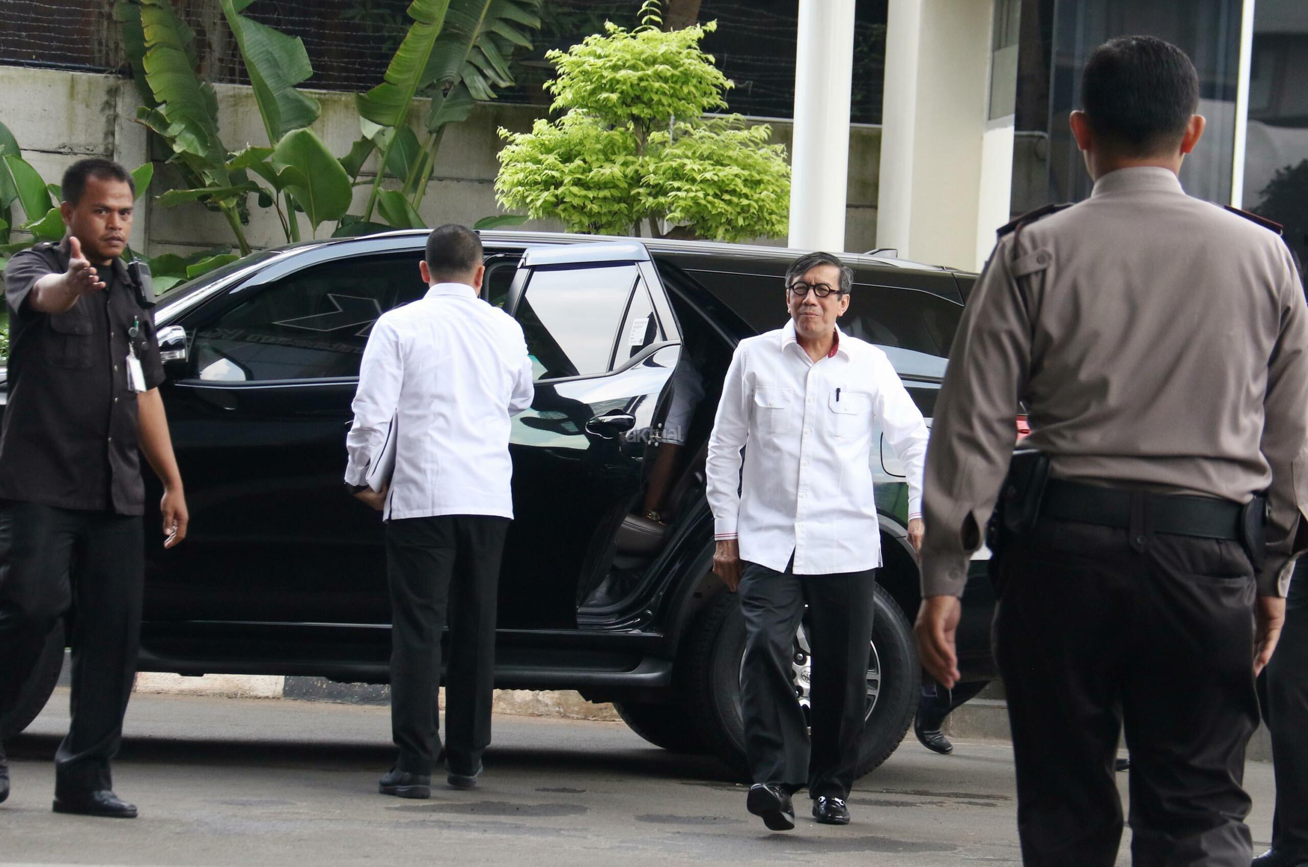 Menteri Hukum dan Hak Asasi Manusia (Menkumham), Yasonna H Laoly tiba di kantor Komisi Pemberantasan Korupsi (KPK) , Jakarta, Senin (3/7/2017). Kedatangan Menteri Hukum dan Hak Asasi Manusia (Menkumham), Yasonna H Laoly terkait kasus dugaan korupsi anggaran proyek e-KTP bernilai triliunan rupiah, dengan tersangka Andi Agustinus alias Andi Narogong. AKTUAL/Munzir