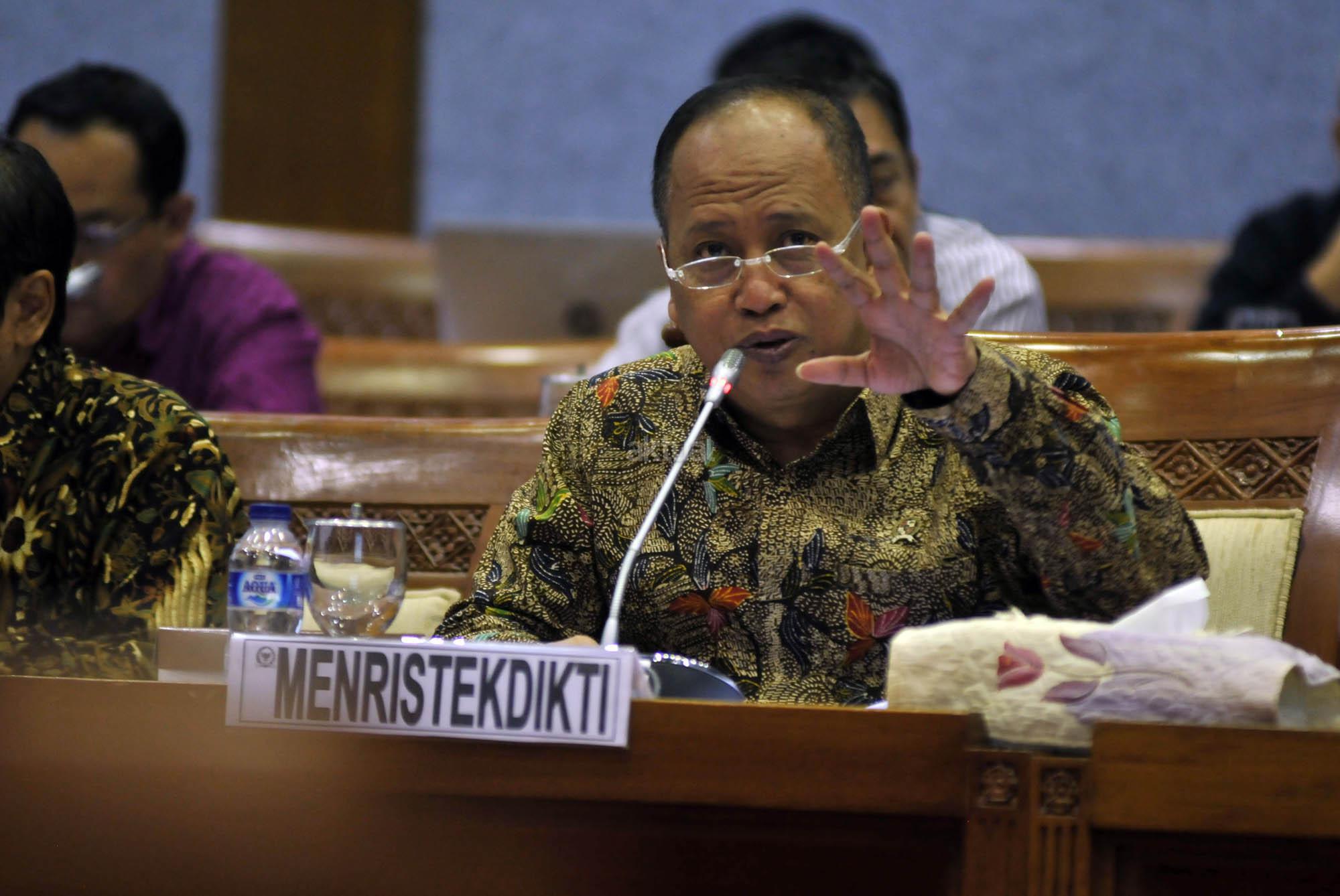 Menristek-Dikti Muhammad Nasir memberikan penjelasan saat raker dengan Komisi X DPR, di Komplek Parlemen, Jakarta, Rabu (10/2/2016). Rapat membahas penetapan kepangkatan dosen serta isu-isu terkini di bidang teknologi dan pendidikan.