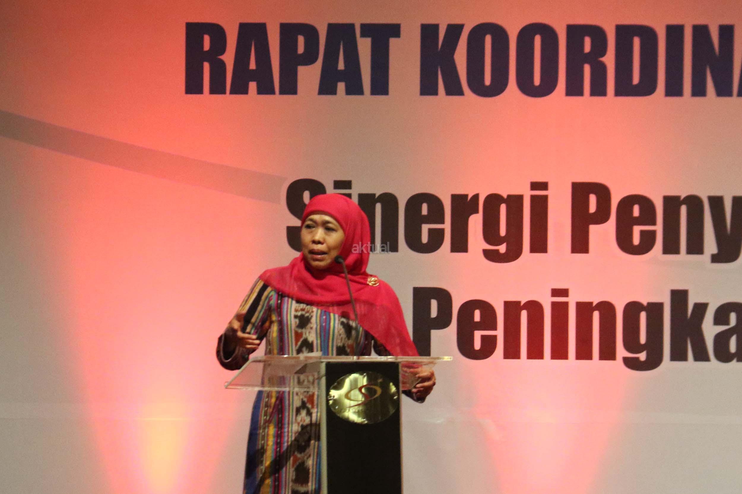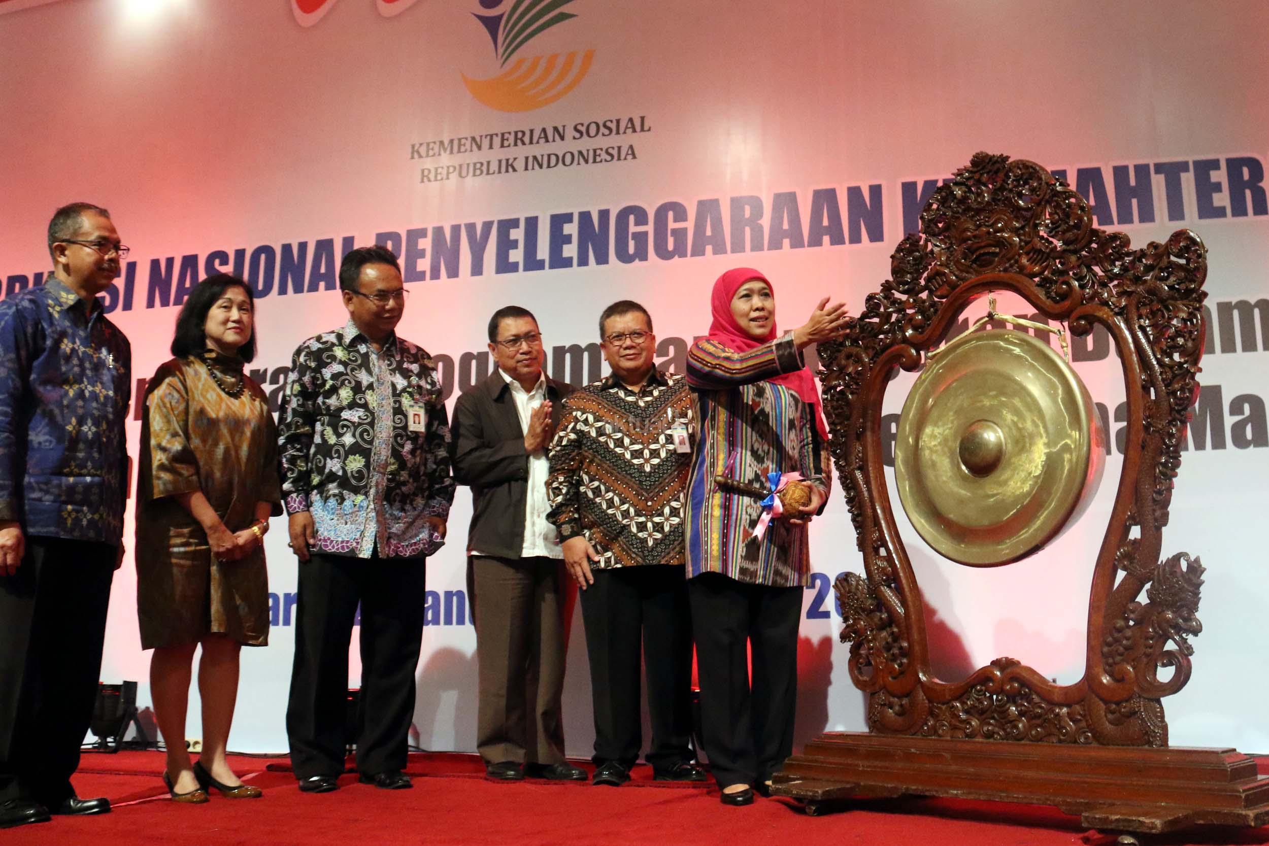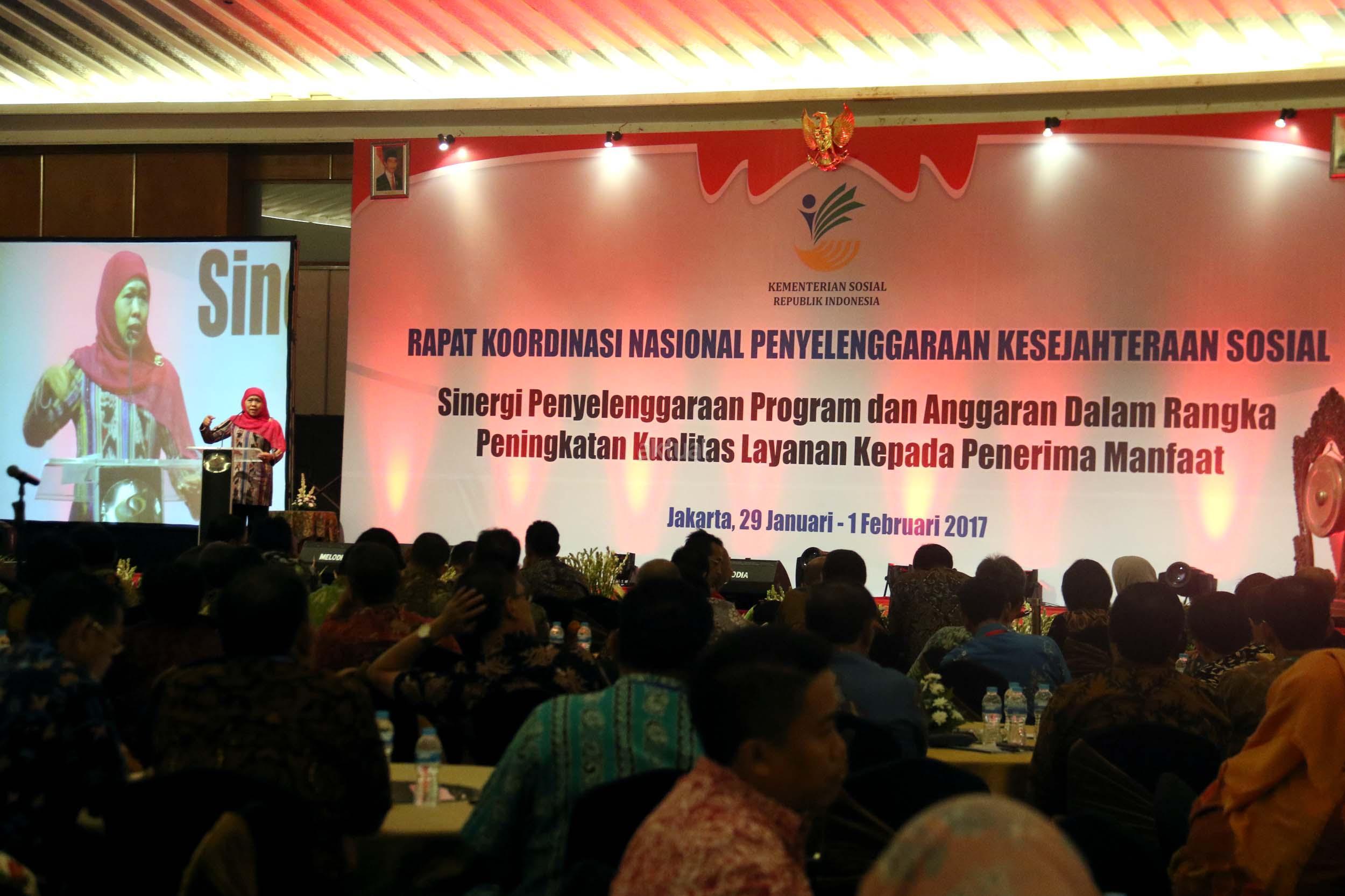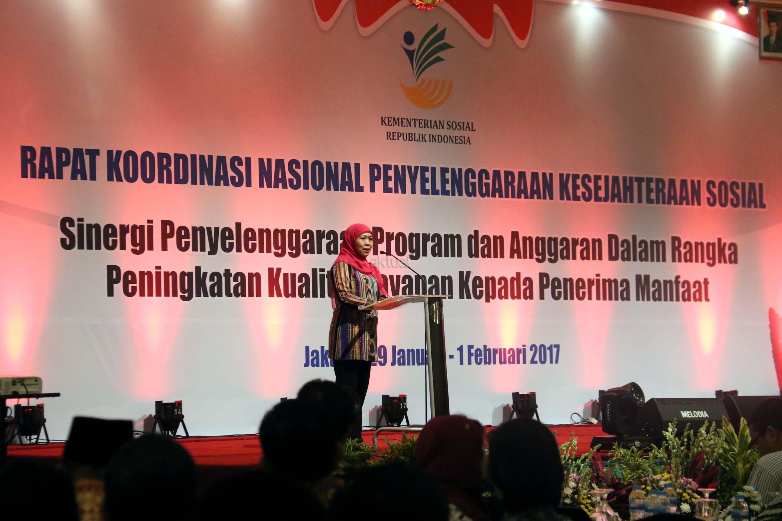 Dalam arahannya Menteri Sosial Khofifah Indar Parawansa meminta jajaran pemerintah daerah dan dinas sosial di seluruh Indonesia untuk meningkatkan kualitas pelayanan kepada penerima manfaat berbagai program pengentasan kemiskinan. AKTUA/Munzir