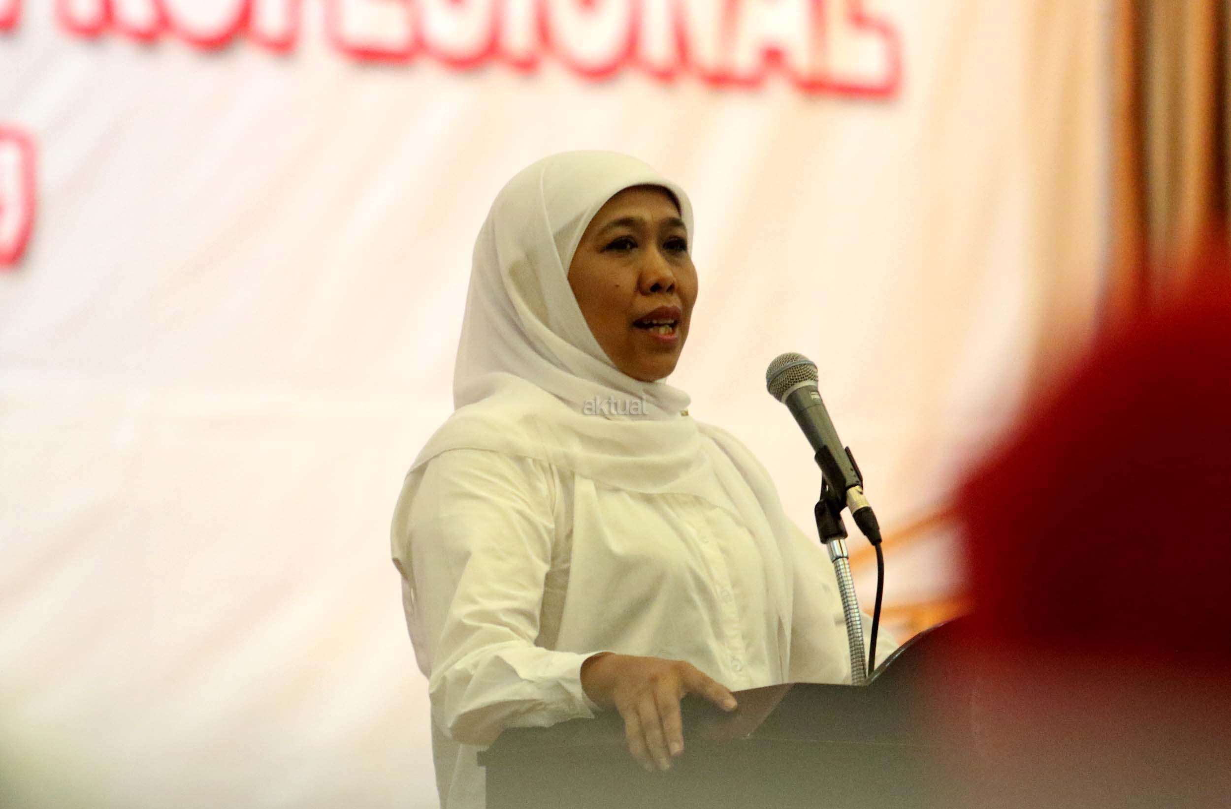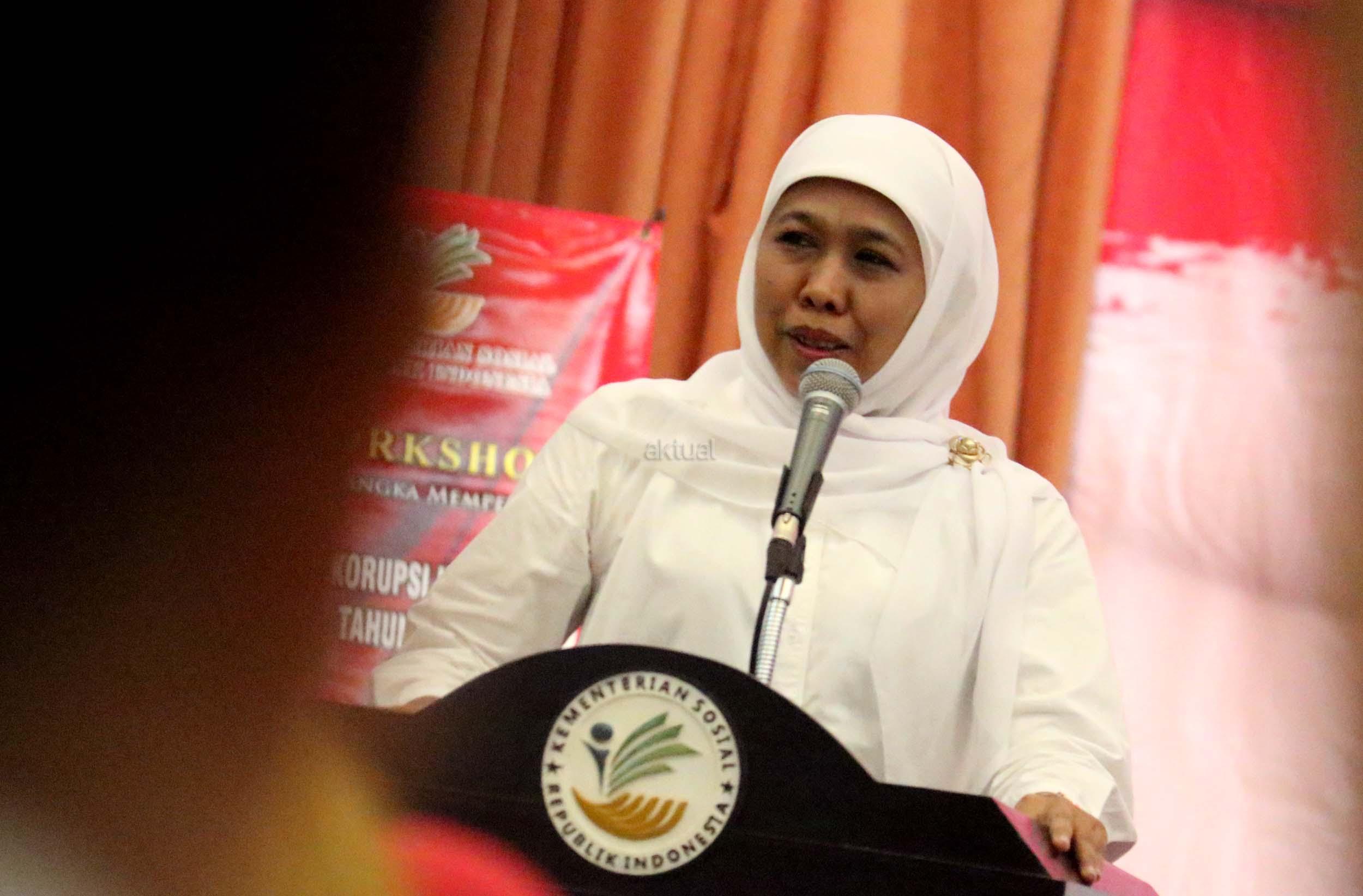 Menteri Sosial Khofifah Indar Parawansa saat memberikan pidatonya dan sekaligus membuka acara Workshop peringatan hari Anti Korupsi di kantor Kemensos, Jakarta, Kamis (22/12/2016).Workshop tersebut mengangkat tema bersih hati, tegak integritas, kerja profesional, untuk Indonesia tangguh. AKTUAL/Munzir